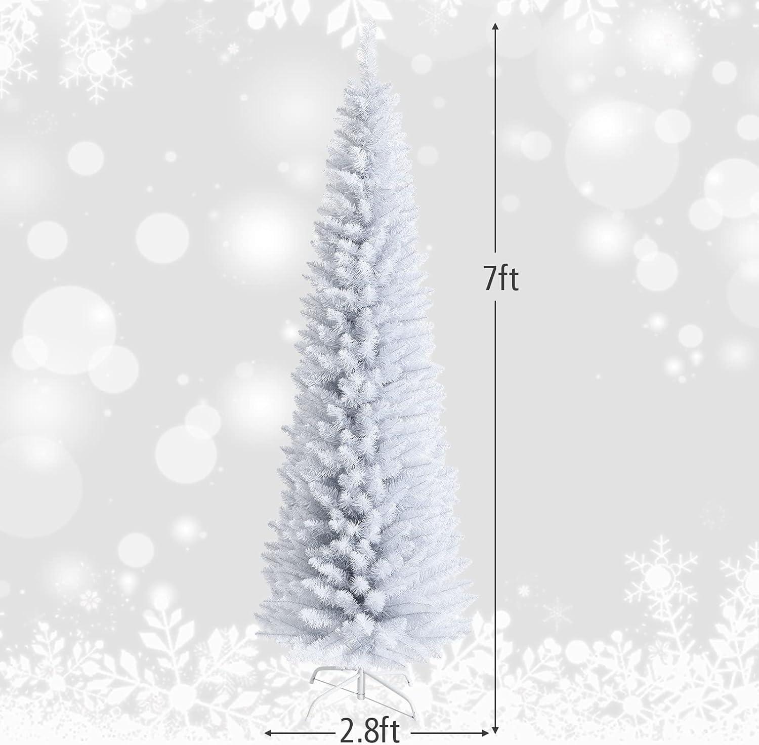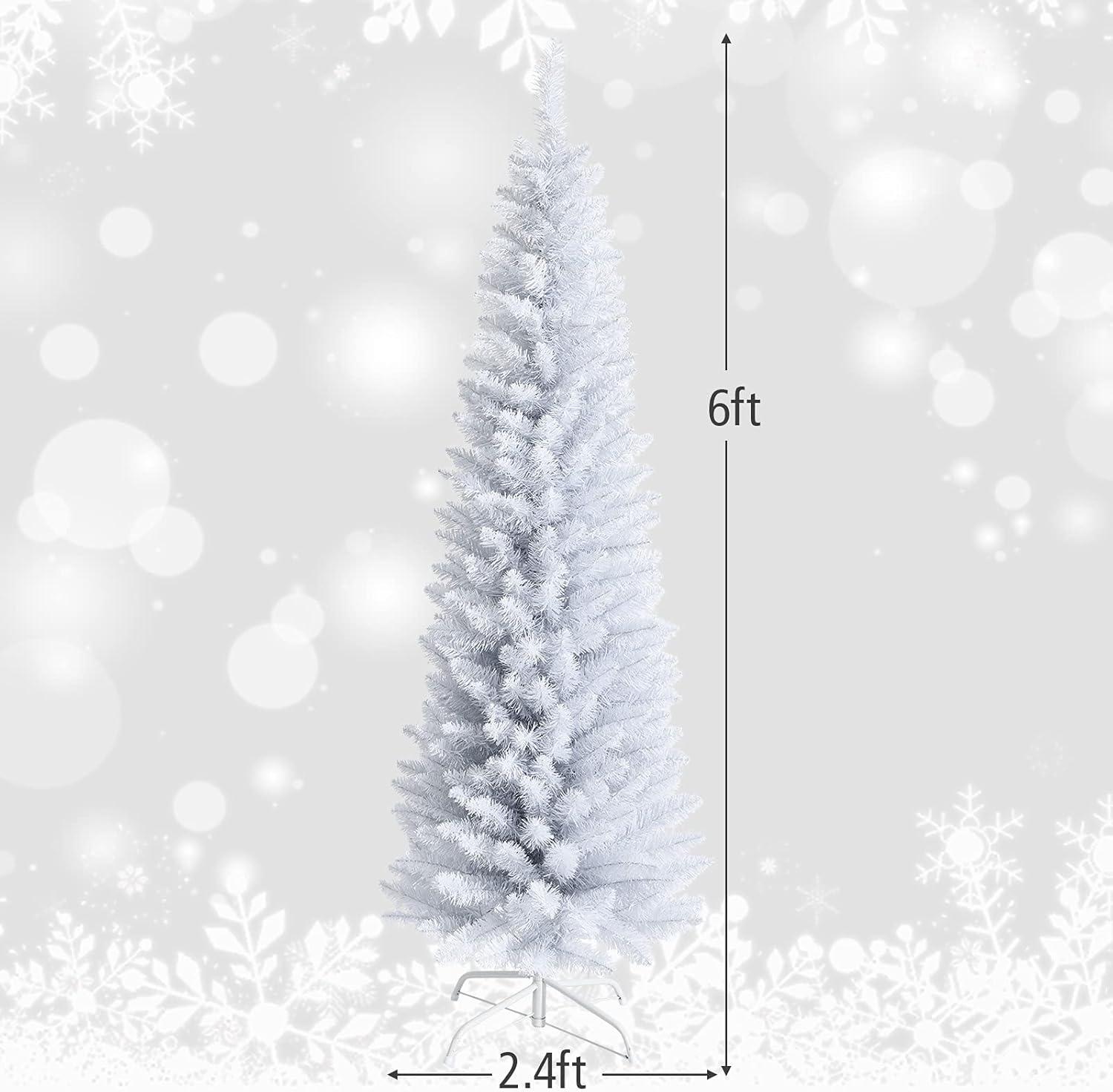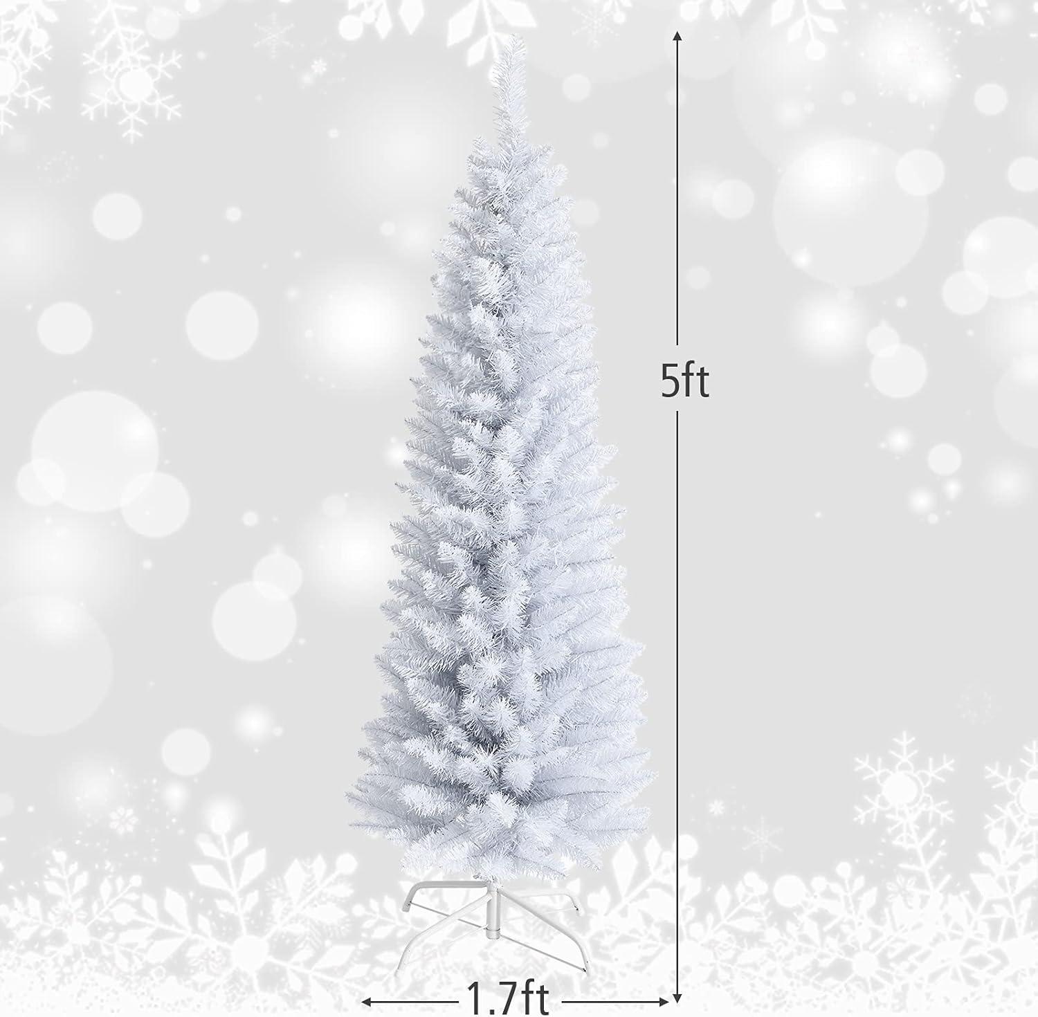 Giantex, Green Artificial Pencil Christmas, Premium Hinged Pine Tree with Solid Metal Legs, Perfect for Home, Shops and Holiday Decoration, (5FT) (Artificial Pencil Christmas Tree)(White)