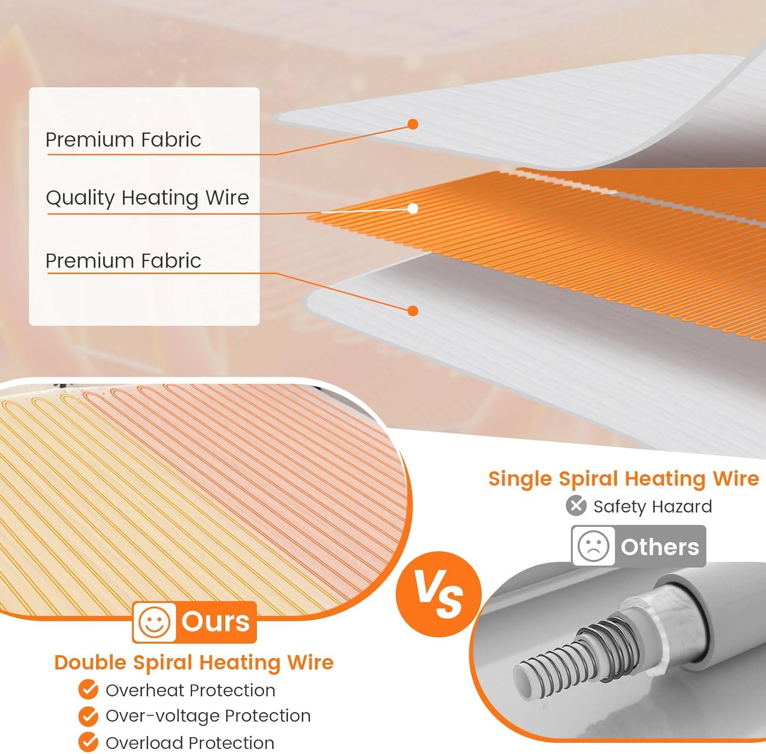 Fasting Heating & Safety Ensured: Featuring evenly distributed heating wires, this heating mattress pad will quickly heat up to drive away your coldness and allow you to sleep warmer in winter. And the overheat protection design and ETL certification for your safety use.