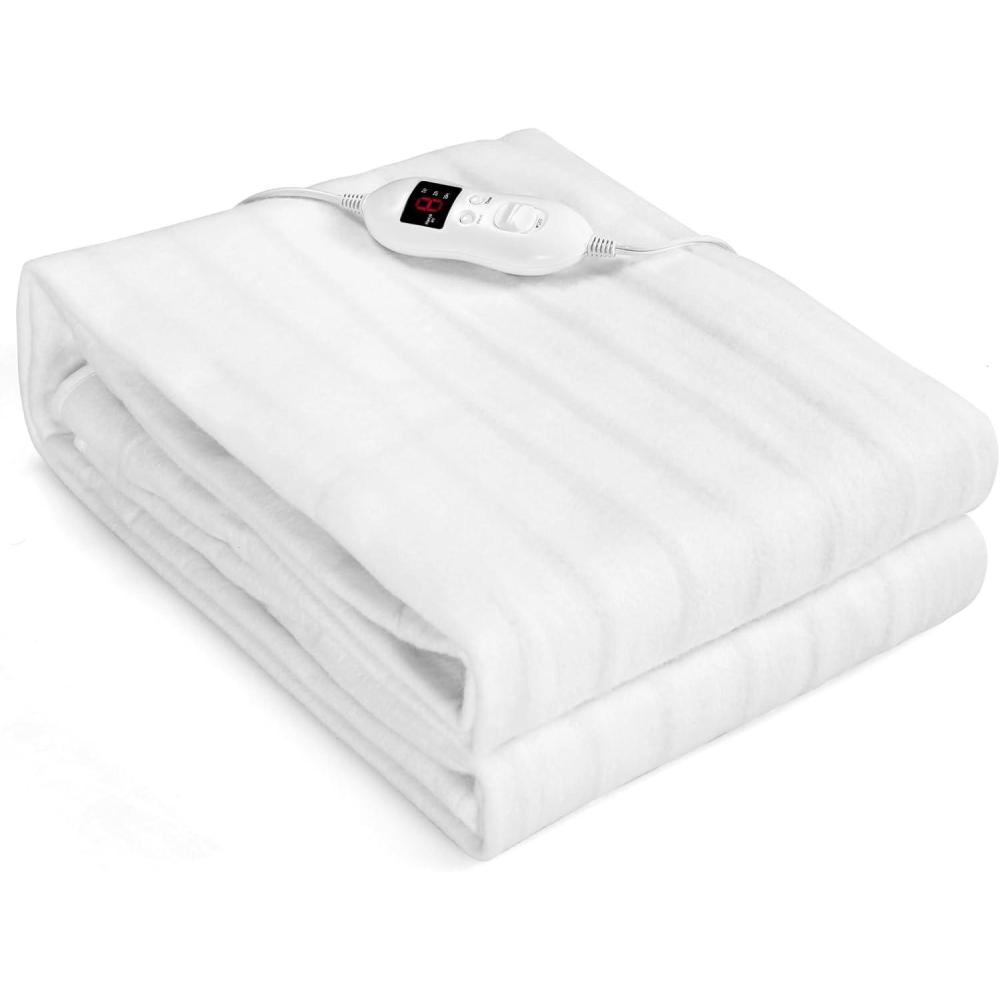Smart Dual Controllers: The bed warmer under blanket is equipped with 2 controllers, which can separately control the heat level of 2 different heating zones. Couples can choose their own side of the bed temperature. The LCD display clearly shows the working status. Plus, the conveniently placed 7 ft controller cord can easily be reached and tucked away as well.