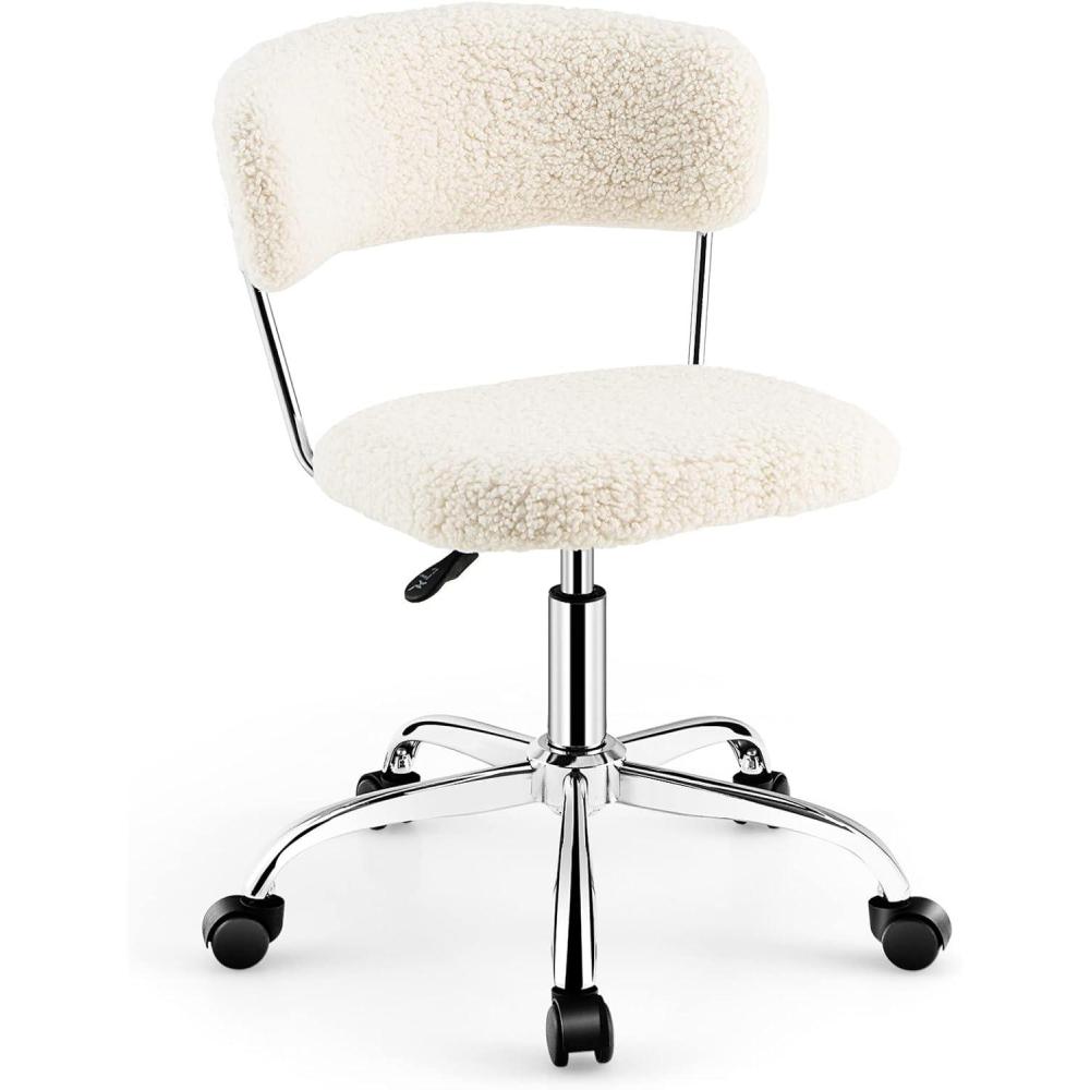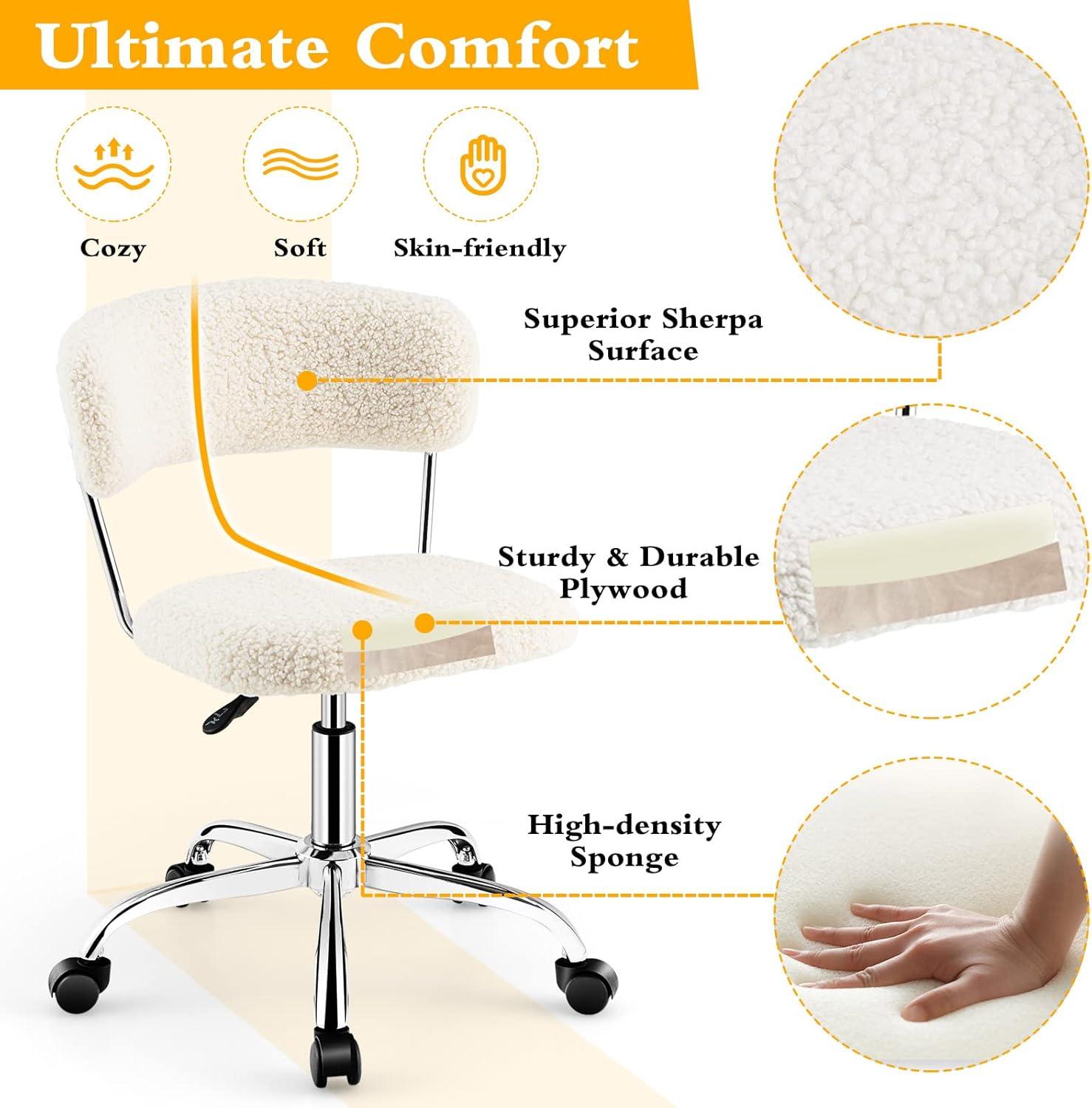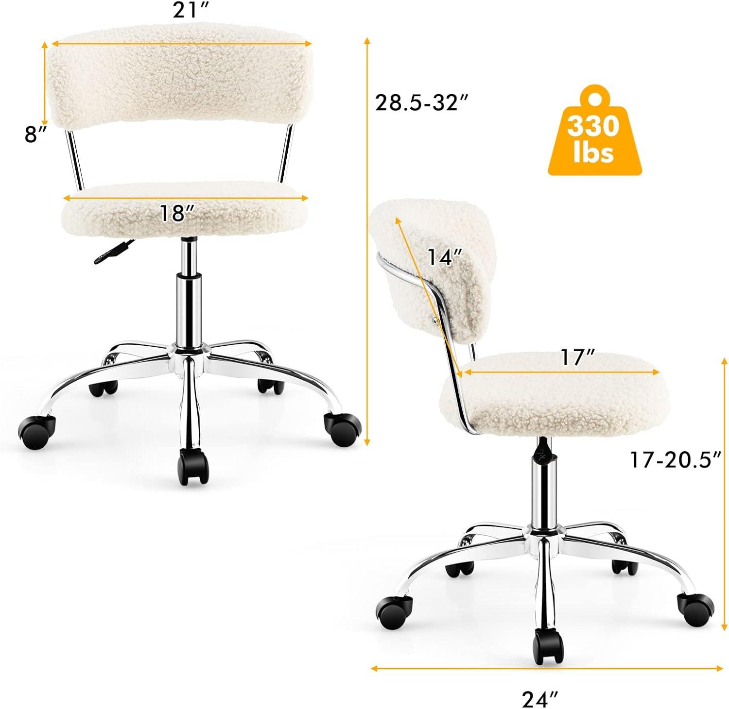 imageGiantex Home Office Chair Faux Fur Low Back Swivel Leisure Chair wHeight Adjustable Padded Seat Rolling Armless Vanity Chair wGalvanized Steel Frame for Bedroom Study Guest Room WhiteWhite