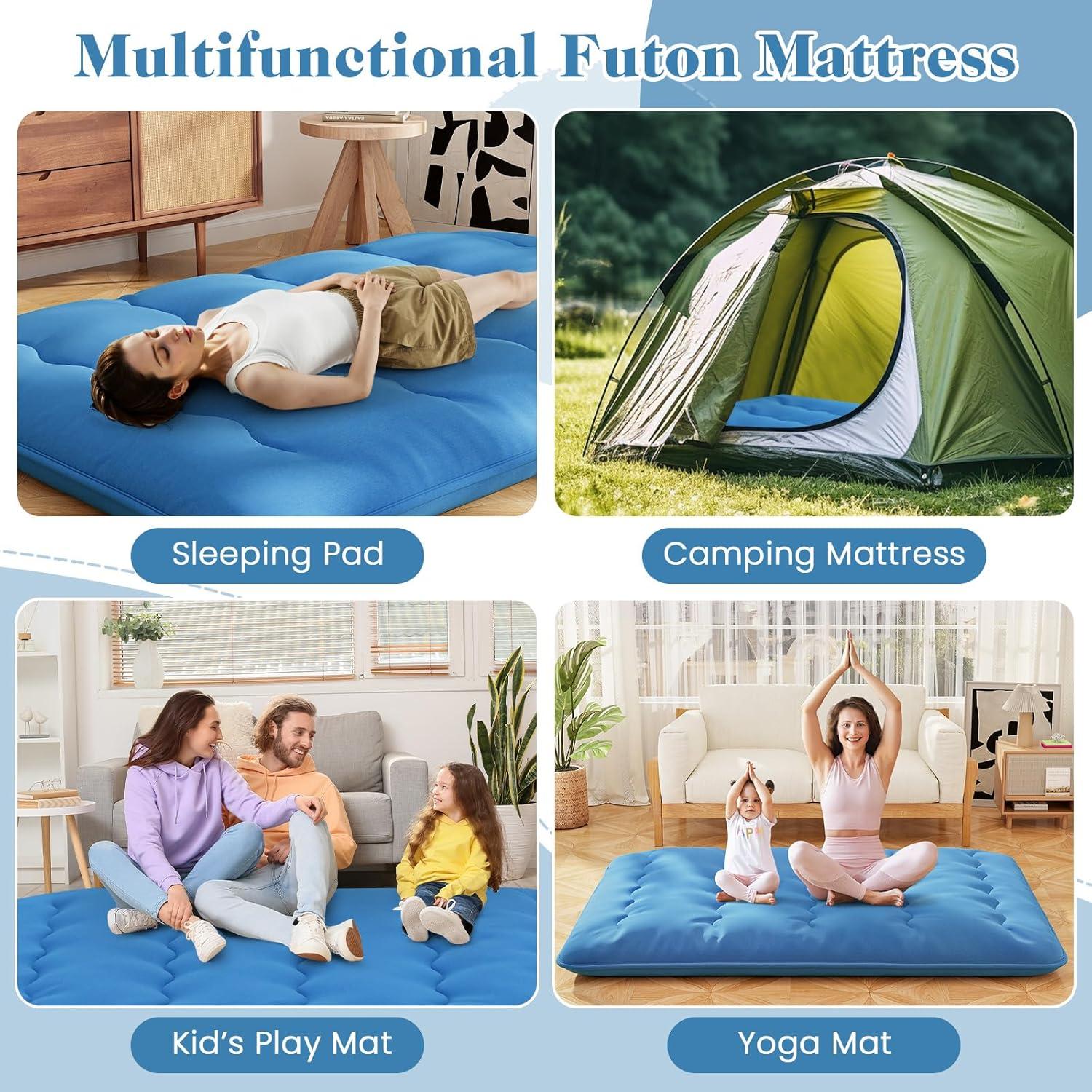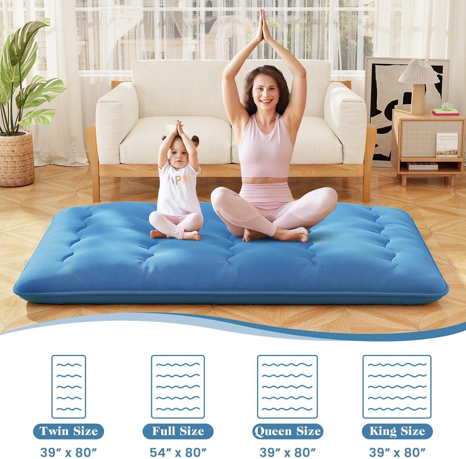 [Multifunctional Futon Mattress]:This floor mattress offers great adaptability as a portable sleeping bed or play mat for sleepovers, exercises, and children. Additionally, it doubles as a floor futon mattress in the bedroom, a tatami mat in the living room, or a convenient camping mattress.
