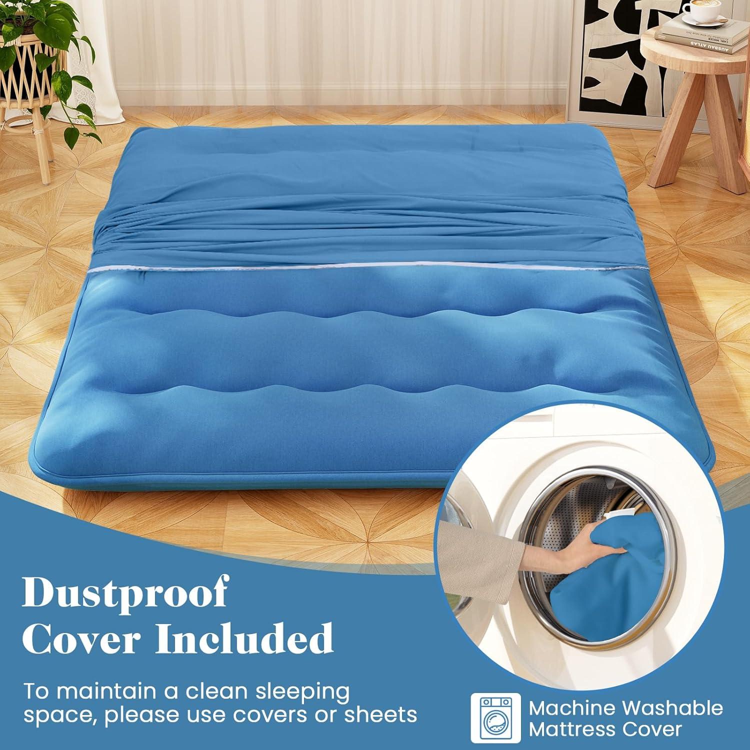 Giantex Japanese Floor Mattress, 4 Inch Futon Mattress w/Washable Cover & Storage Bag, Foldable Roll up Mattress Tatami Mat, Portable Sleeping Pad for Camping, Dormitory, Kids Floor Lounger Bed, Full(Navy)