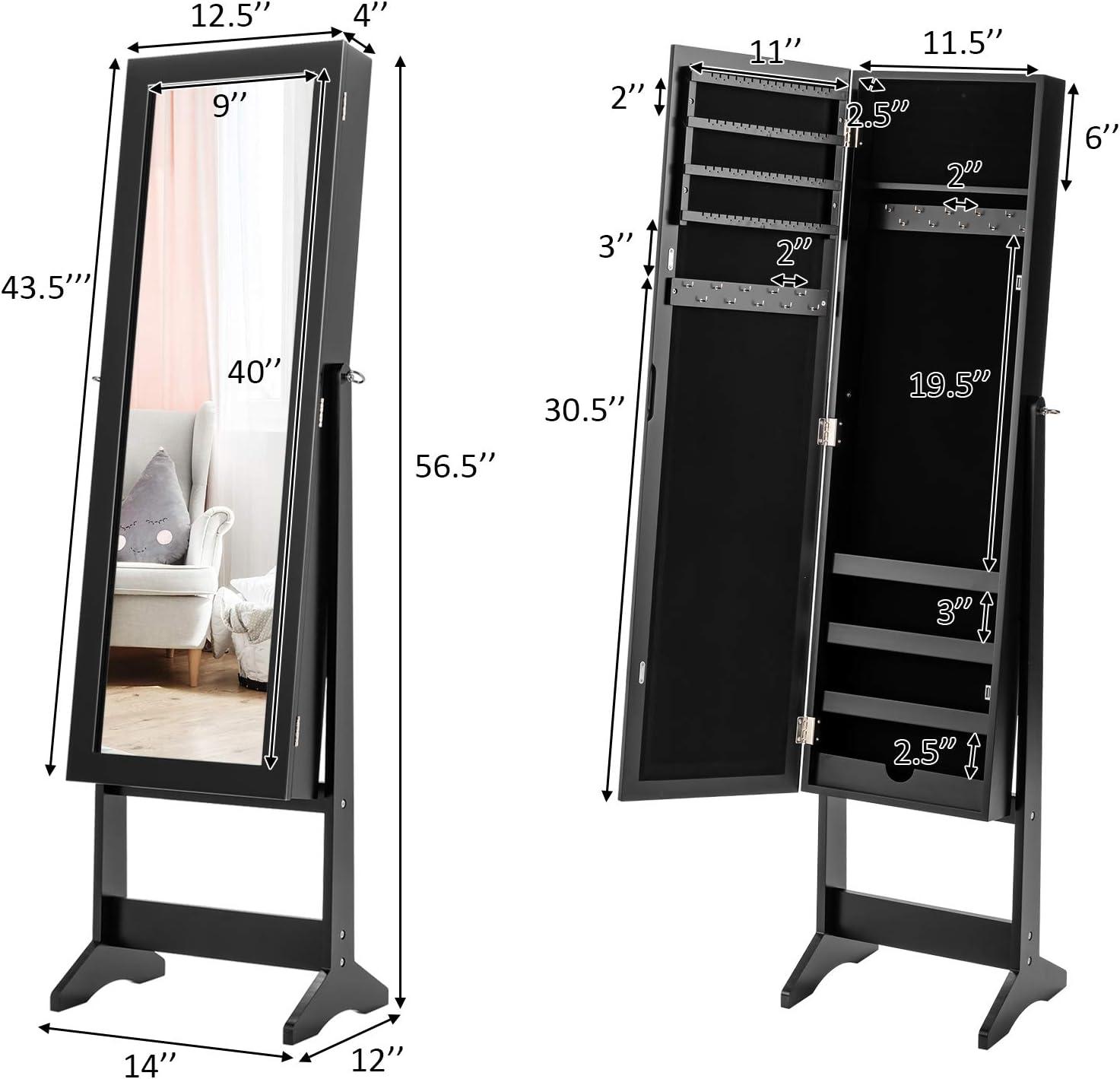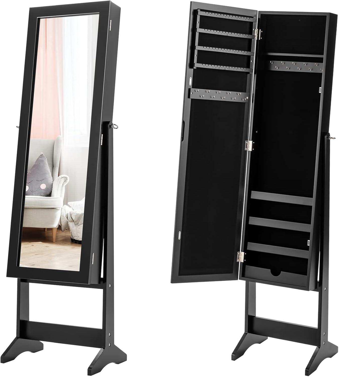 [2-in-1 Mirror & Cabinet]: Combined a mirror with a jewelry organizer in one cabinet, this freestanding jewelry armoire allows you to enjoy the dual benefits and endless fun of dressing up. You can use it as a mirror for you to dress or a practical jewelry cabinet to store your value jewelry, leaving you a clean and spacious space.