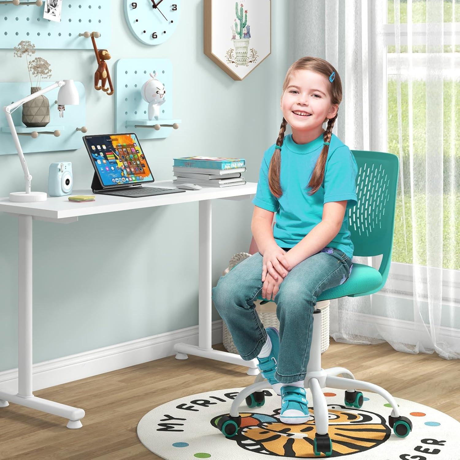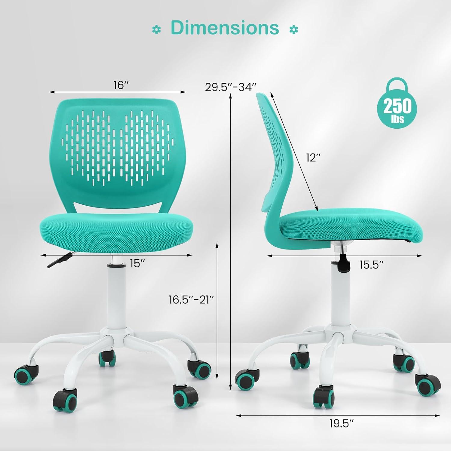 Giantex Kids Desk Chair, Adjustable Children Study Chair, Swivel Armless Mesh Task Student Chair, Child Desk Chair with Adjustable Height & Lumbar Support (Blue)(Turquoise)