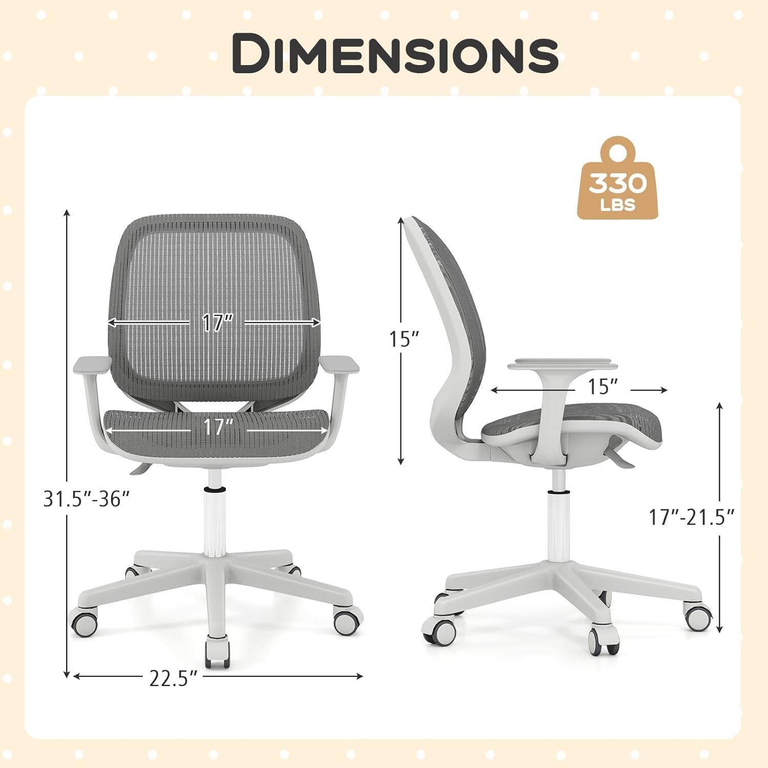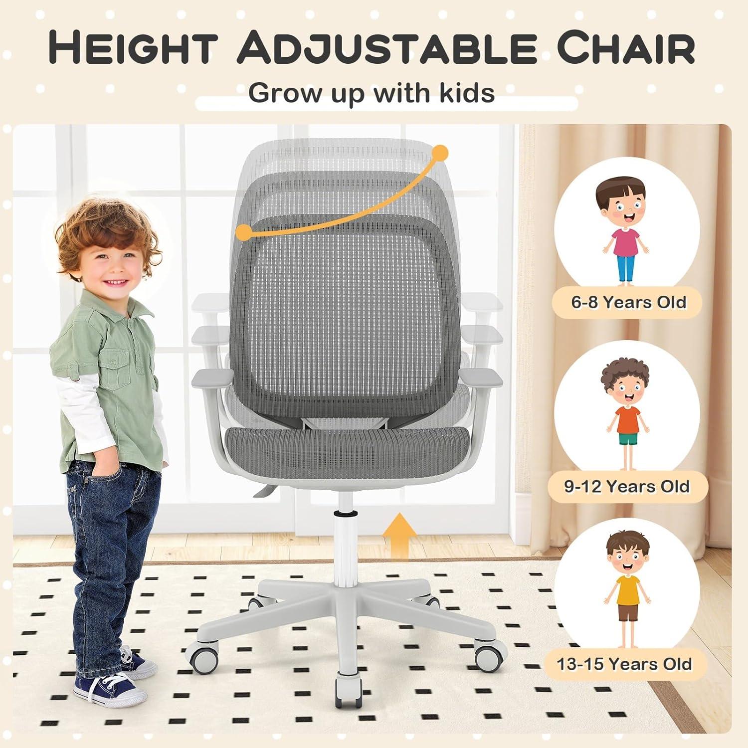 [Height Adjustable for Growing Kids] The kids desk chair offers seamless height adjustment from 17″ to 21.5″, perfectly accommodating children 43″ to 65″ tall. This flexible range makes it easy for parents to tailor the chair to their child’s unique needs, providing ergonomic support and exceptional comfort.