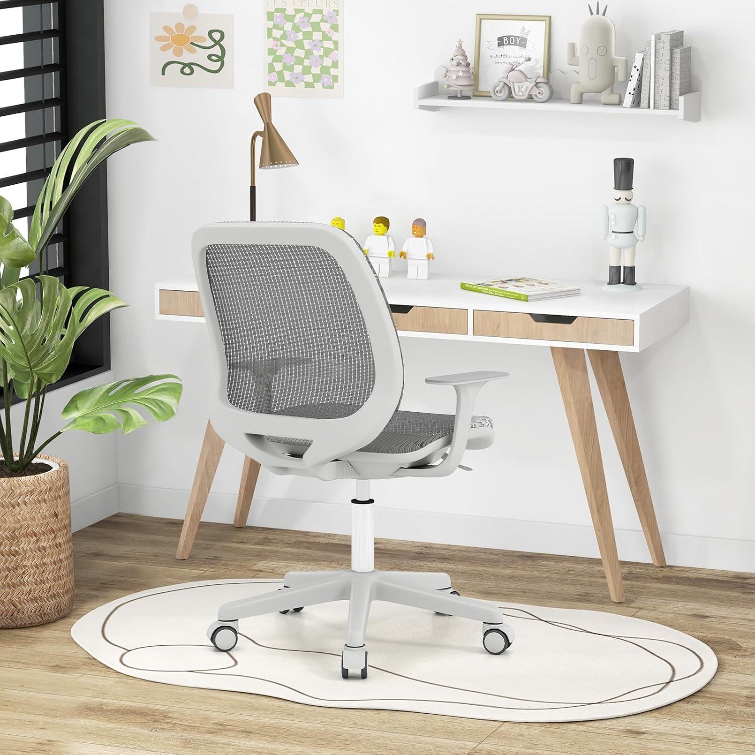 [Soft and Breathable Mesh Seat with Armrests] Featuring an upgraded nylon mesh seat, this swivel chair offers a skin-friendly, breathable surface that resists wear and tear while enhancing elasticity. The wide armrest design protects your child from accidental falls and allows for a relaxed and comfortable arm position.