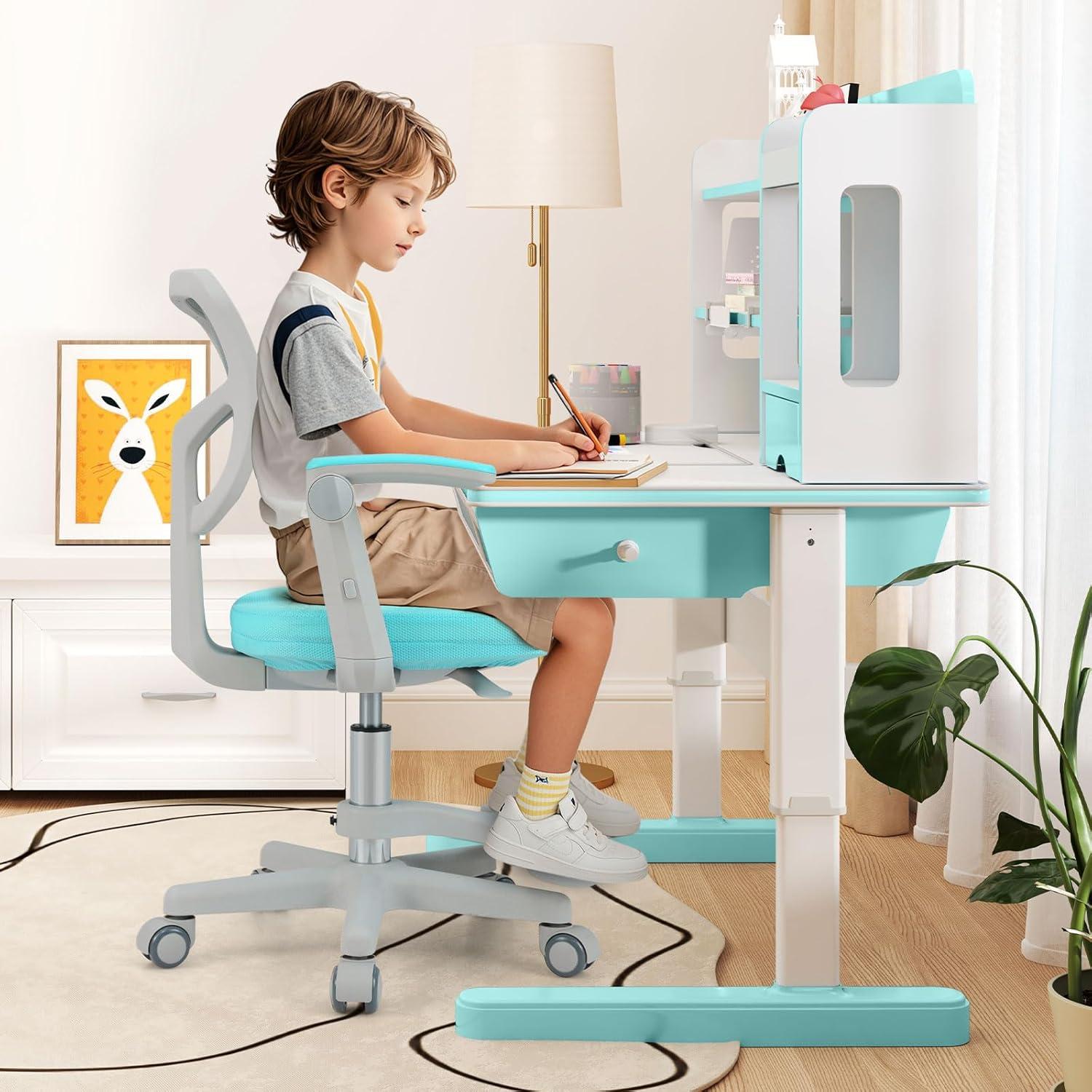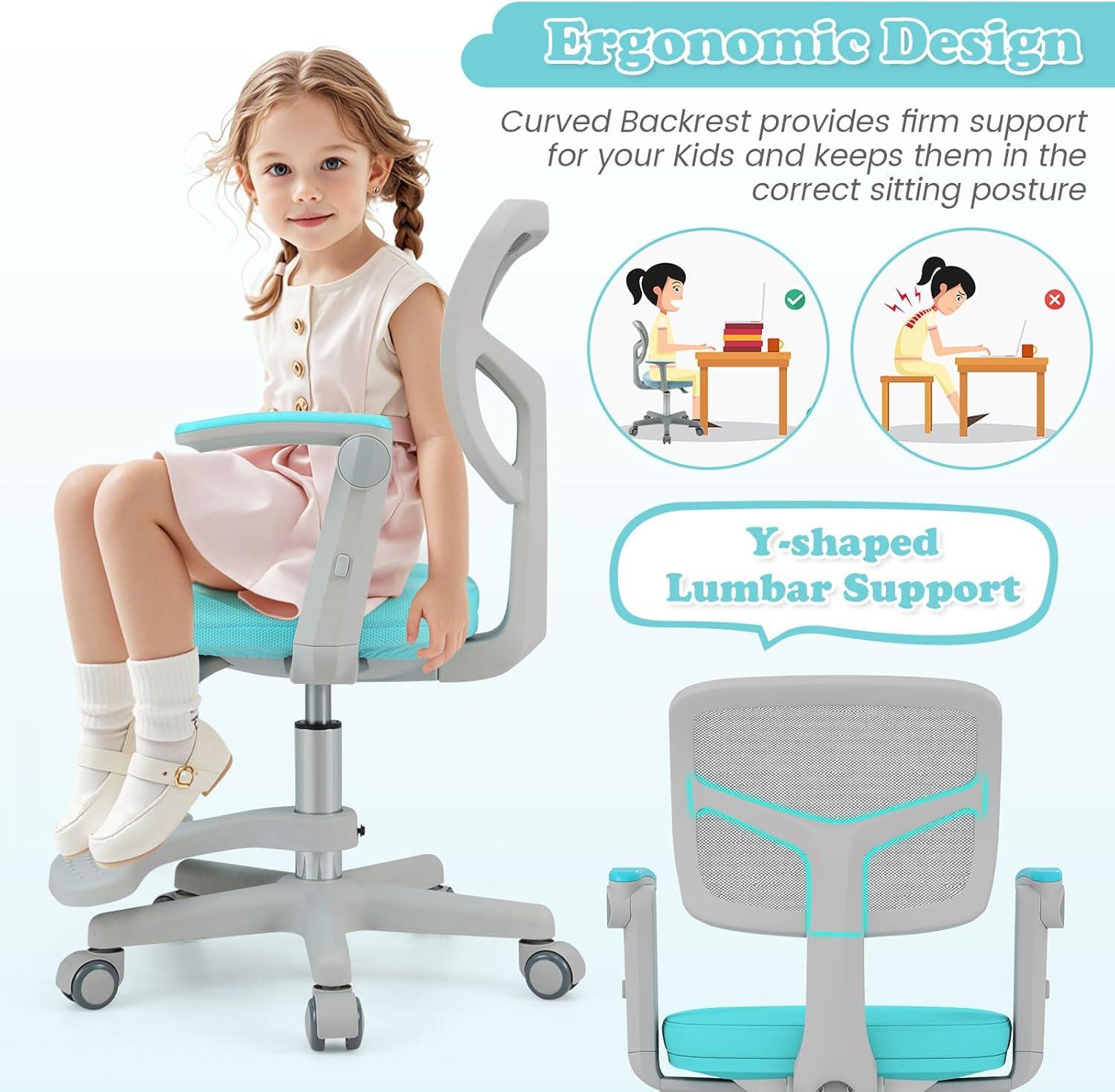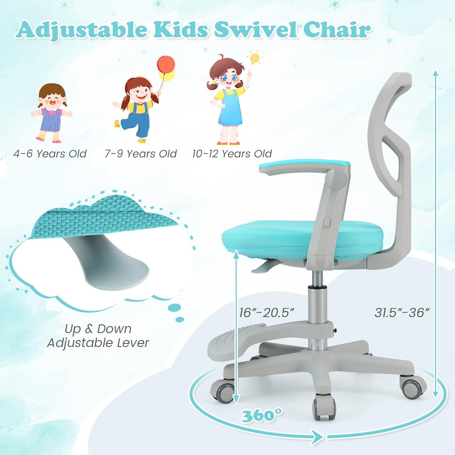 Giantex Kids Desk Chair, Height Adjustable Children Swivel Computer Chair with Y-Shaped Lumbar Support & Universal Casters, Mesh Kids Task Chair for Study, Boys Girls Aged 4-13, Blue(Turquoise)