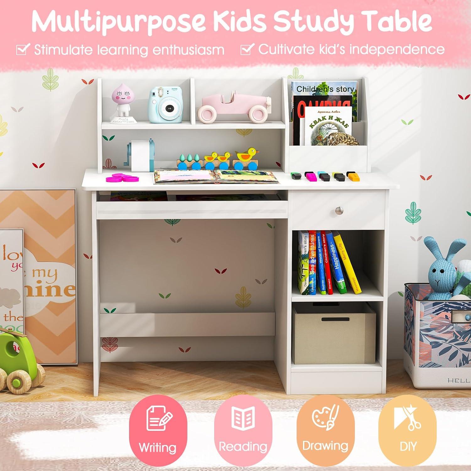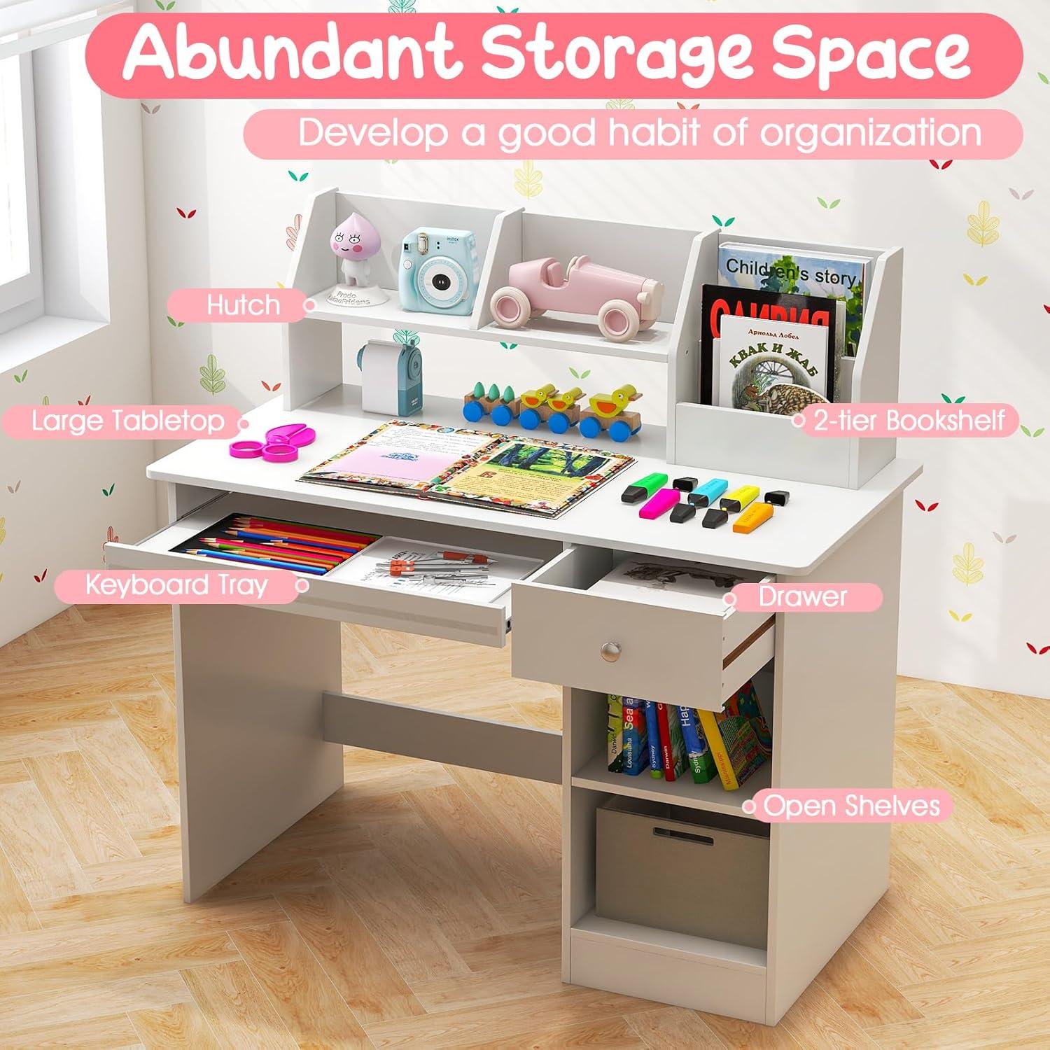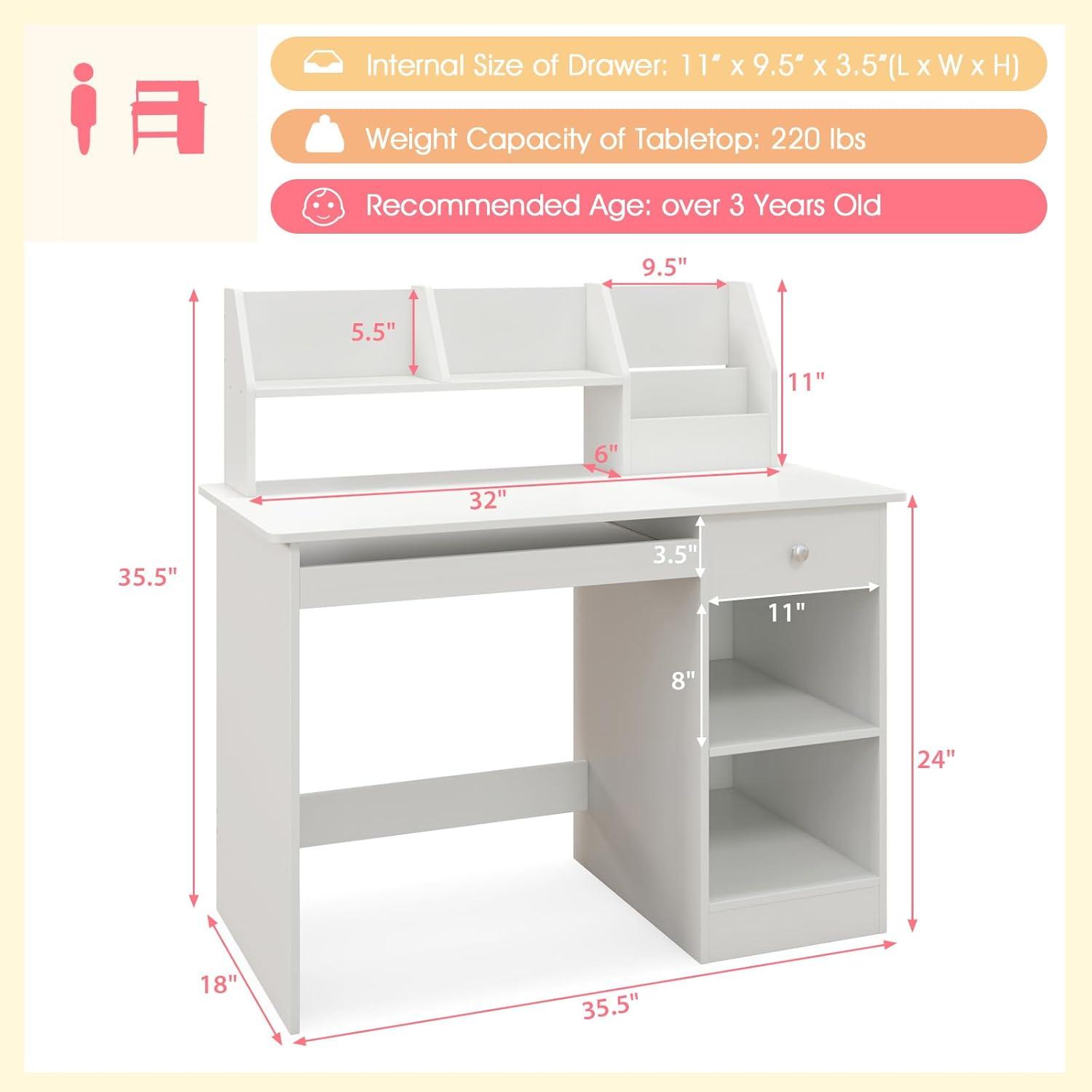 [Ideal for Compact Spaces]: Measuring 35.5″ x 18″ x 35.5″ (L x W x H), this kids' home desk with storage is perfect for small spaces like dorm rooms, studies, and bedrooms. Its space-saving design maximizes utilization, making it a cost-effective option for limited spaces.