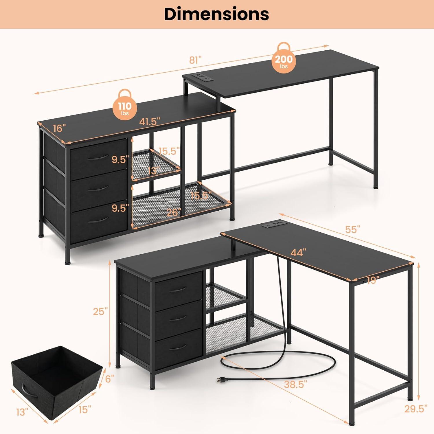Overall Dimension of L Desk: 55″ x 41.5″ x 29.5″ (L x W x H)
