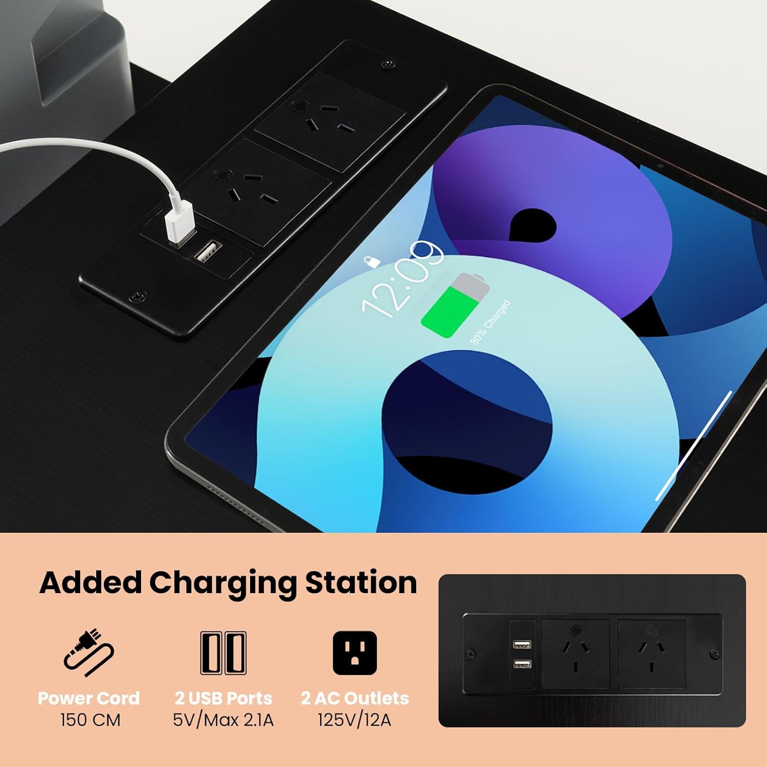 [Convenient Charging]: The workstation desk has 2 AC outlets (125V/12A) and 2 USB ports (5V/Max 2.1A) that allow you to keep your devices powered up and eliminate the hassle of tangled cords. Now get rid of dead batteries!