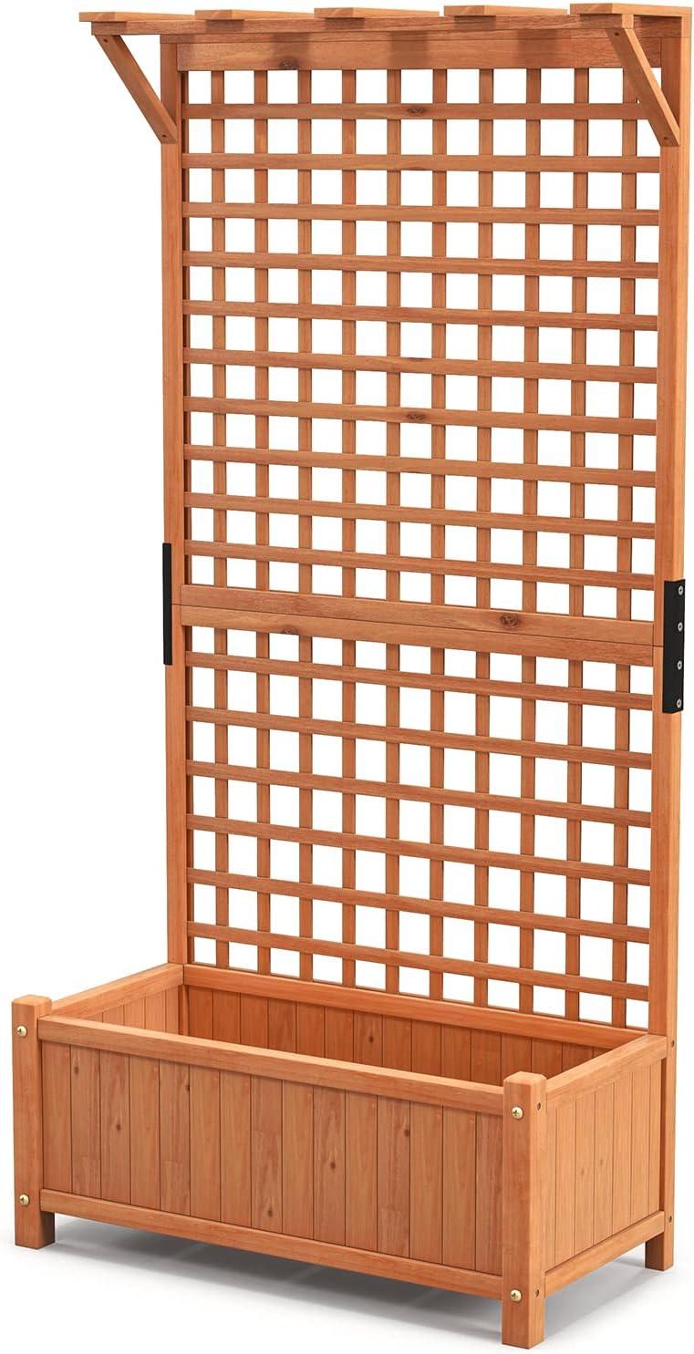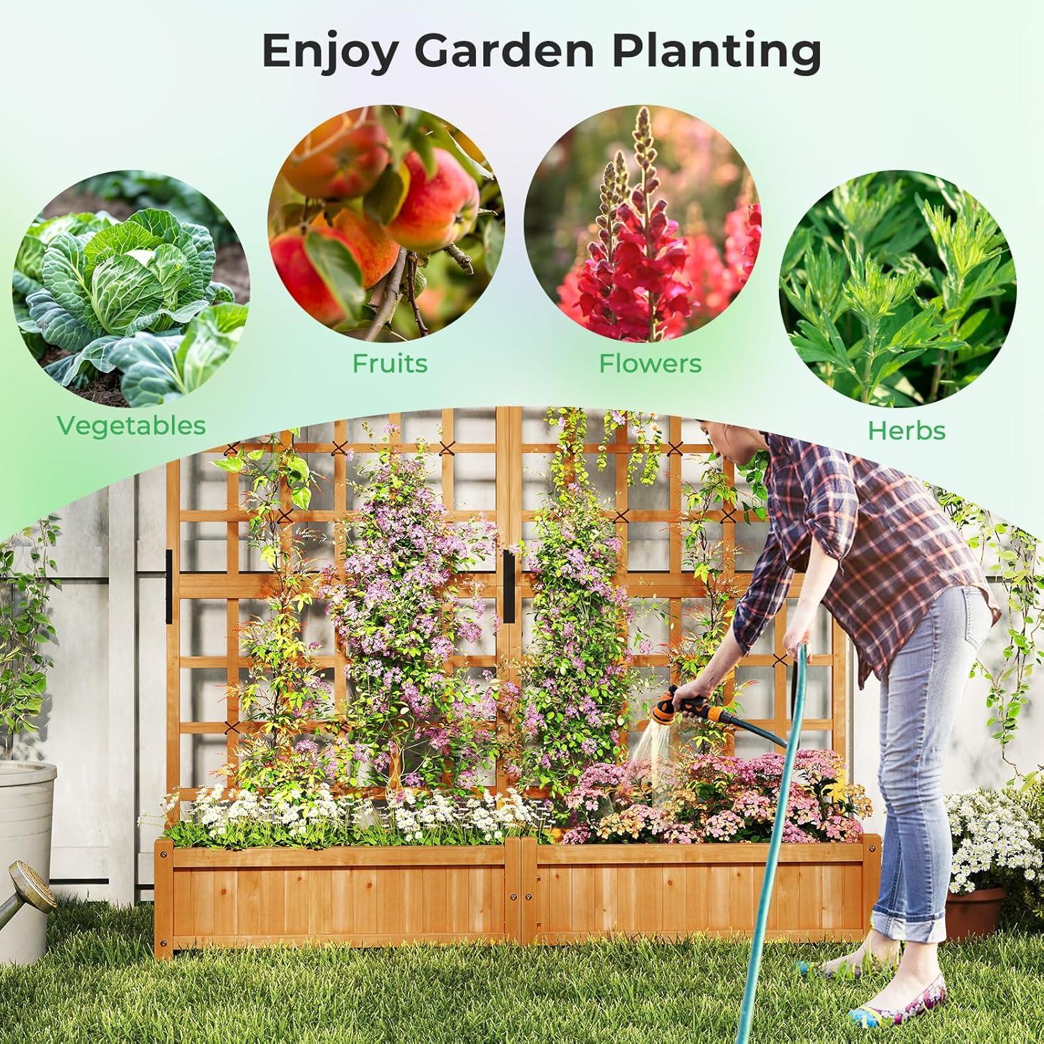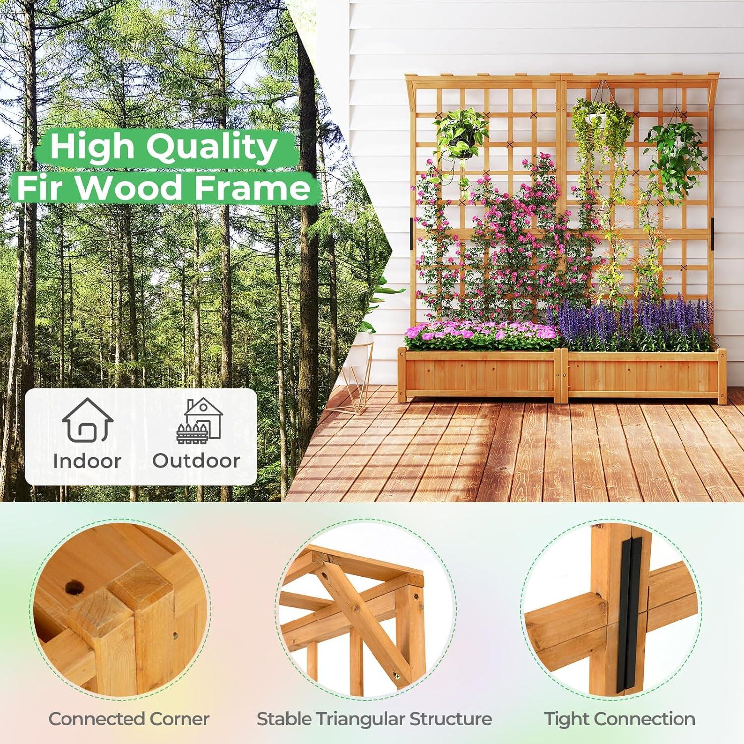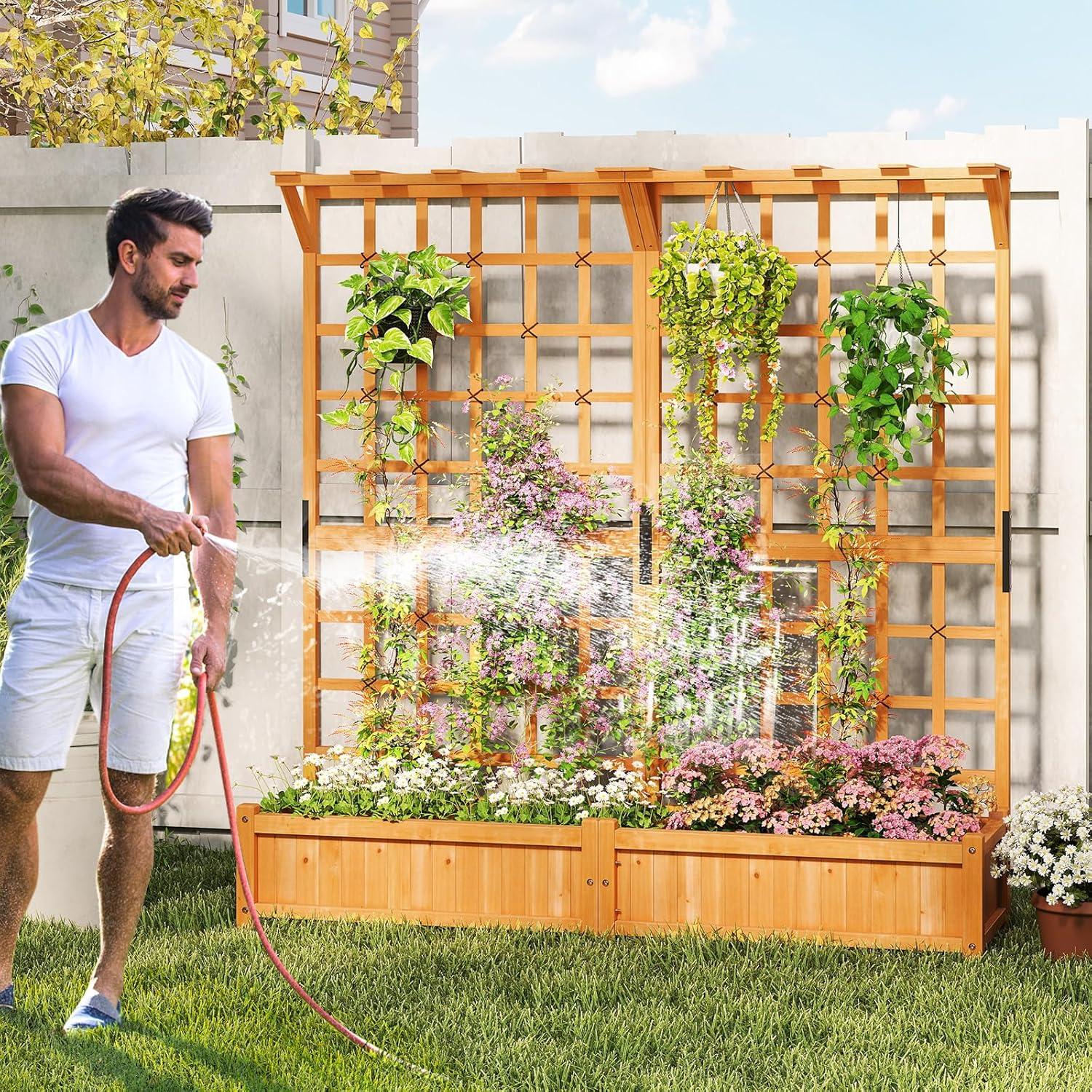 [Multifunctional 3-In-1 Planter]: Dive into versatile gardening with our raised garden bed featuring a lattice trellis, planter areas, and a handy hanging bracket. Grow climbing plants like tomatoes and jasmine, or hang your favorite potted flowers for a delightful display.