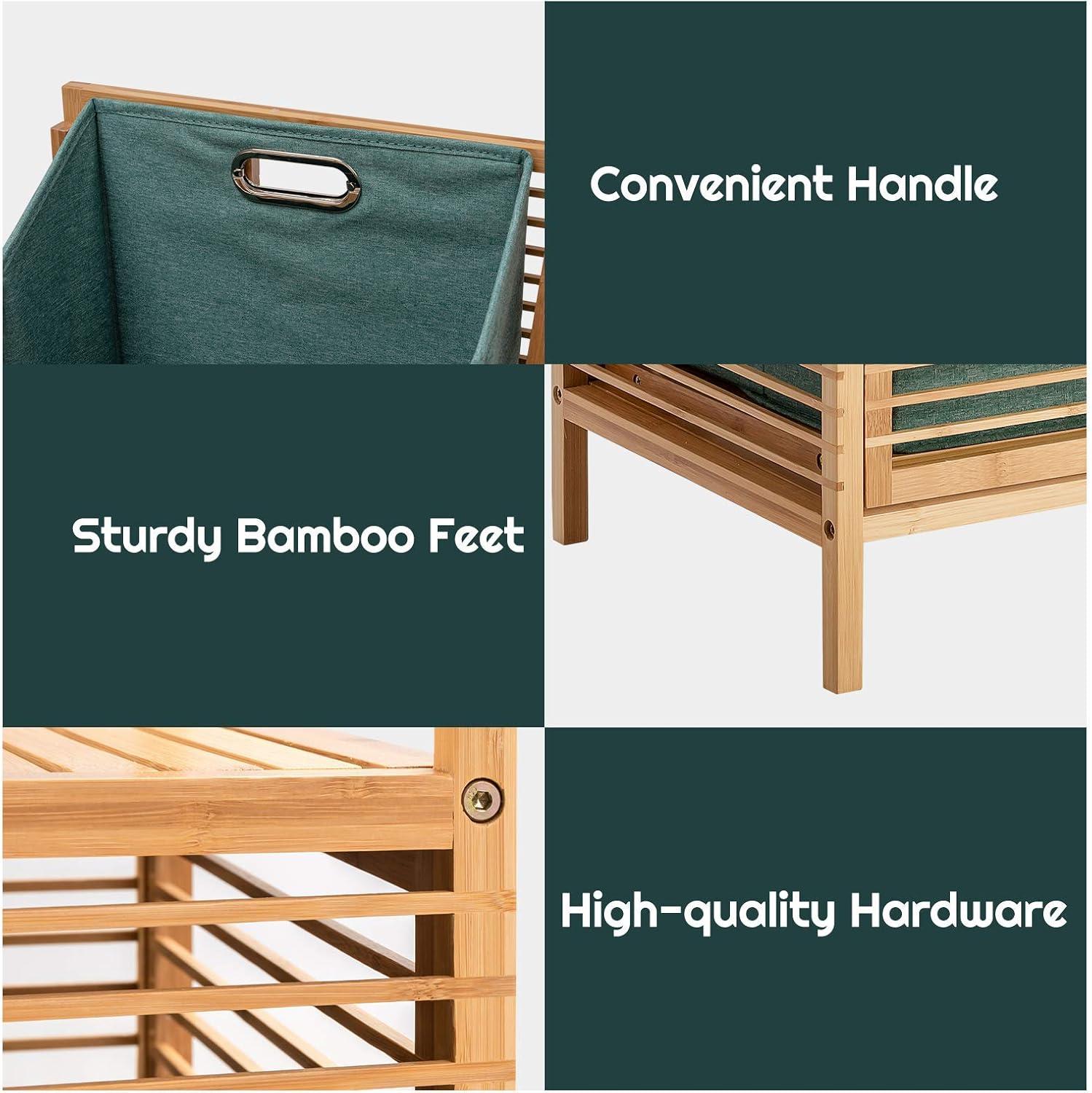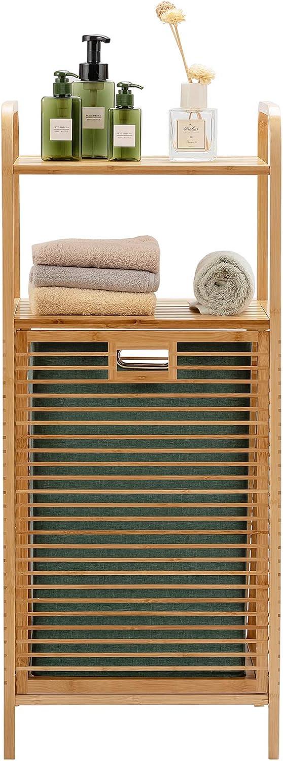 imageGiantex Laundry Hamper TiltOut Laundry Linen Hamper Bamboo Freestanding Clothes Basket WShelf ampamp Removable Liner Storage Laundry Shelf for Bathroom Living Room Bedroom NaturalNaturalGreen