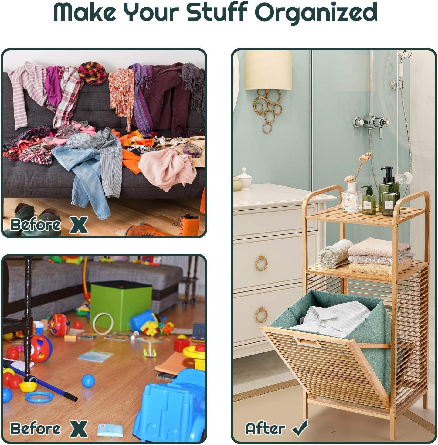 [Convenient Use]: Handles on liner and frame make transport easy, easy assemble required with all hardwares packed in the package. You can place one in the bathroom, and keep fresh towels stacked on top.