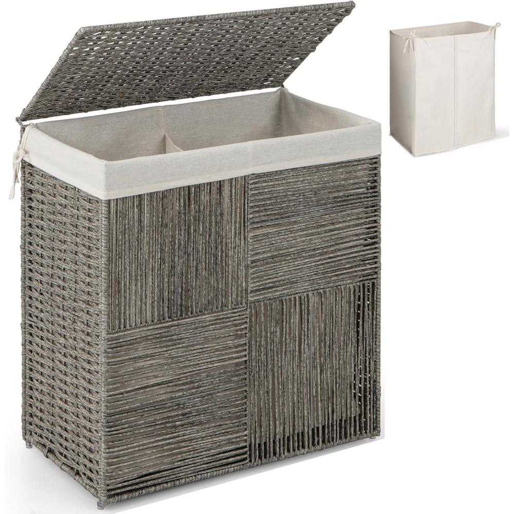 【Removable & Washable Liner】: This rattan laundry hamper features a removable and washable 2-section liner bag. Made of premium polyester cotton, it enables you to separate light and dark clothing effortlessly. The bag can be securely attached to the laundry basket using fixing straps. Plus, the machine washable design ensures convenient cleaning.