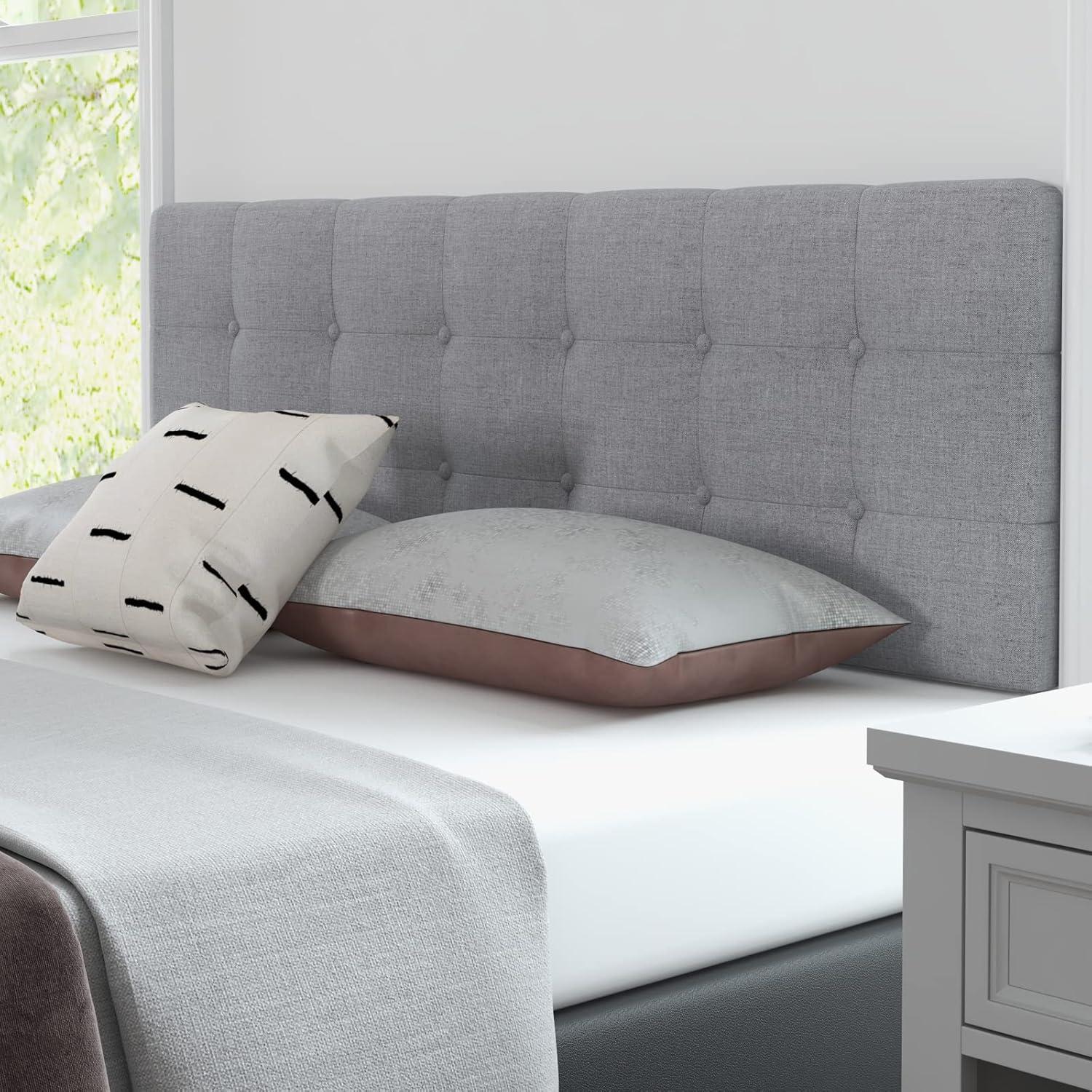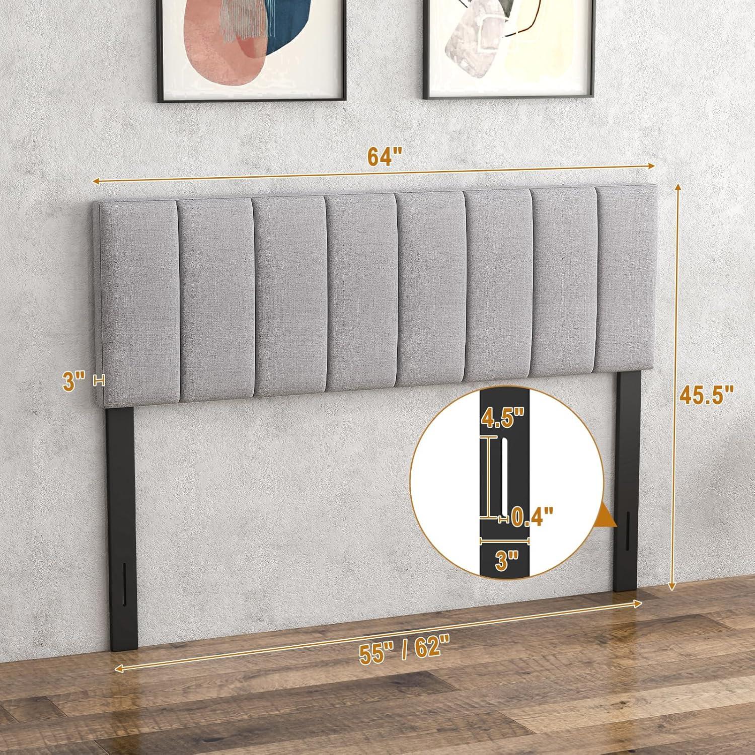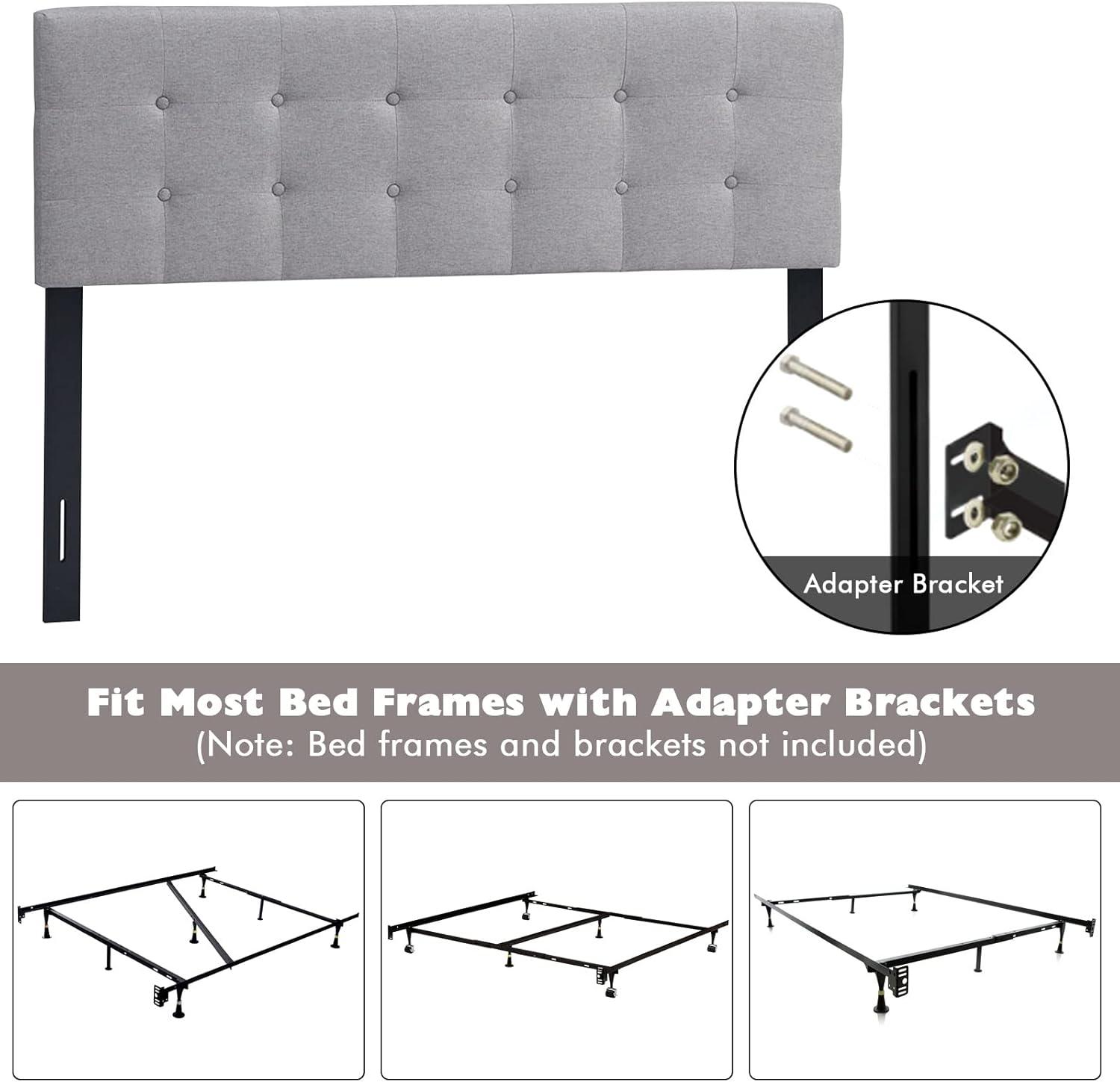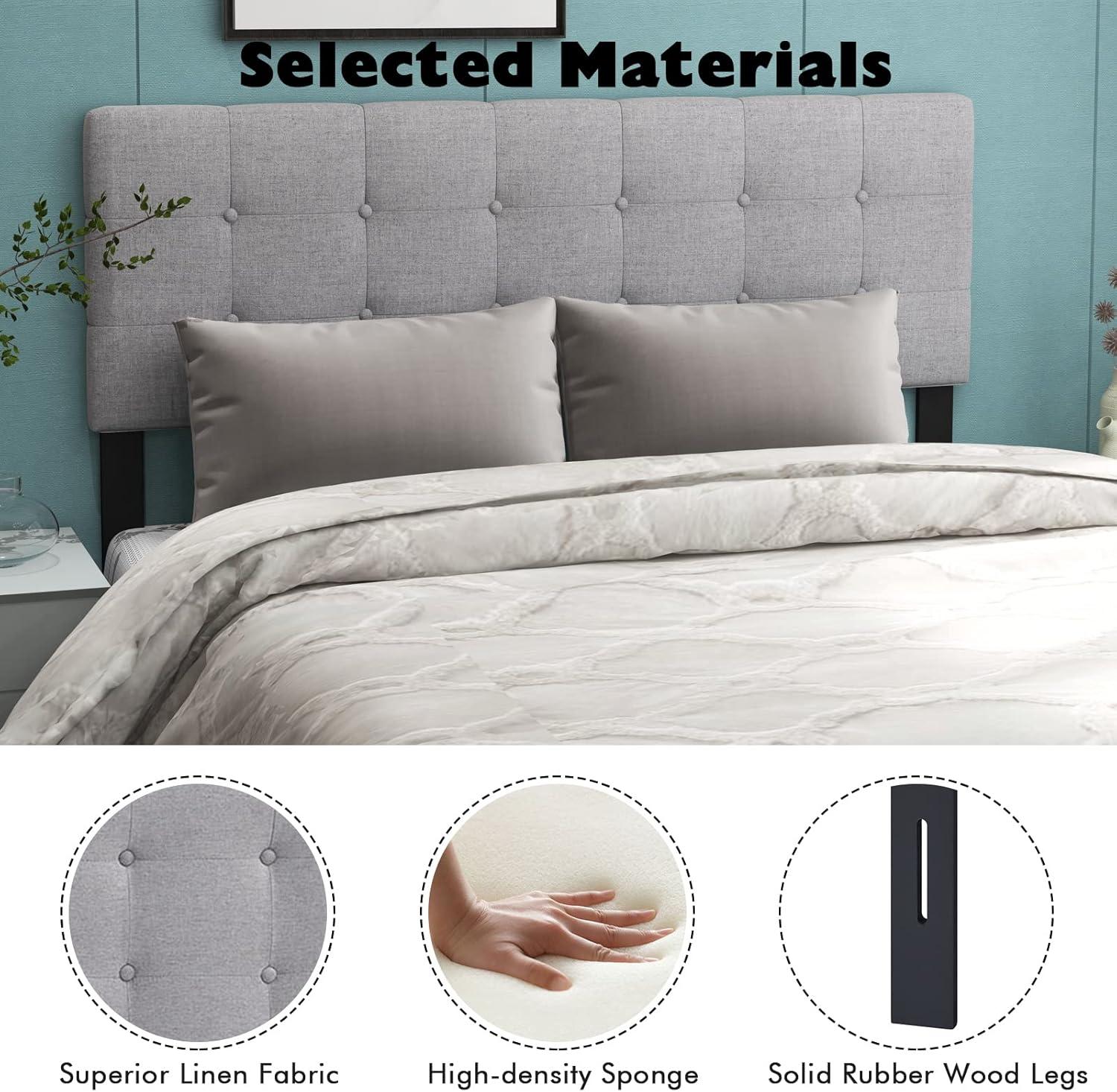 Giantex Linen Upholstered Headboard, Adjustable Width Button Tufted Headboard Only with Solid Wood Legs, Attach Frame, Modern Headboards for Queen Full Size Bed, Beige(Gray)