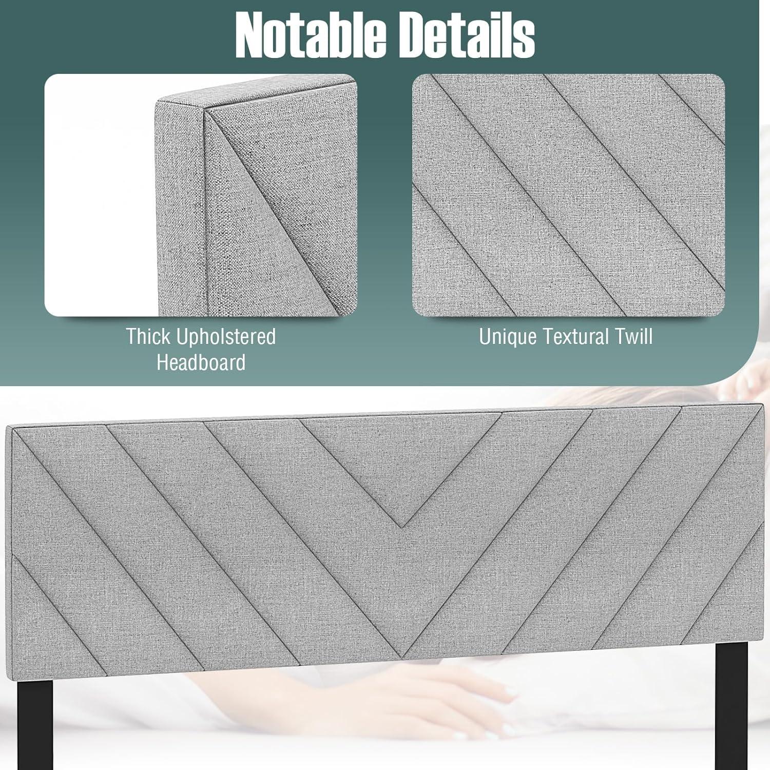 imageGiantex Upholstered Headboard Button Tufted Headboard Adjustable Height from 38 to 53 Platform Full Size Easy Assembly Modern Fabric Furniture for Bedroom Light Grey