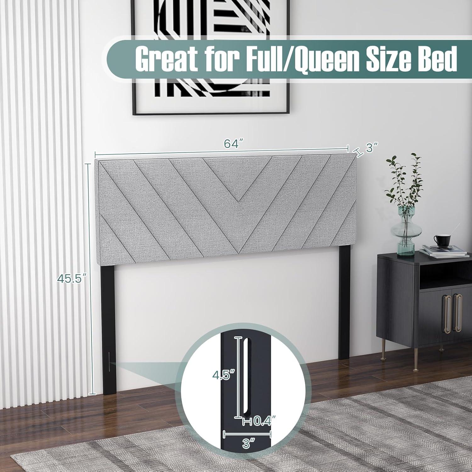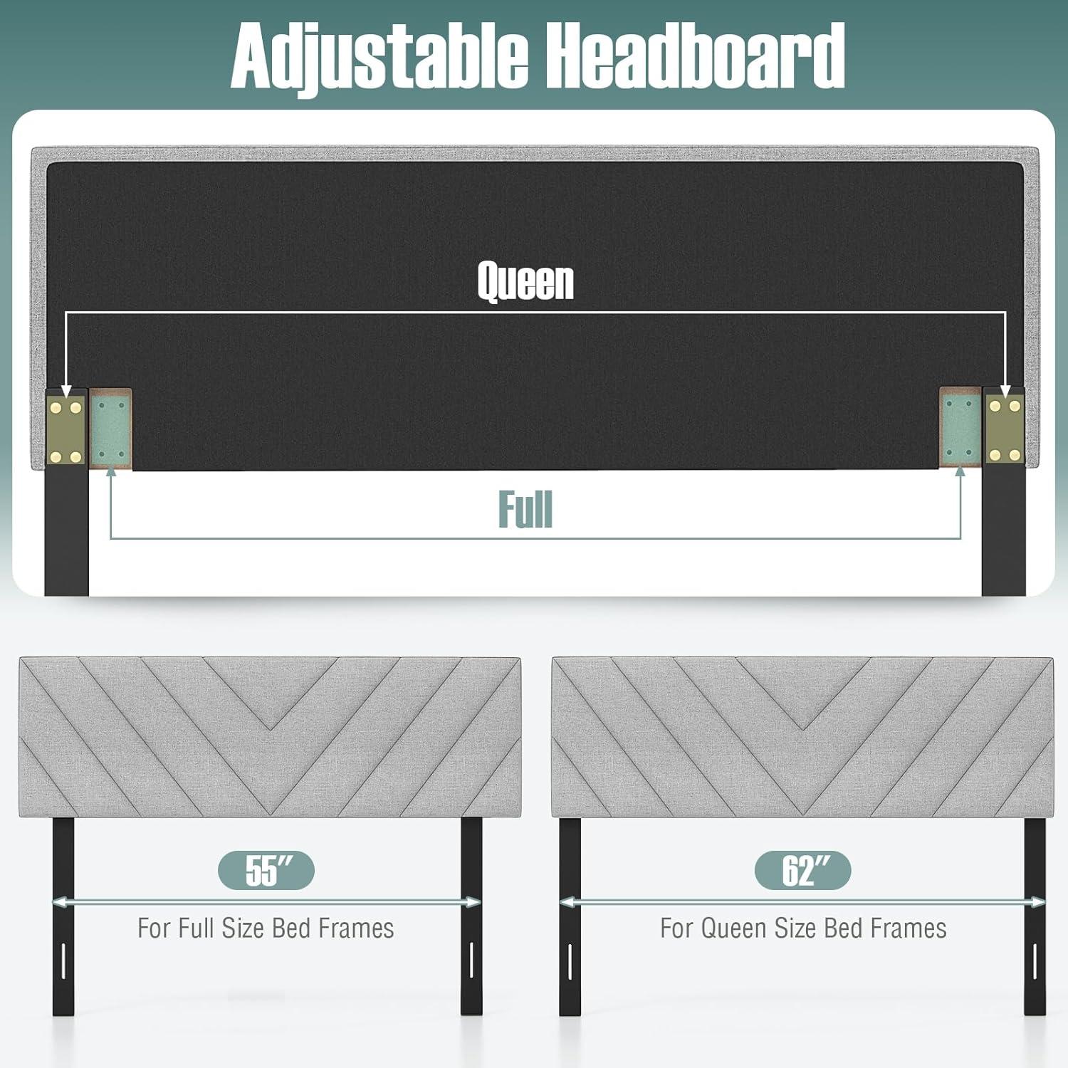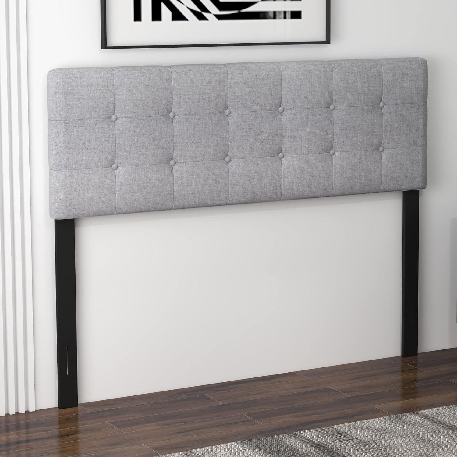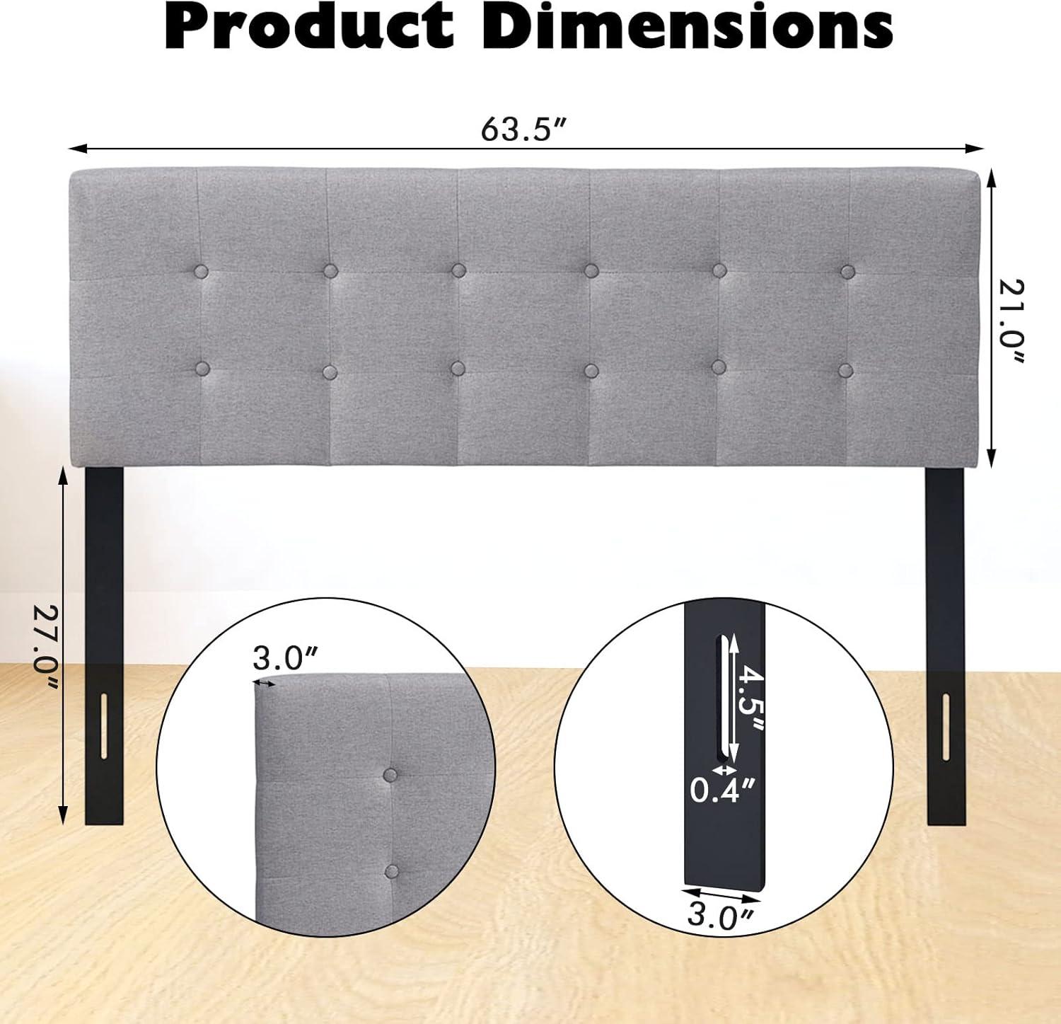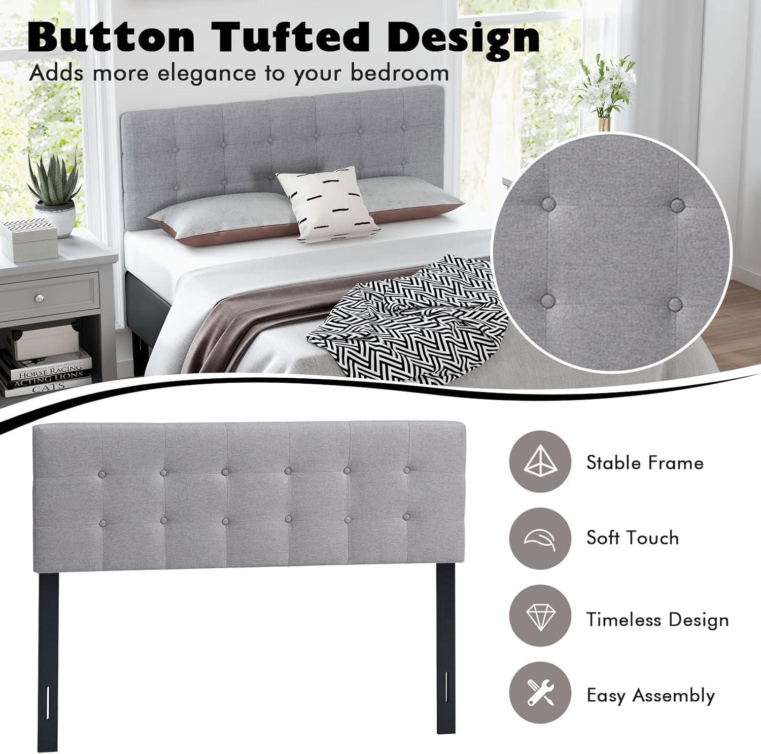 Giantex Upholstered Headboard, Button Tufted Headboard, Adjustable Height from 38’’ to 53’’ Platform, Full Size, Easy Assembly, Modern Fabric Furniture for Bedroom, Light Grey