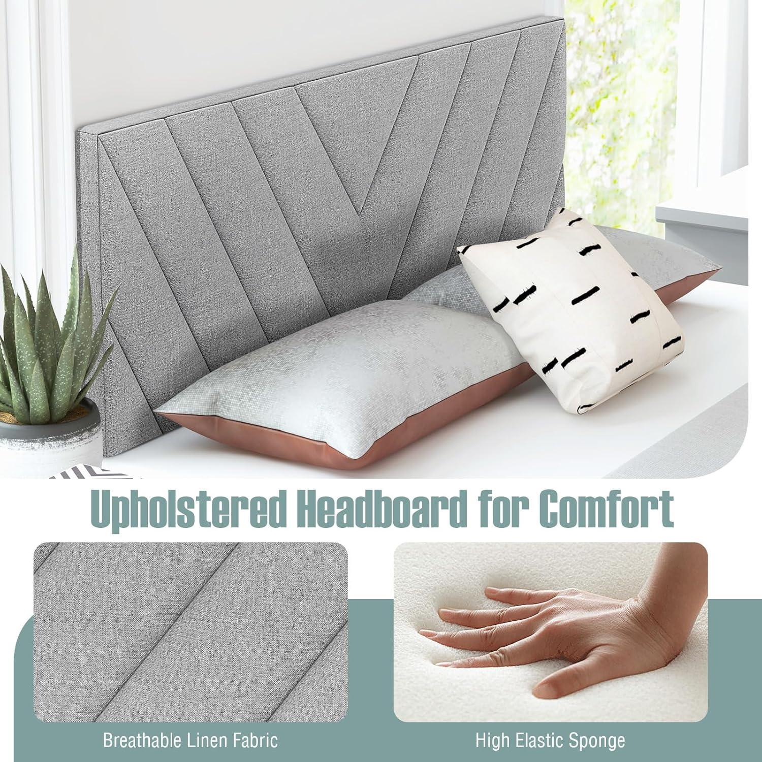 [Fabric Upholstered Headboard]: Padded with high-density sponge, this bed backboard gives you supportive relaxation. Soft and stain-resistant linen fabric upholstery provides sophistication and long-lasting comfort, creating an ideal backdrop for bedding and shams of many styles.
