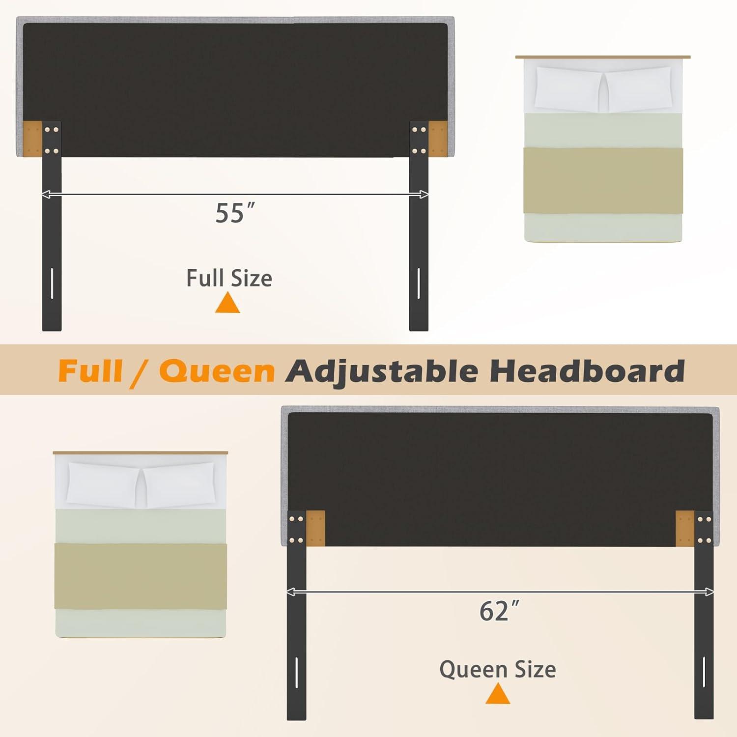 [Adaptable to Full/Queen Size Bed]: There are 2 options of leg mounting holes on the back of the headboard, allowing flexibility to adjust the width between the legs to 55''/62'', so you can choose as needed to better fit your bed size, perfect for your full or queen size beds.