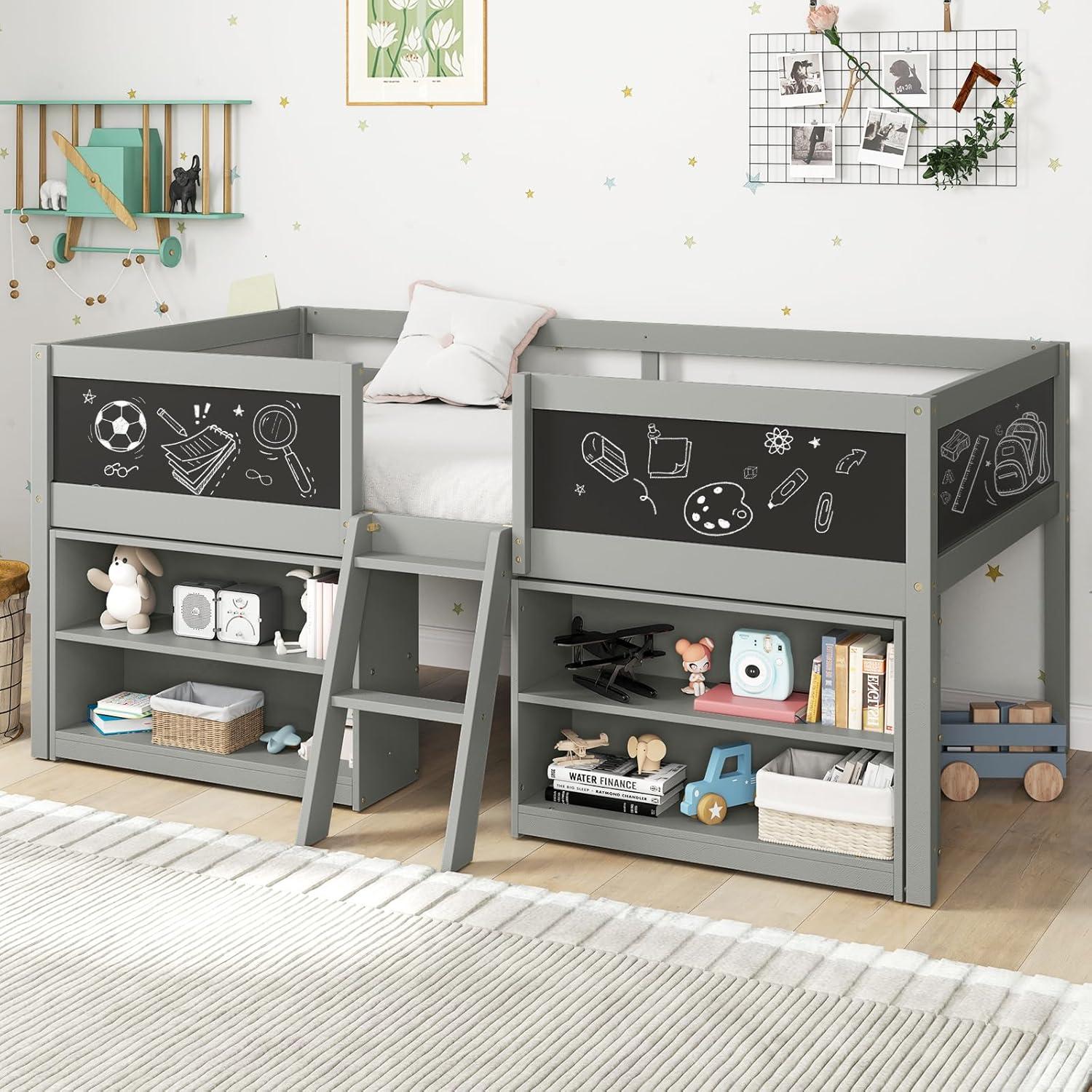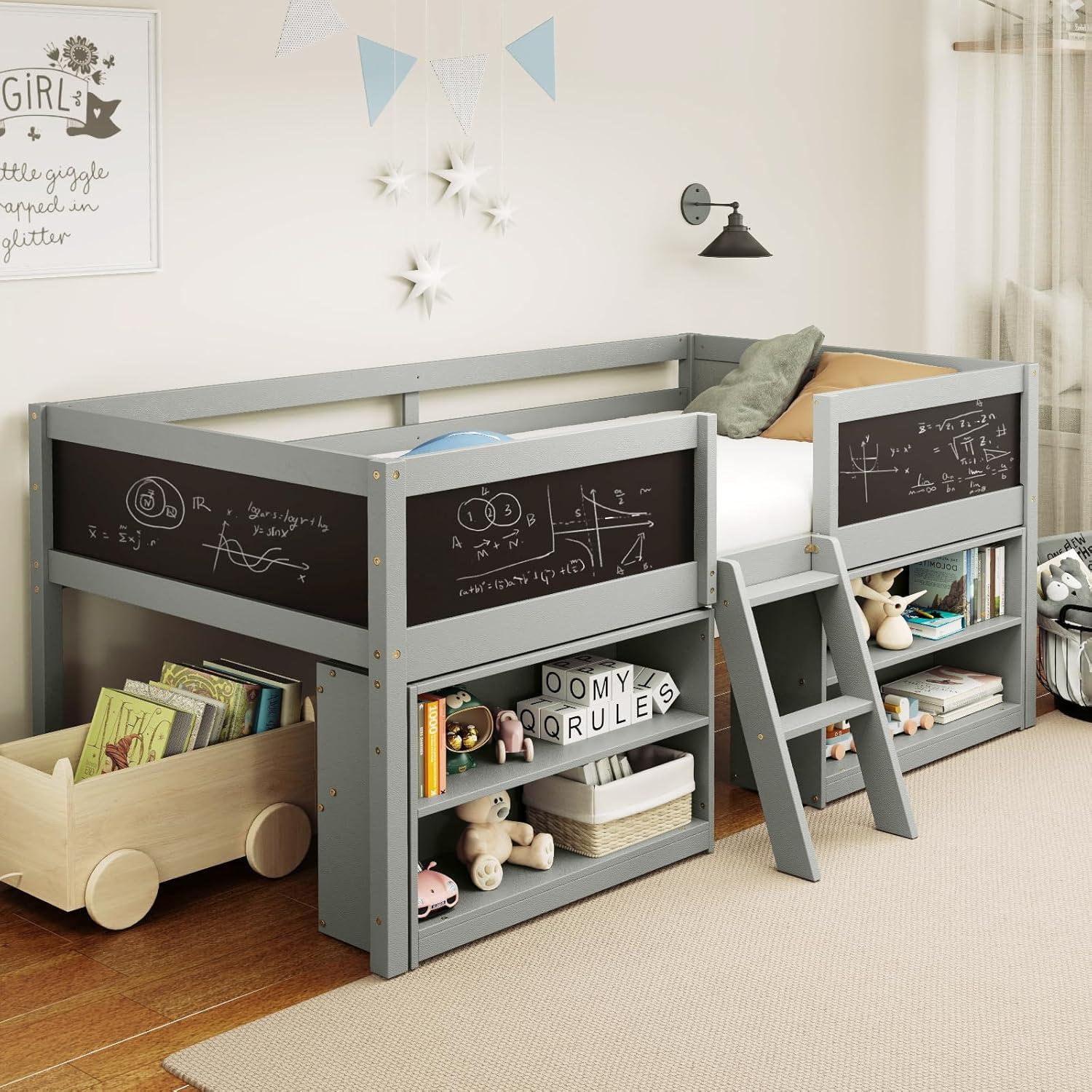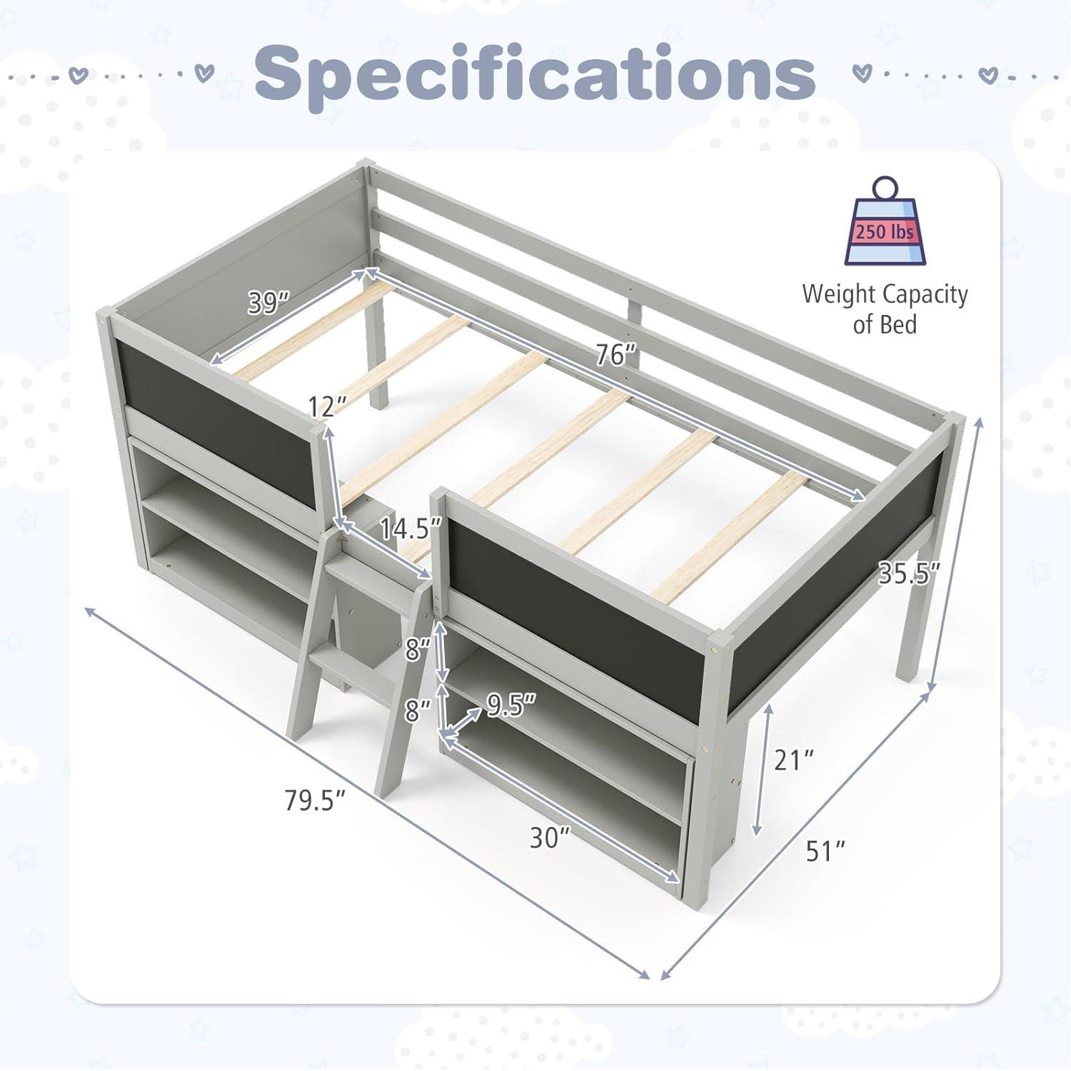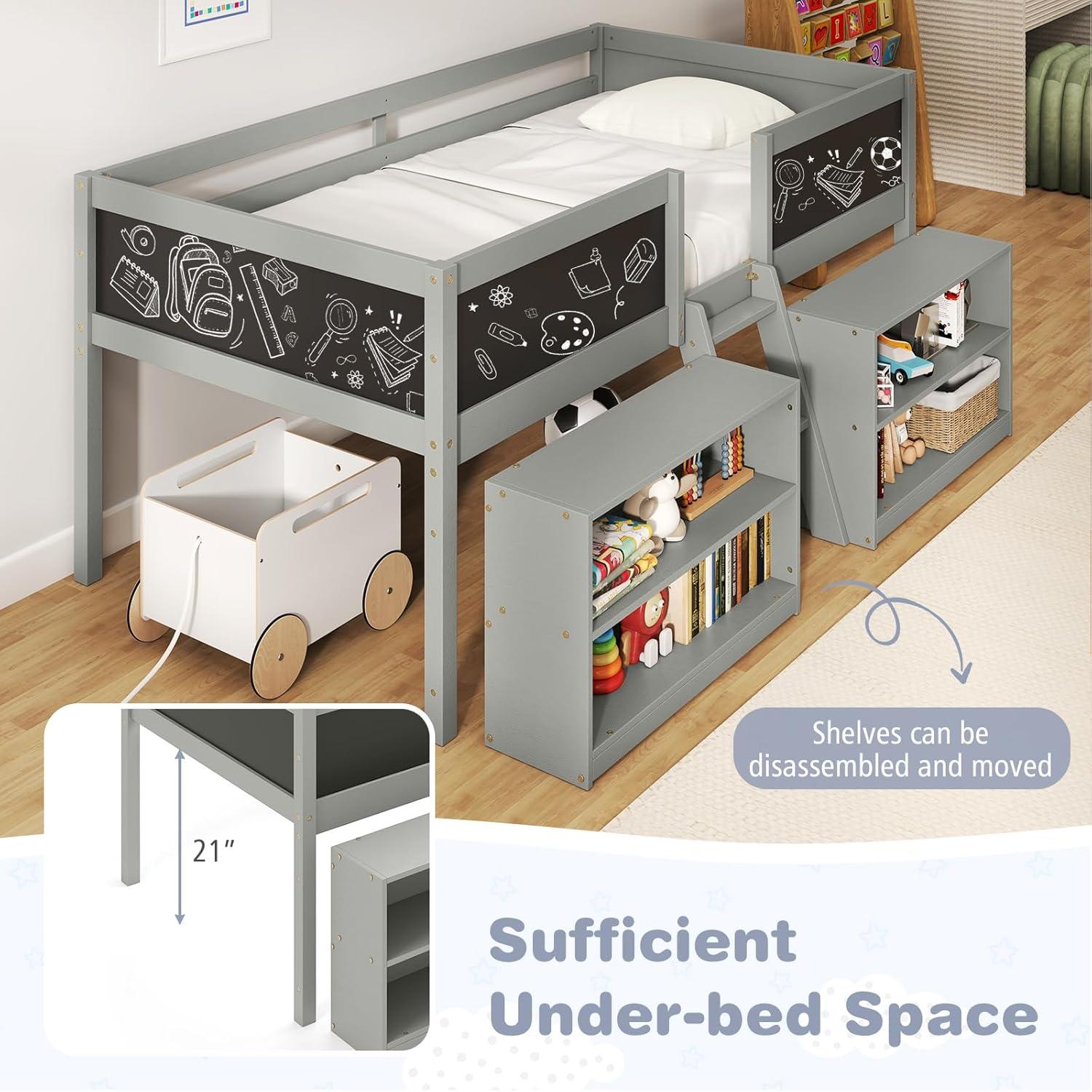 Maximize Space with Storage: Designed with both style and functionality in mind, this low loft bed features 2 movable bookcases, perfect for showcasing your child’s favorite books or keeping reading materials within easy reach. These versatile shelves help create a cozy reading nook, encourage a love for literature, and maintain a tidy, organized room.