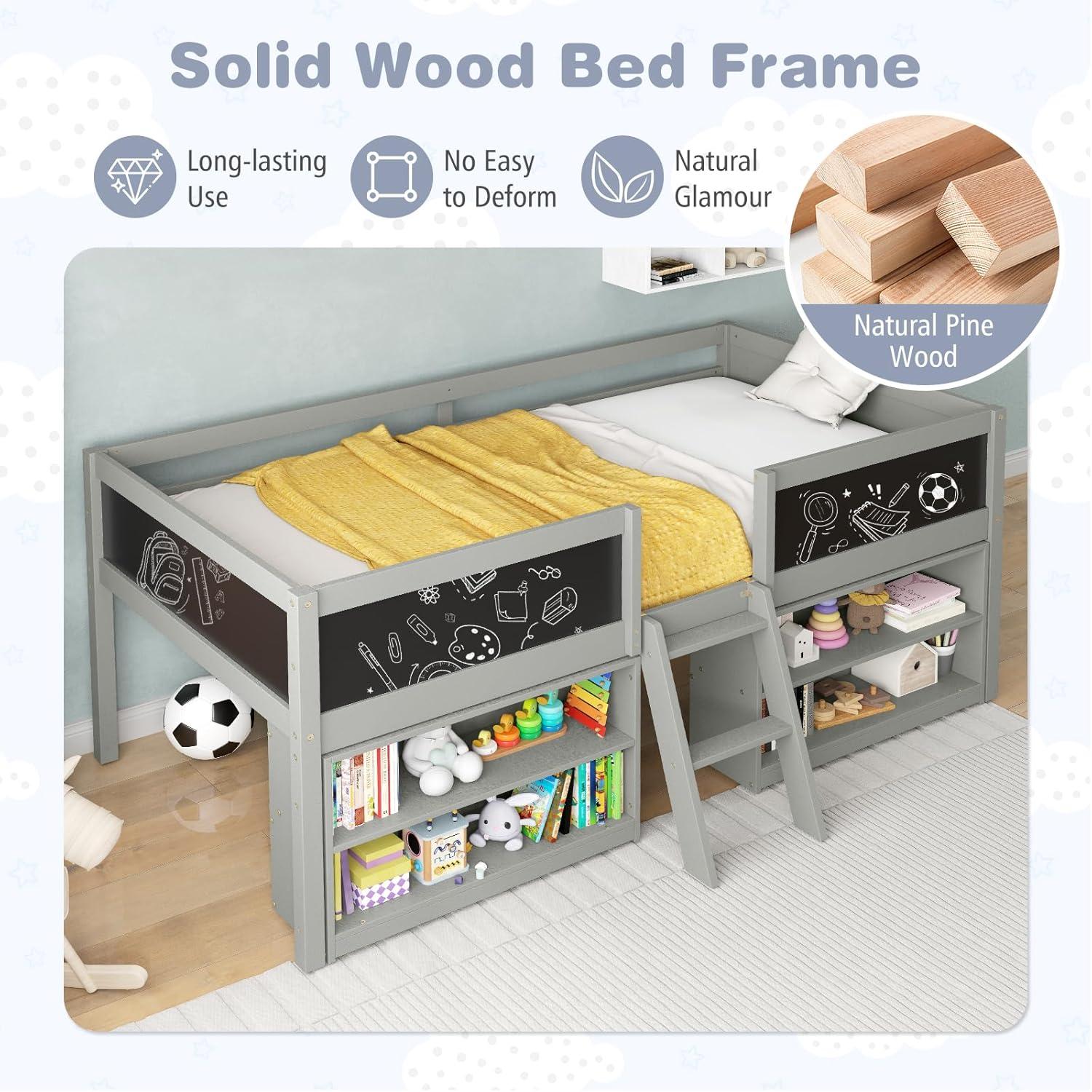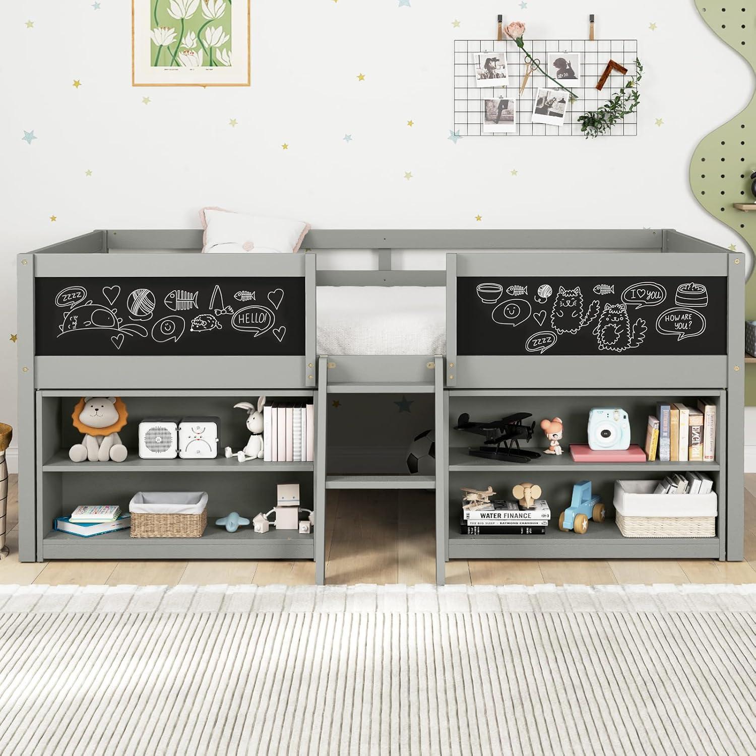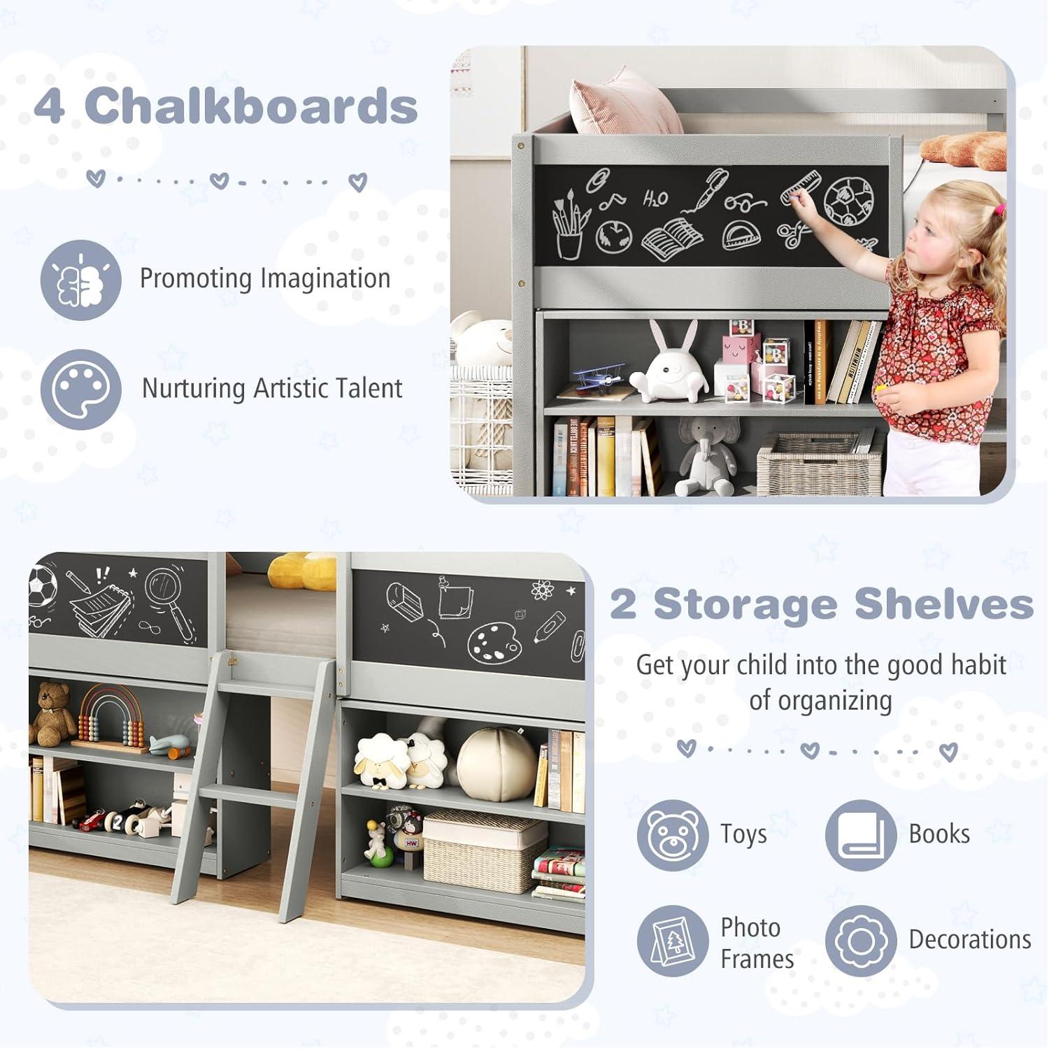 Built-in Chalkboards: This loft bed twin size is equipped with 4 built-in chalkboards on three sides, perfect for your child's creative expression. Whether drawing, doodling, or learning, these chalkboards foster interactive fun and learning, integrating education and creativity into their daily routine.