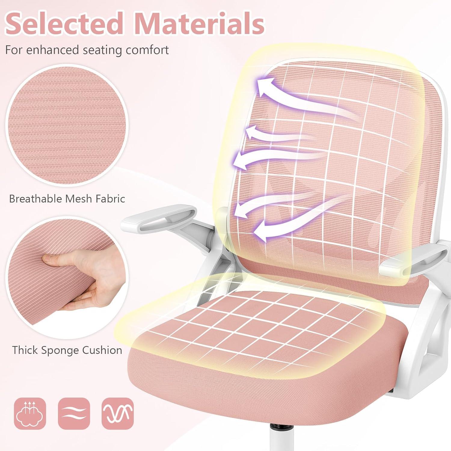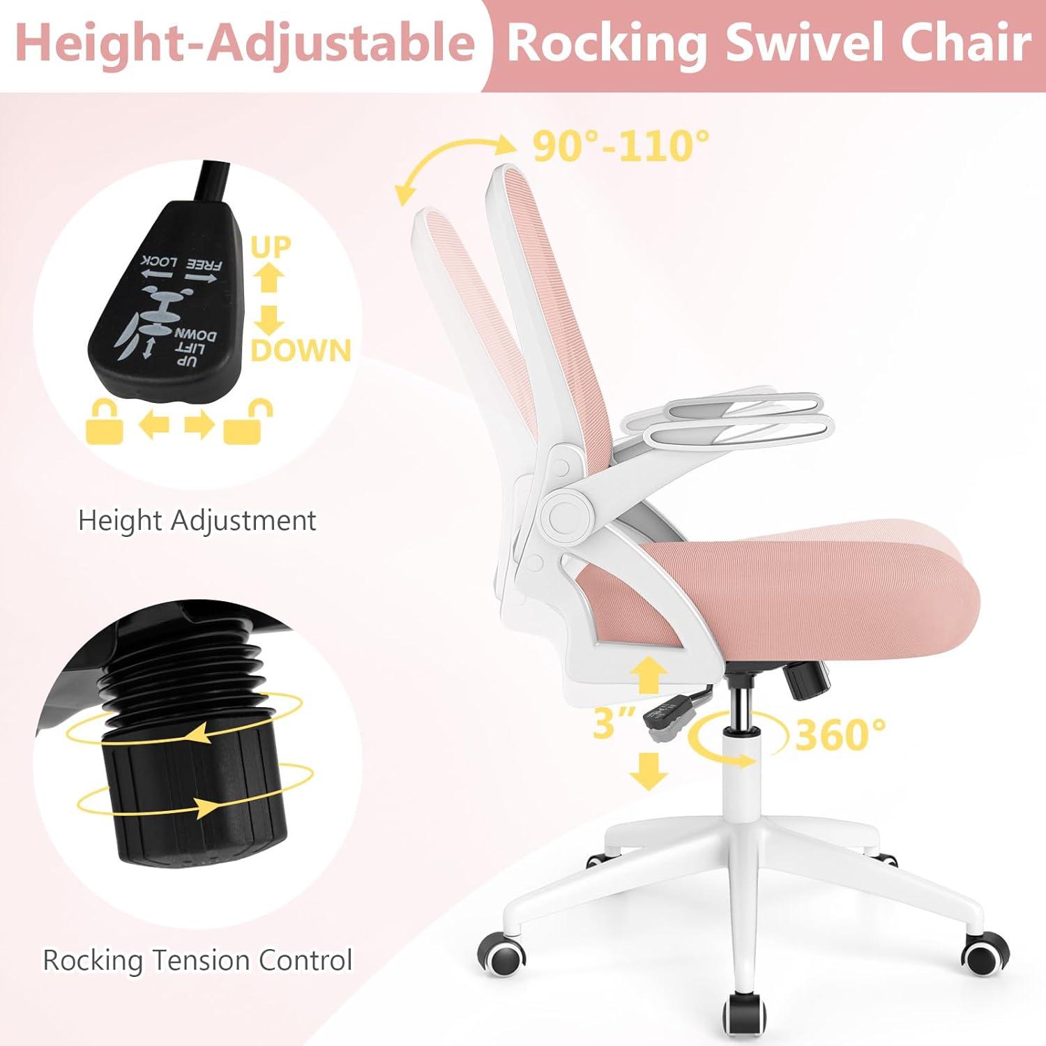 Giantex Mesh Office Chair, Ergonomic Desk Chair with Flip-up Arms & Lumbar Support, Height Adjustable Swivel Computer Desk with High Back for Home Office (Black)(Pink)