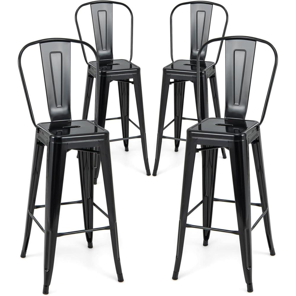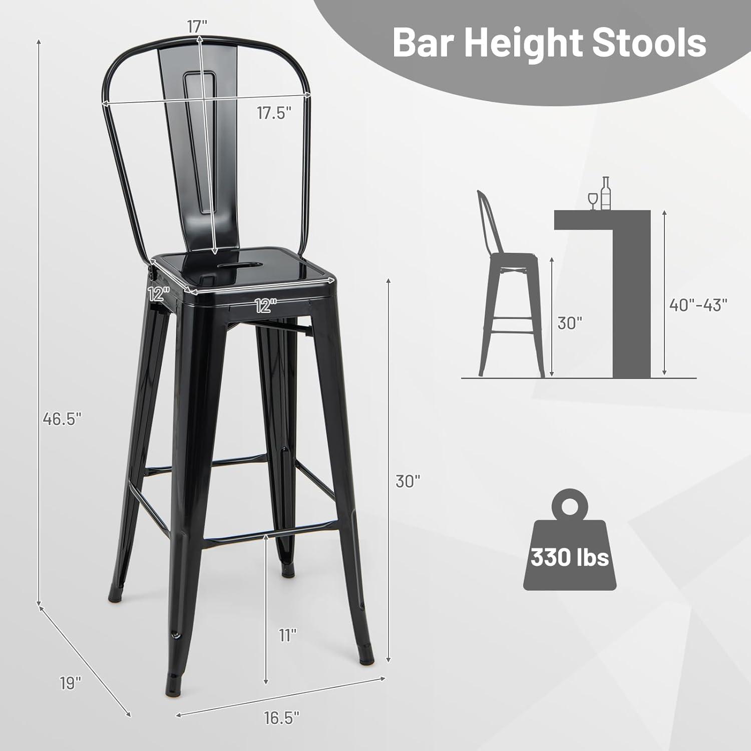 Giantex Metal Bar Stools Set of 4, 30" Bar Height Modern Industrial Barstools w/Removable Bucket Back & Footrest, High Back Bar Dining Chairs with Rubber Foot Pads for Kitchen Home Bar, Black(Black)
