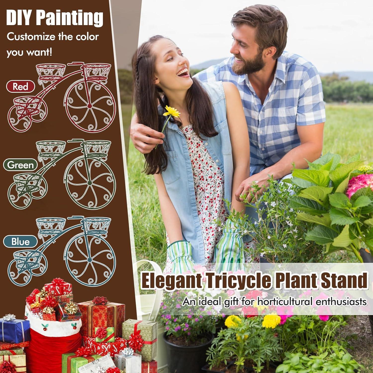 Giantex Metal Bicycle Planter, 3 Tier Tricycle Flower Plant Stand w/ 3 Decorative Wheels, Parisian Style Flower Display Stand Cart for Home Decor Patio Garden Flower Shop Indoor Outdoor(black)