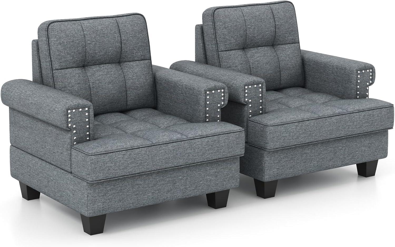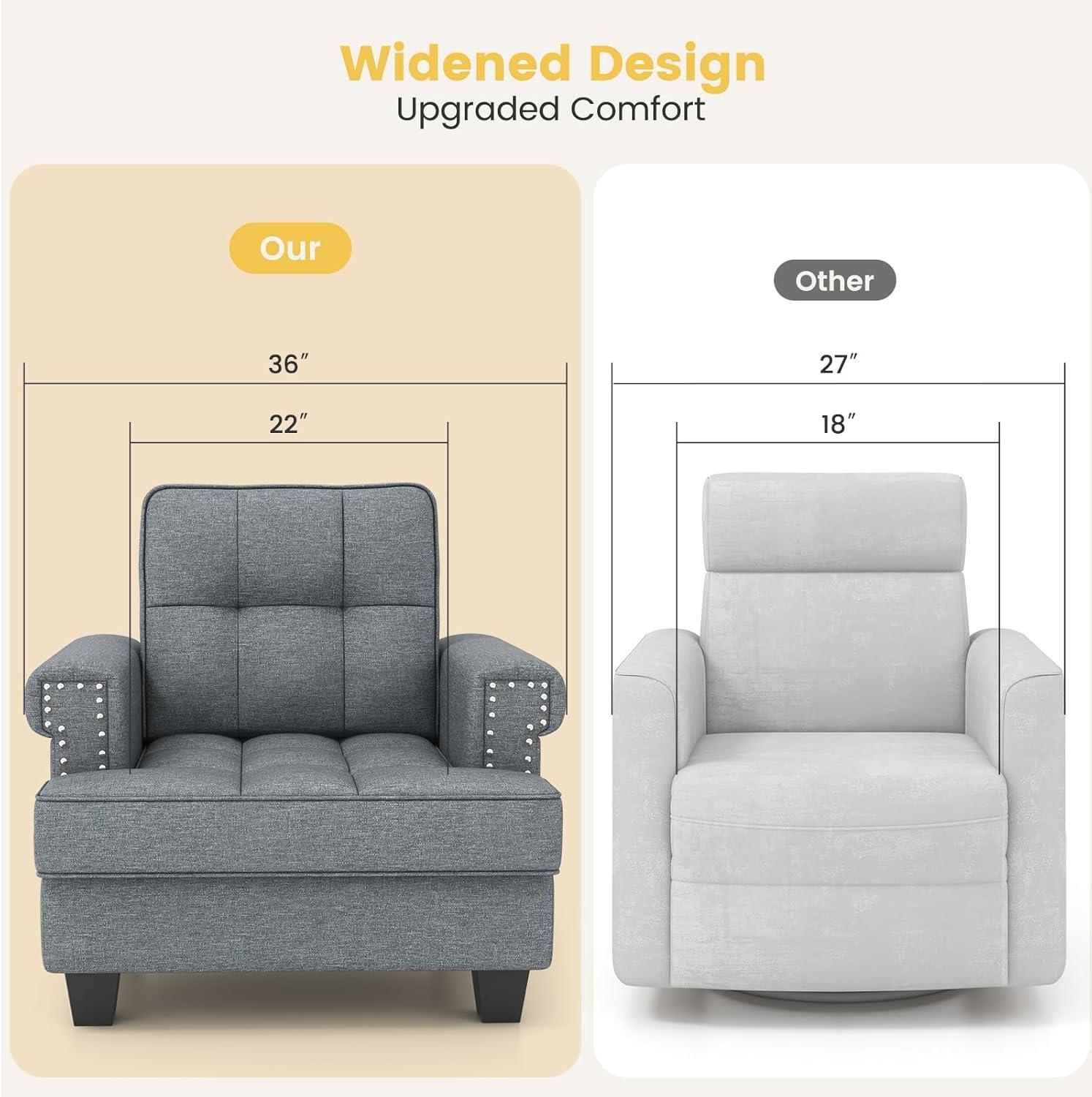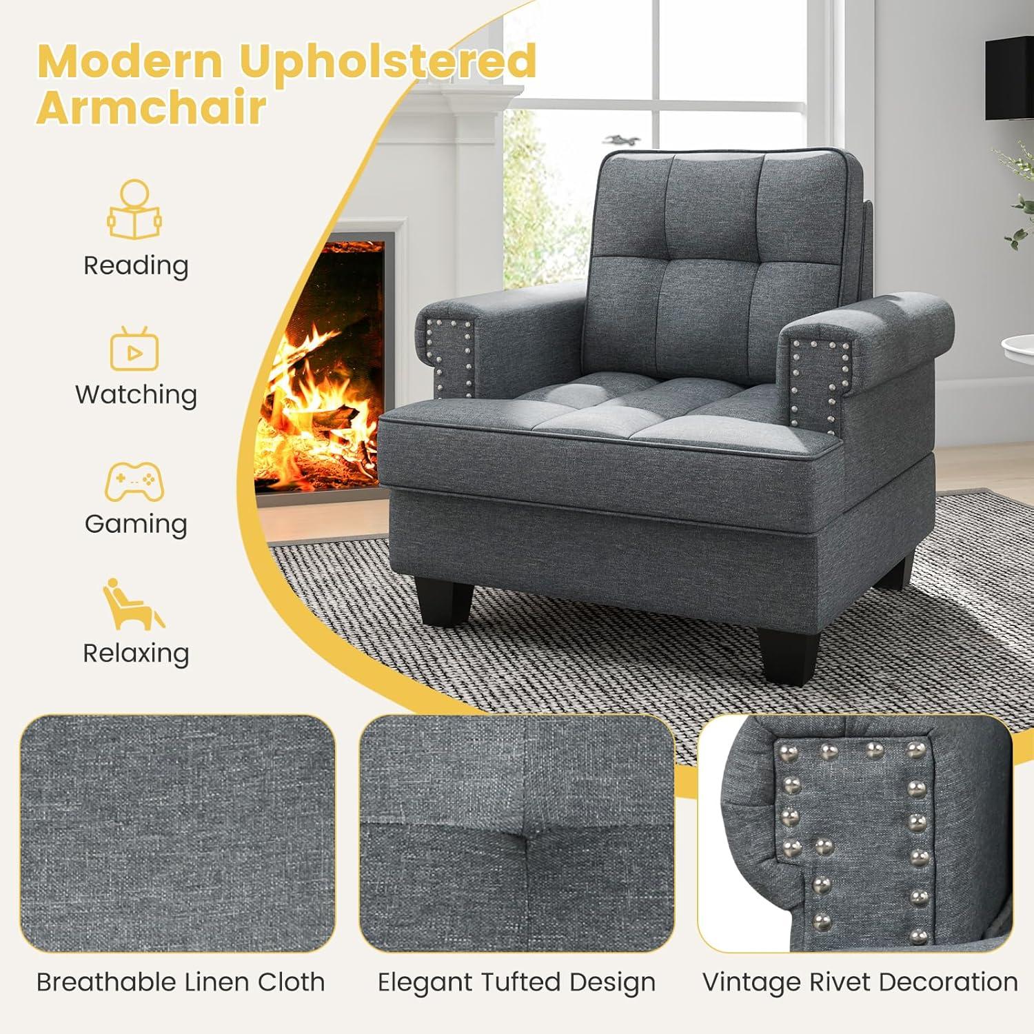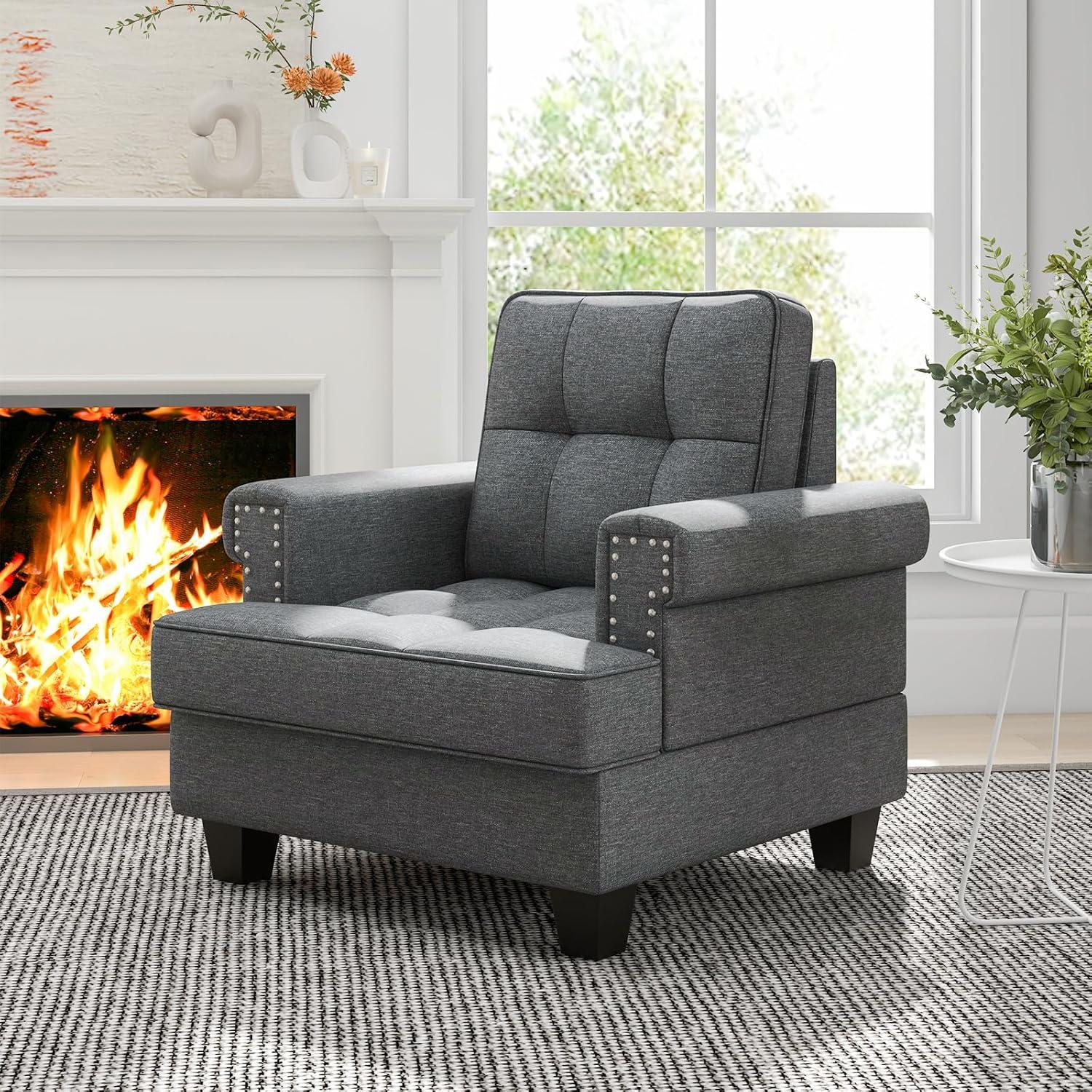 This single sofa chair has a thick pillow and cushion, offering more support for your body. Attached to the chair with hook and loop fasteners, the pillow and cushion can be removed easily. Moreover, this comfy reading chair features a widened design for enhanced comfort. The high-density sponge and elastic pocket springs in the cushion ensure unparalleled relaxation. The tufted and studded design make it a perfect addition to any room, such as the living room or bedroom, where you can read, relax or play games. Lastly, installation is a breeze thanks to the detailed user’s manual.