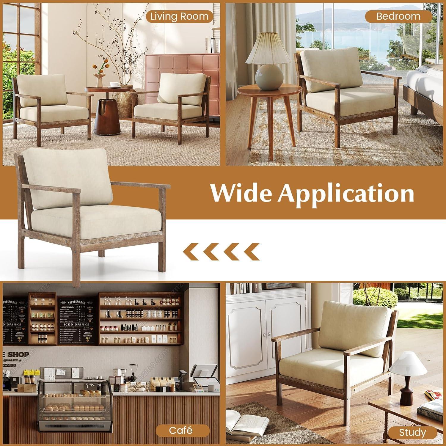 imageGiantex Mid Century Modern Accent Chair Wooden Arm Chair wSolid Wood Frame Removable Seat Cushion ampamp Pillow Vintage Comfy Reading Chair for Living Room Bedroom StudyBeige