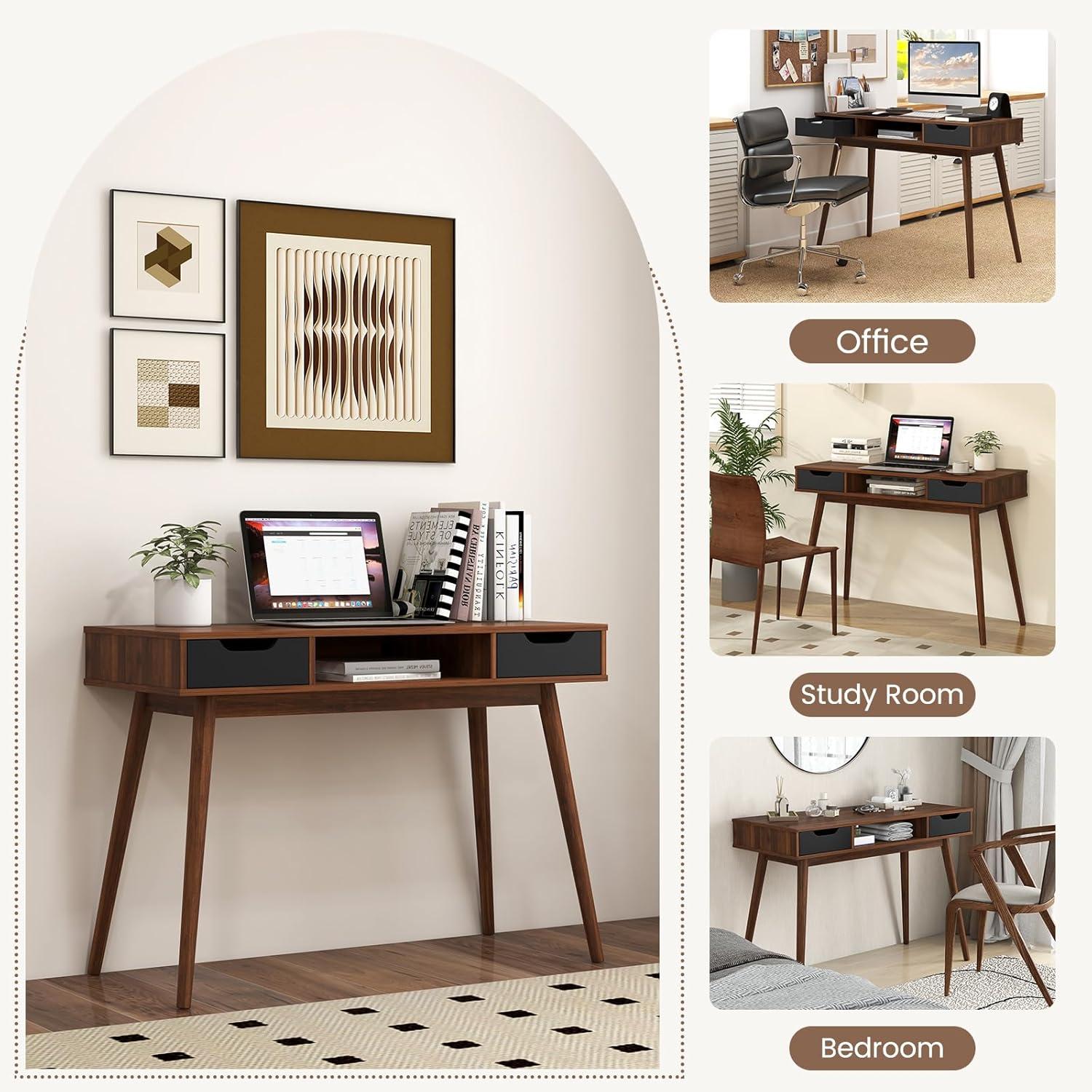 Our Computer Desk with Drawer is a blend of functionality and style that will enhance any contemporary workspace. This work desk is thoughtfully designed with ample storage solutions and a generous working area to cater to all your office or home needs. Featuring a spacious desktop, this desk includes two pull-out drawers and an open storage shelf, making it effortlessly convenient for organizing essentials. Crafted from thick, robust wood with solid wood legs, this writing desk provides a stable foundation. The minimalist design offers a sleek and versatile appearance, making it suitable for various settings and adding a touch of modern sophistication.