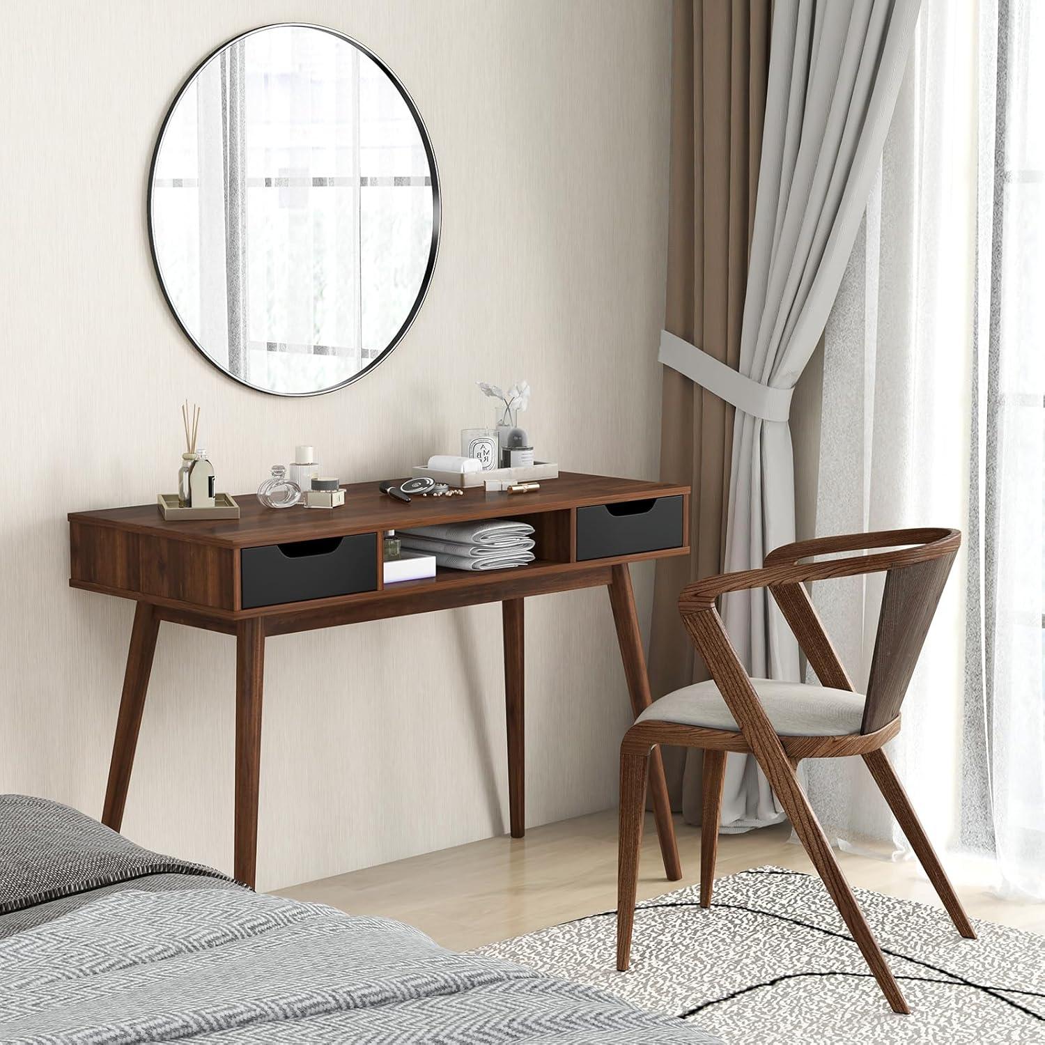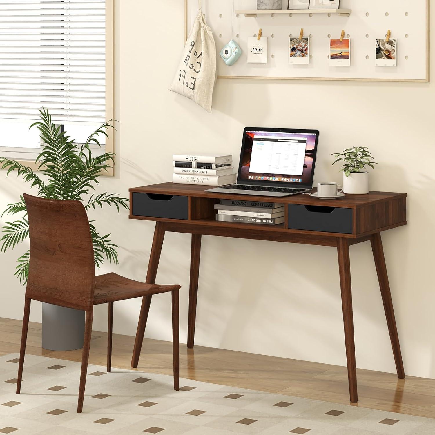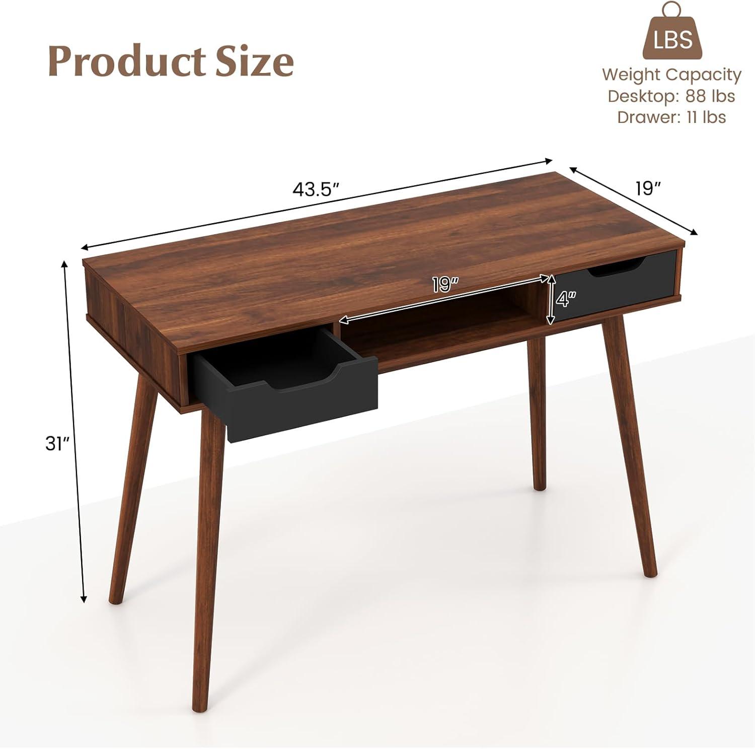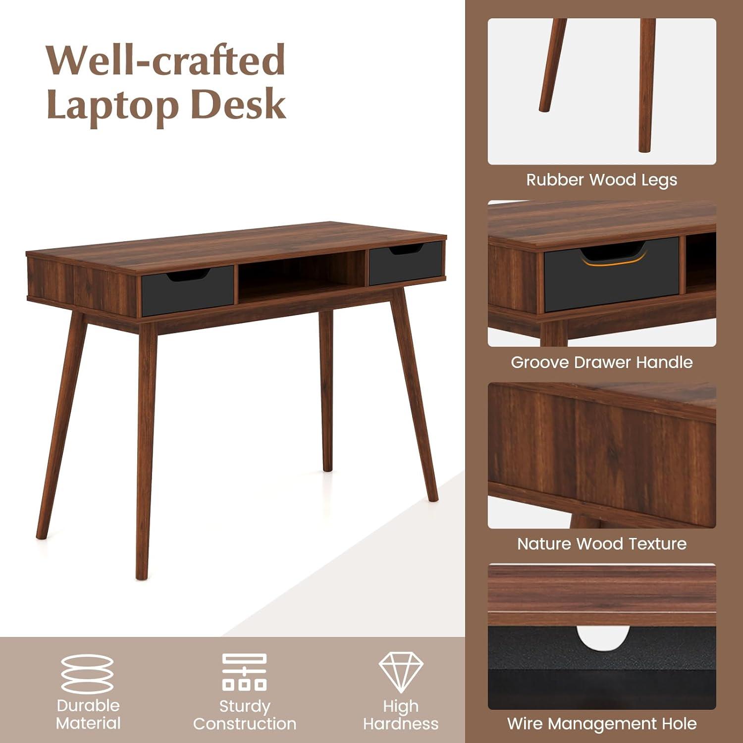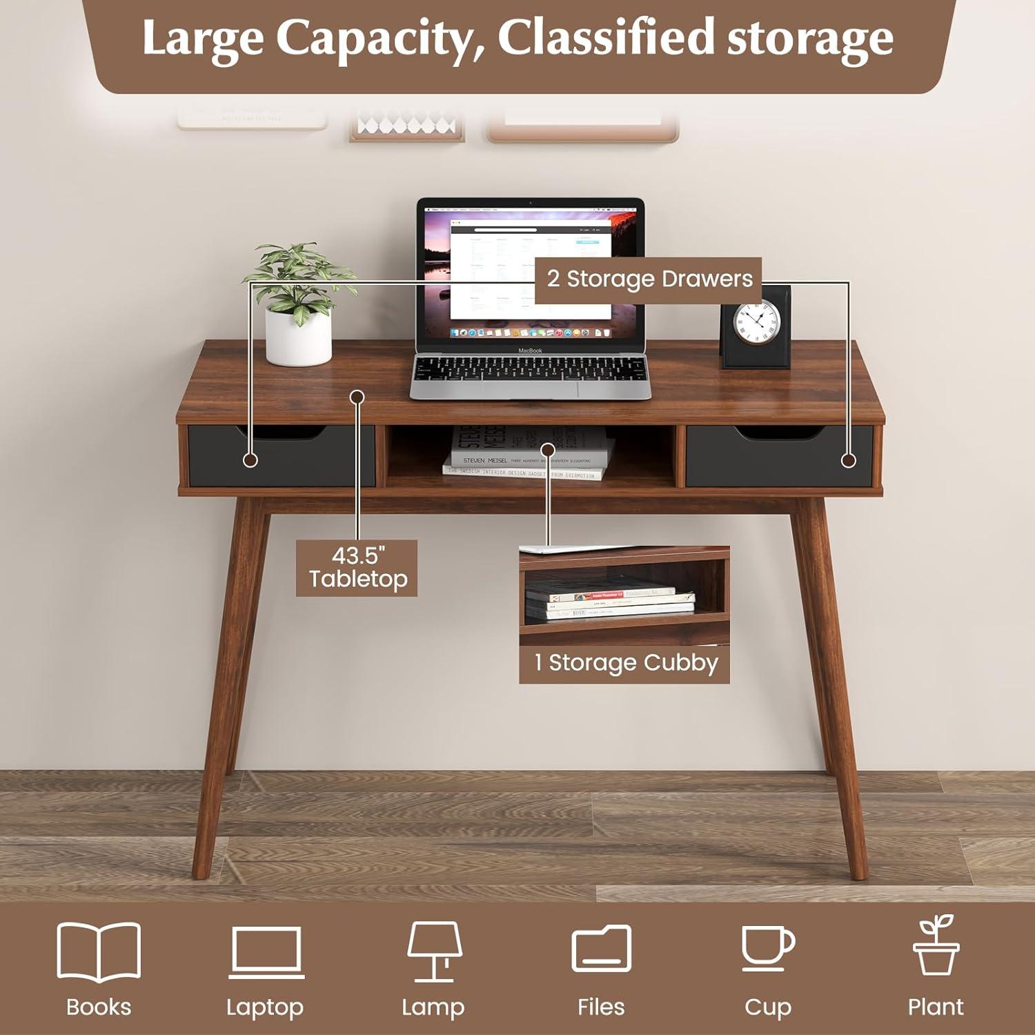 2 drawers, spacious tabletop, and storage shelf provide convenient storage