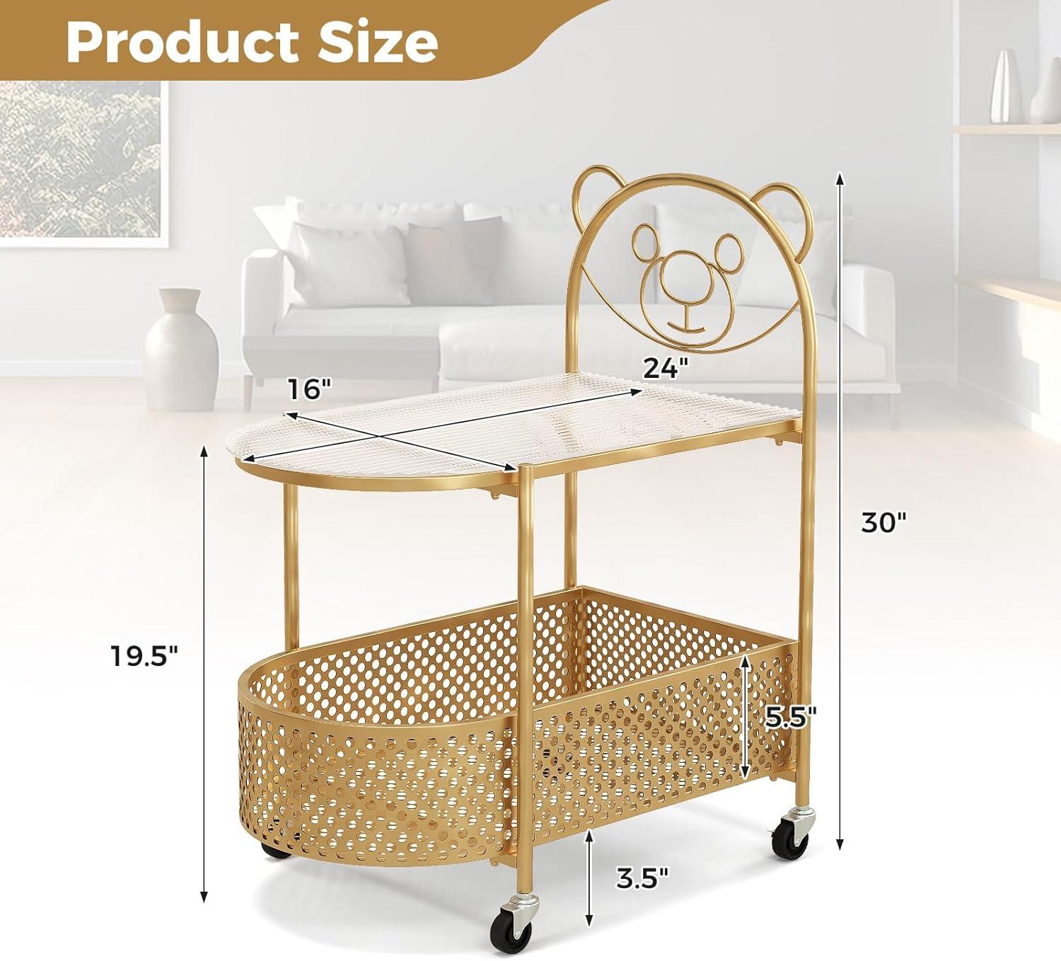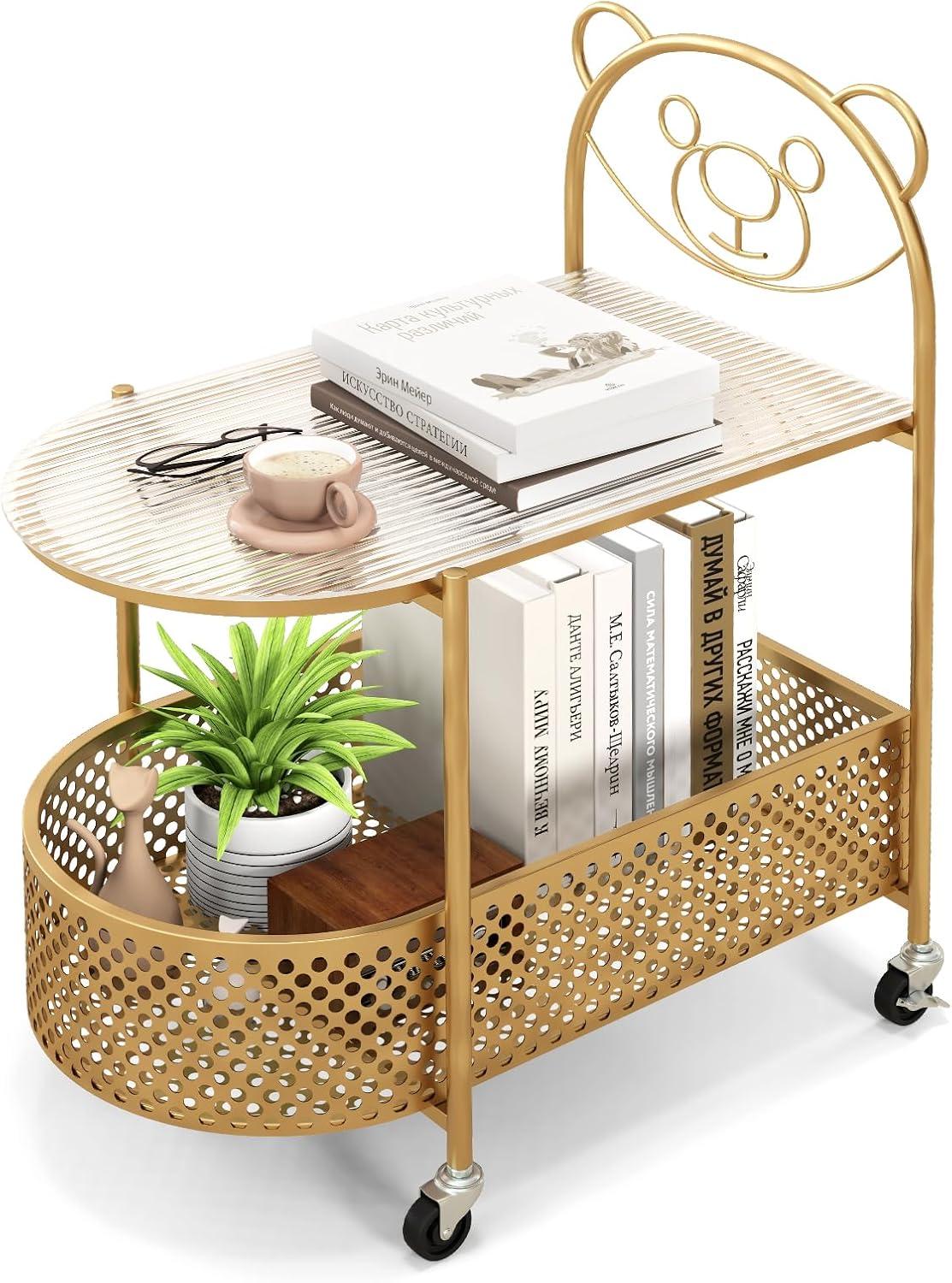 The adorable bear pattern adds a fun touch to any room decoration. The tempered glass top ensures long-lasting use and high strength, perfect for placing drinks, books, or decorations, while the bottom storage basket keeps your essentials organized and within reach. Anchoring the glass top is sturdy metal frame, making it a reliable and long-lasting addition to your room. Moreover, you can move the coffee table effortlessly from one room to another or lock it in place to maintain stability. This functional coffee table provides style and practicality wherever you place it.