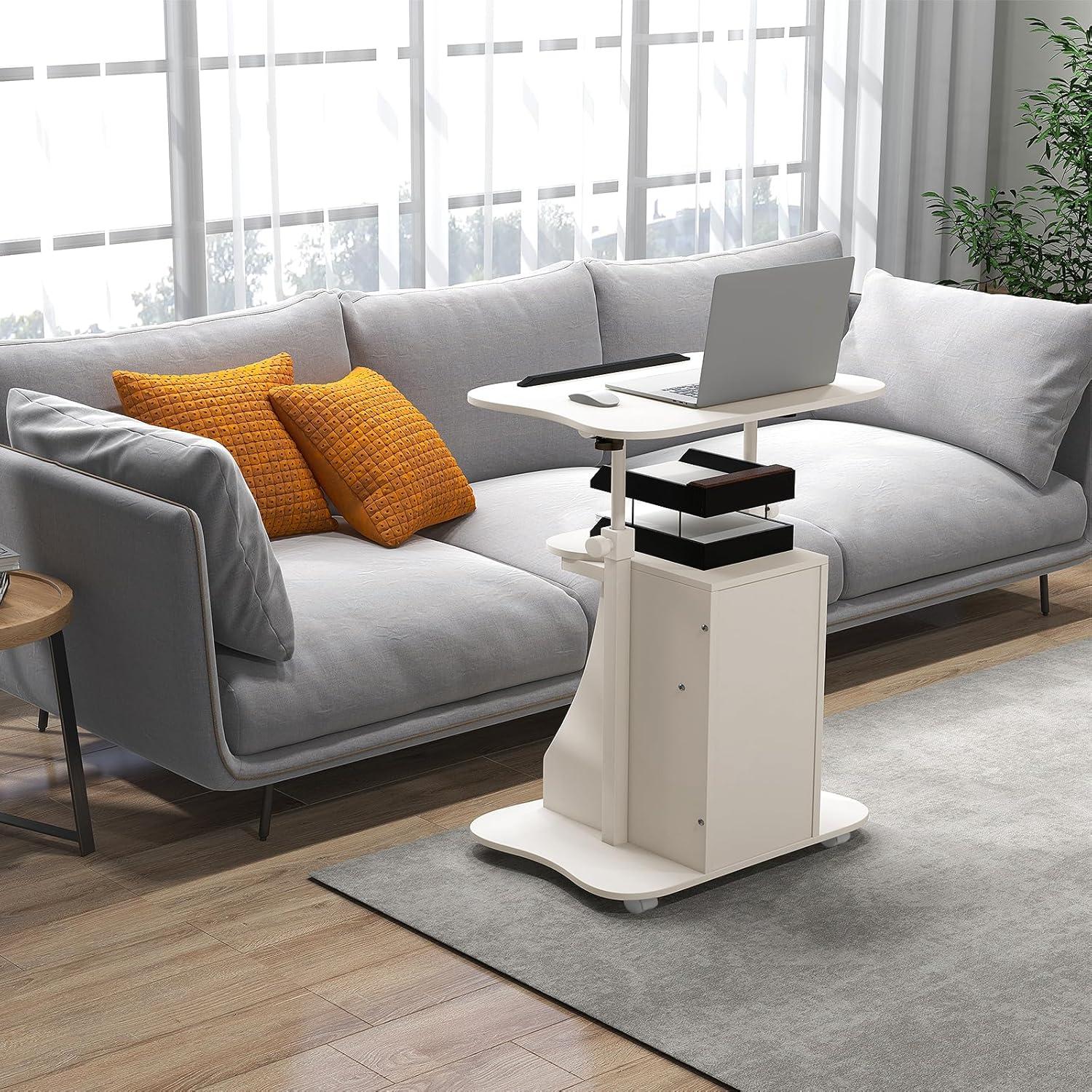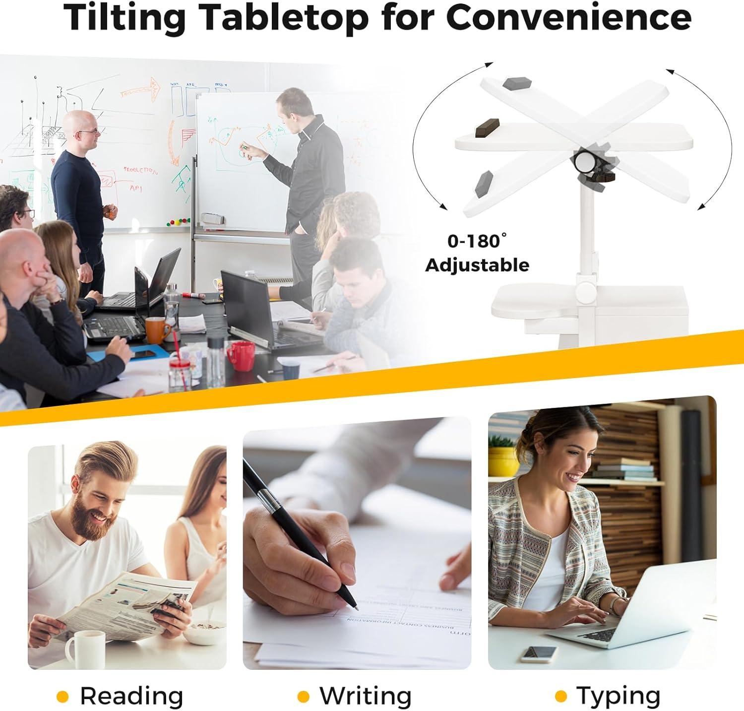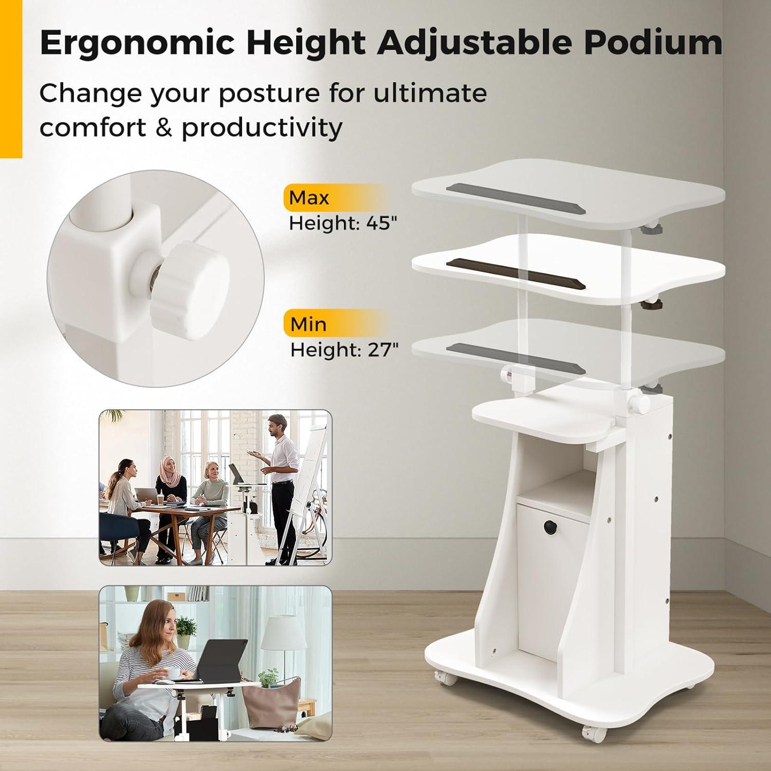 Giantex Mobile Podium Stand, Sit-to-Stand Laptop Cart with Tilting Tabletop & Storage Cabinet, Lockable Casters, Height-Adjustable Rolling Lectern for Classroom, Church, Home Office (Black, 2 Pack)(White)