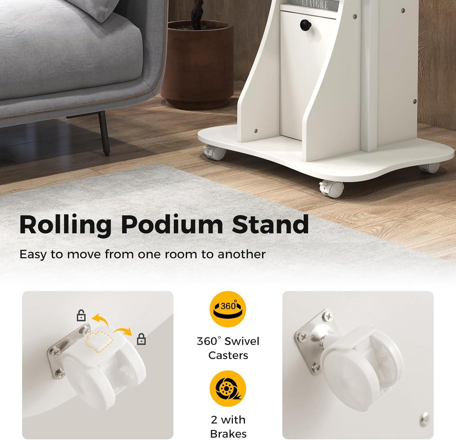 [Ease of Movement]: The rolling podium stand can be easily moved from one room to another thanks to the 360° swivel casters. Plus, 2 of the casters are equipped with brakes, which ensures extra stability during use.