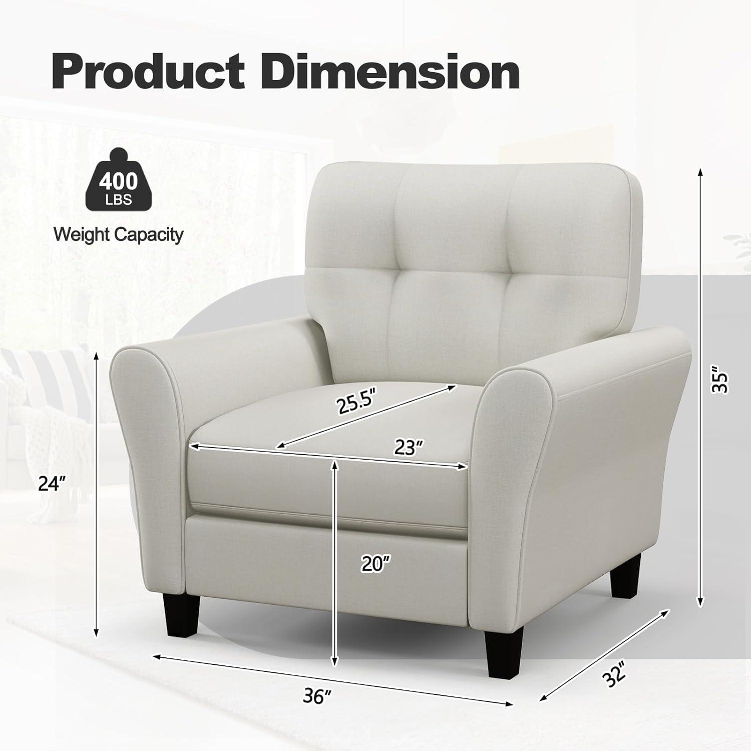Giantex Modern Mid-Century Accent Chair - Linen Living Room Chair with Tufted Back, 7" Thick Cushion, Max Load 400 lbs, Upholstered Armchair with Non-Slip Foot Pads, Club Chair for Bedroom, Beige(Beige)
