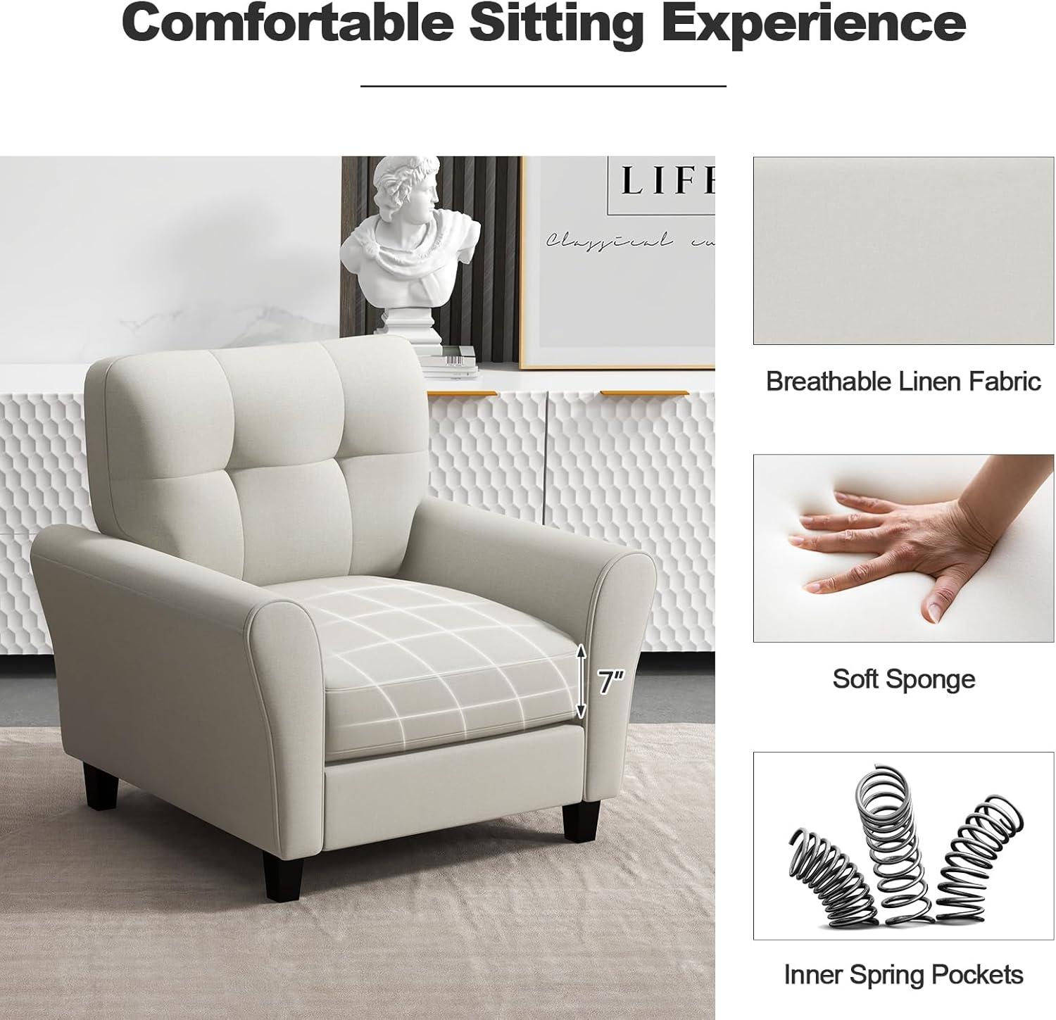 [Comfortable Sitting Experience]: This upholstered single sofa chair is covered with breathable linen fabric and filled with soft sponge. Thus, you can feel cozy and relaxed when sitting on it. Moreover, the inner spring pockets enhance softness.