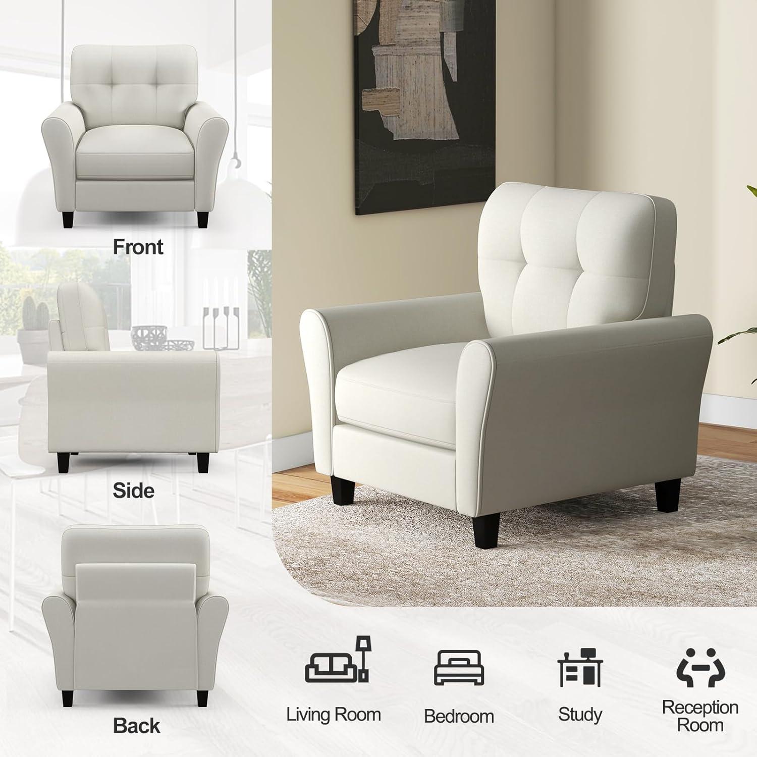 Giantex Modern Accent Chair, Upholstered Armchair w/Rubber Wood Armrests, Ergonomic Backrest, Button Tufted Decoration, Tufted Reading Chair for Living Room, Bedroom, Study, Beige