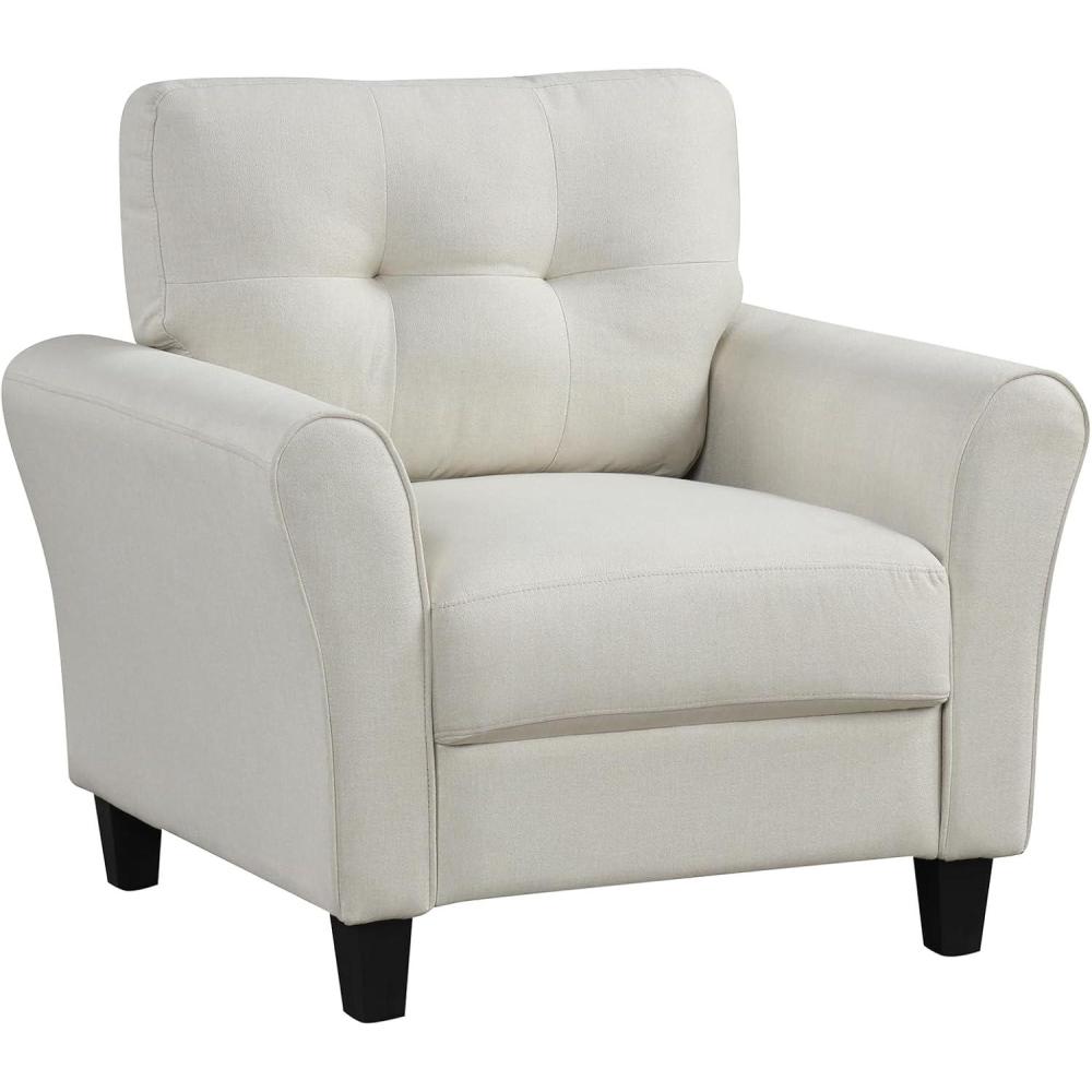 imageGiantex Modern MidCentury Accent Chair  Linen Living Room Chair with Tufted Back 7quot Thick Cushion Max Load 400 lbs Upholstered Armchair with NonSlip Foot Pads Club Chair for Bedroom BeigeBeige