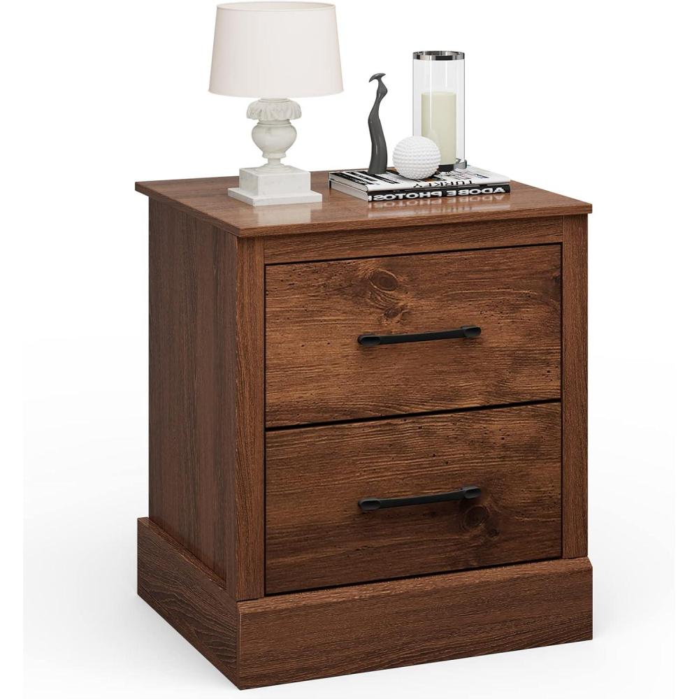 imageGiantex Modern Nightstand Wood Bedside Table with 2 Storage Drawers Compact Floor Night Stand End Table White Accent Sofa Side Table for BedroomWalnut