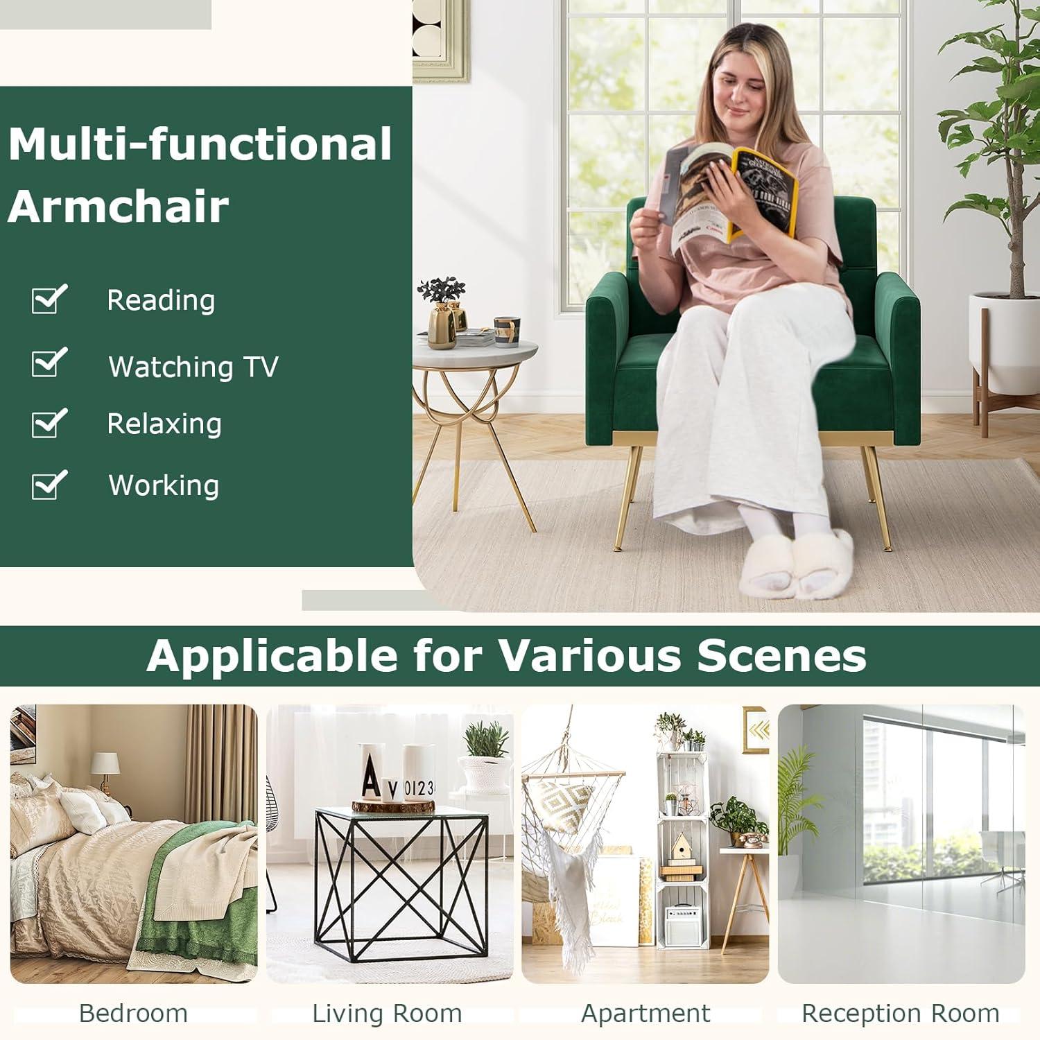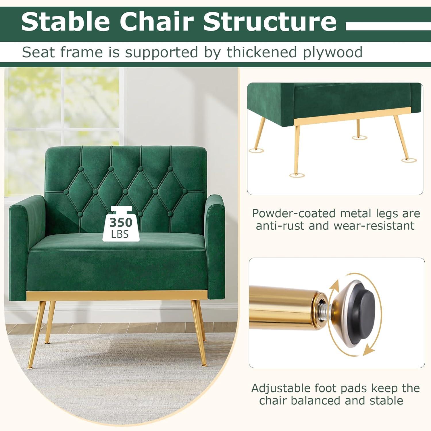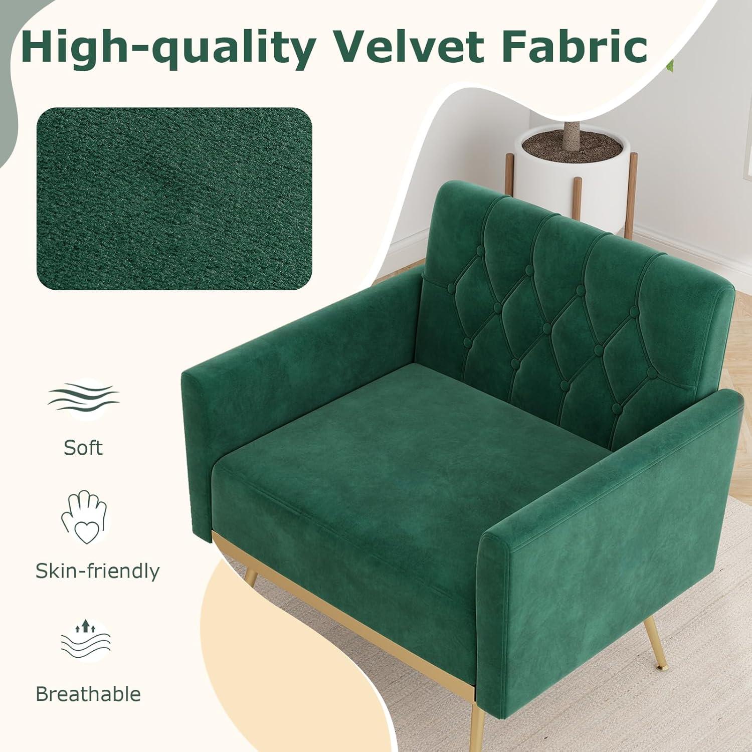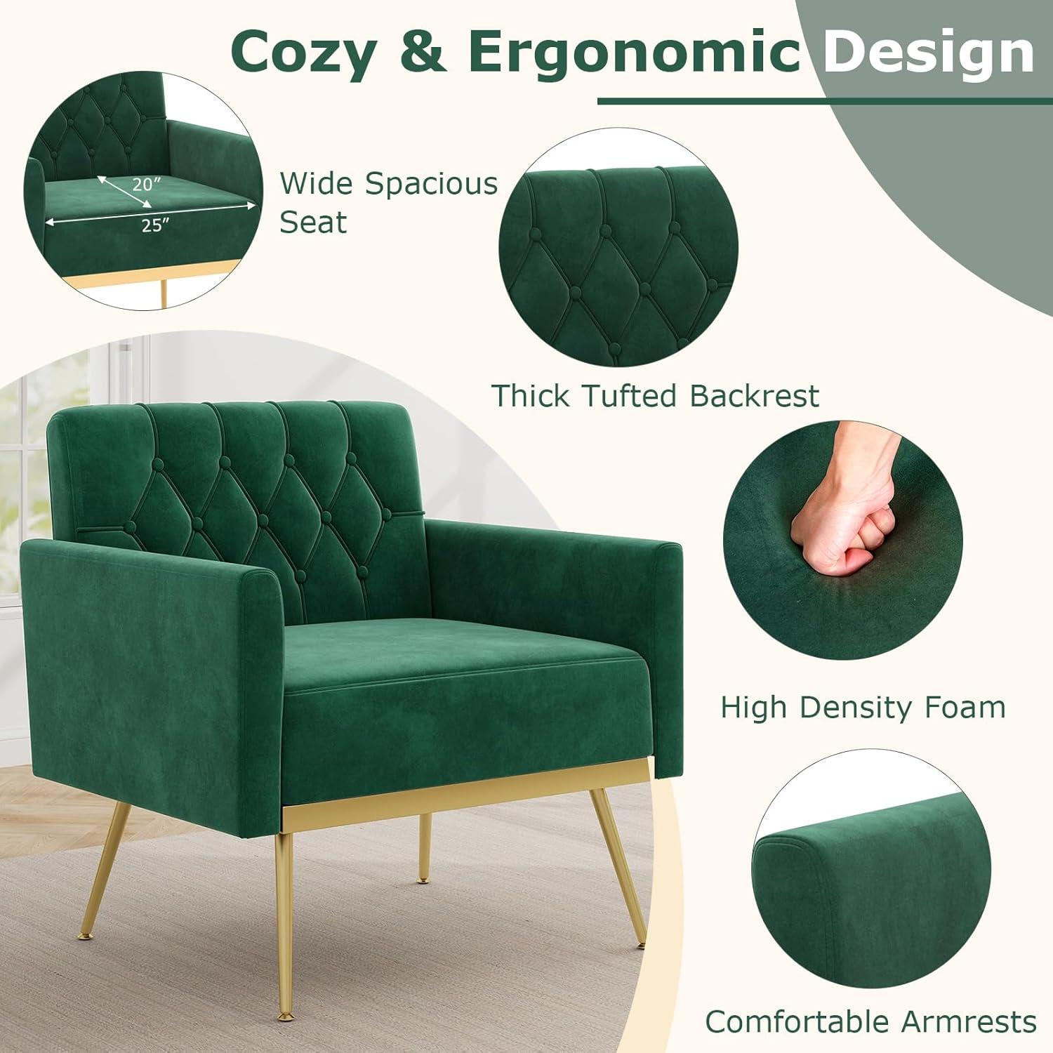 Giantex Modern Velvet Accent Chair - Mid-Century Upholstered Single Sofa Chair w/Button Tufted Back, Golden Metal Legs, Adjustable Foot Pads, Comfy Living Room Armchair for Bedroom, Dark Green(Emerald Green)