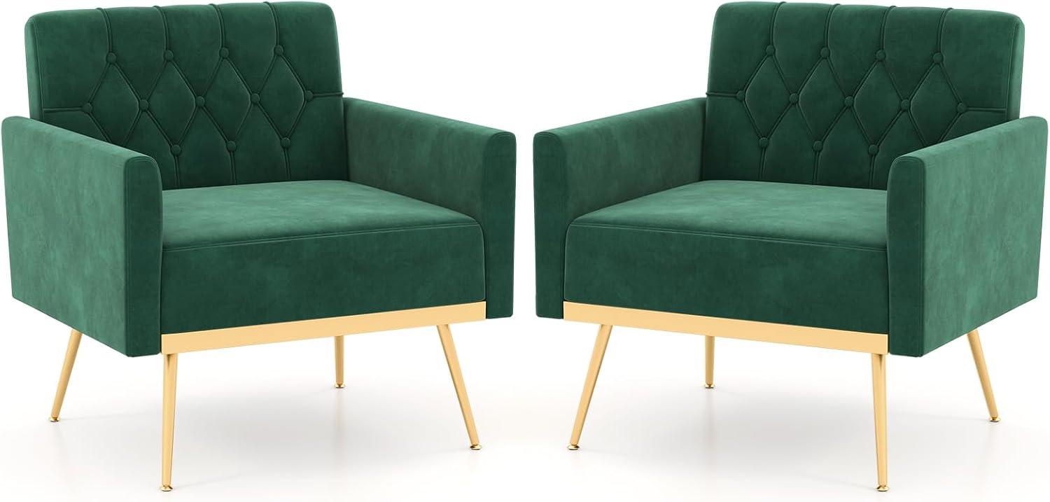 Giantex Modern Velvet Accent Chair – Mid-Century Upholstered Single Sofa Chair w/Button Tufted Back, Golden Metal Legs, Adjustable Foot Pads, Comfy Living Room Armchair for Bedroom, Dark Green(Dark Green)