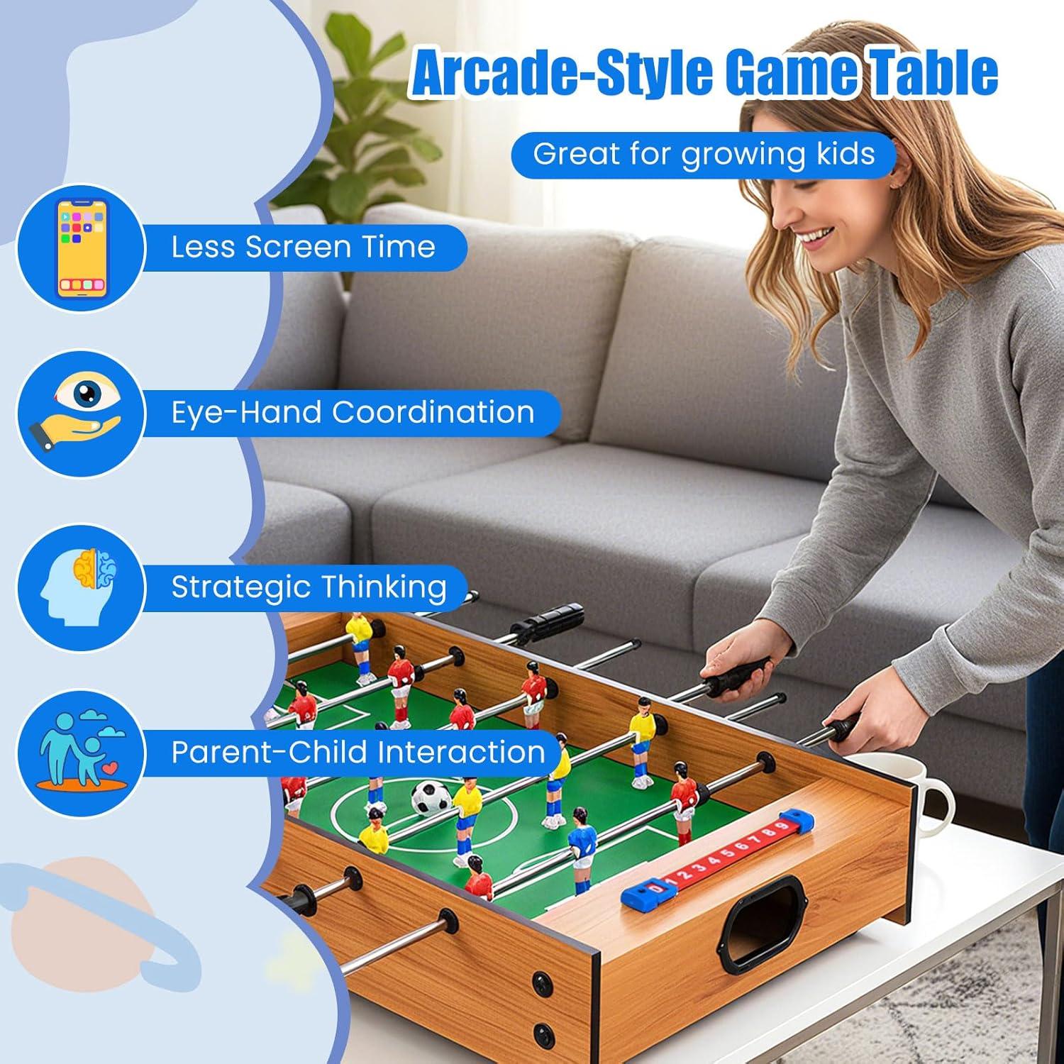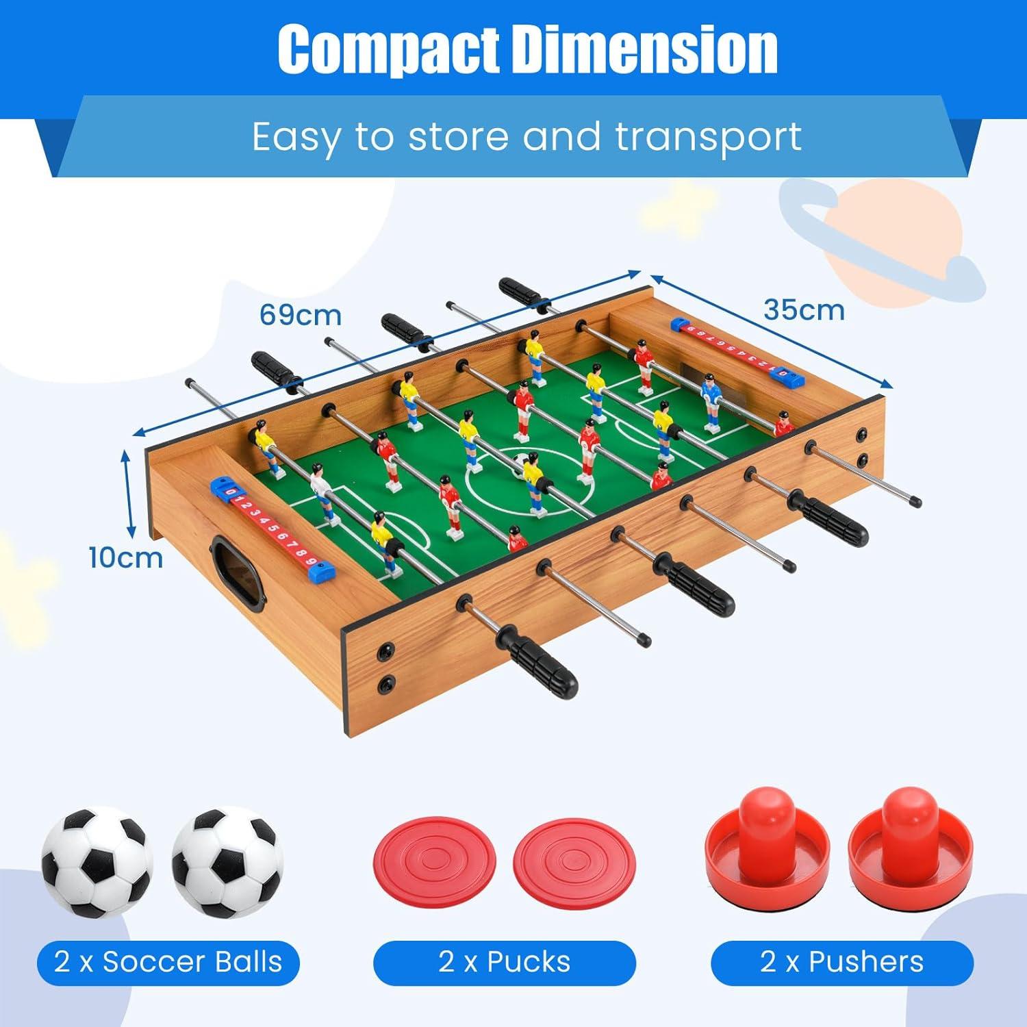 【2-in-1 Air Hockey Foosball Table】: Easily swivel table is perfect switching back and forth between sports. Easily play push hockey or foosball for hours on end.