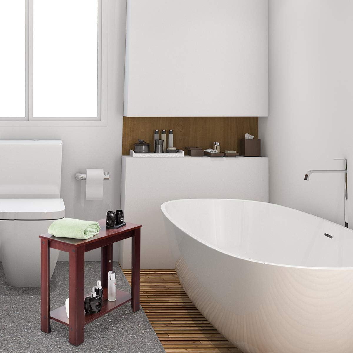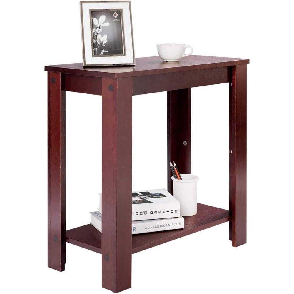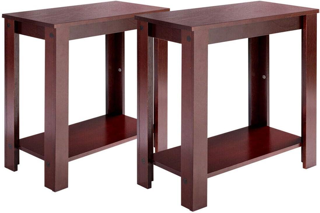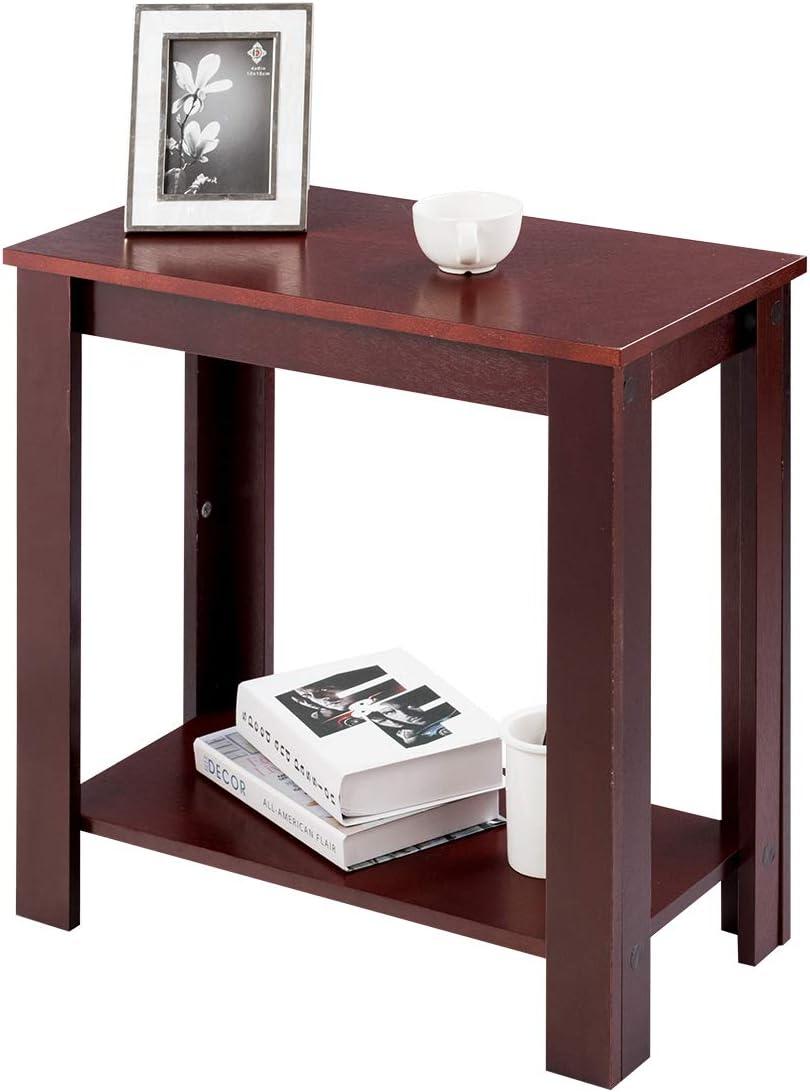 Giantex Narrow End Table, 2-Tier Side Table with Open Storage Shelf, Retro Wood Sofa Table Bedside Tables for Small Spaces, Slim Nightstand for Living Room, Bedroom, Easy Assembly, White(Mahogany)