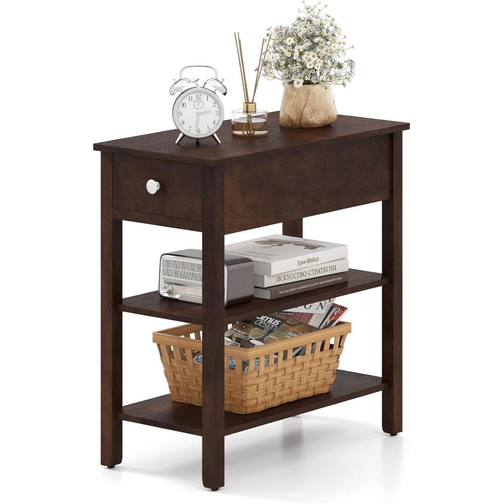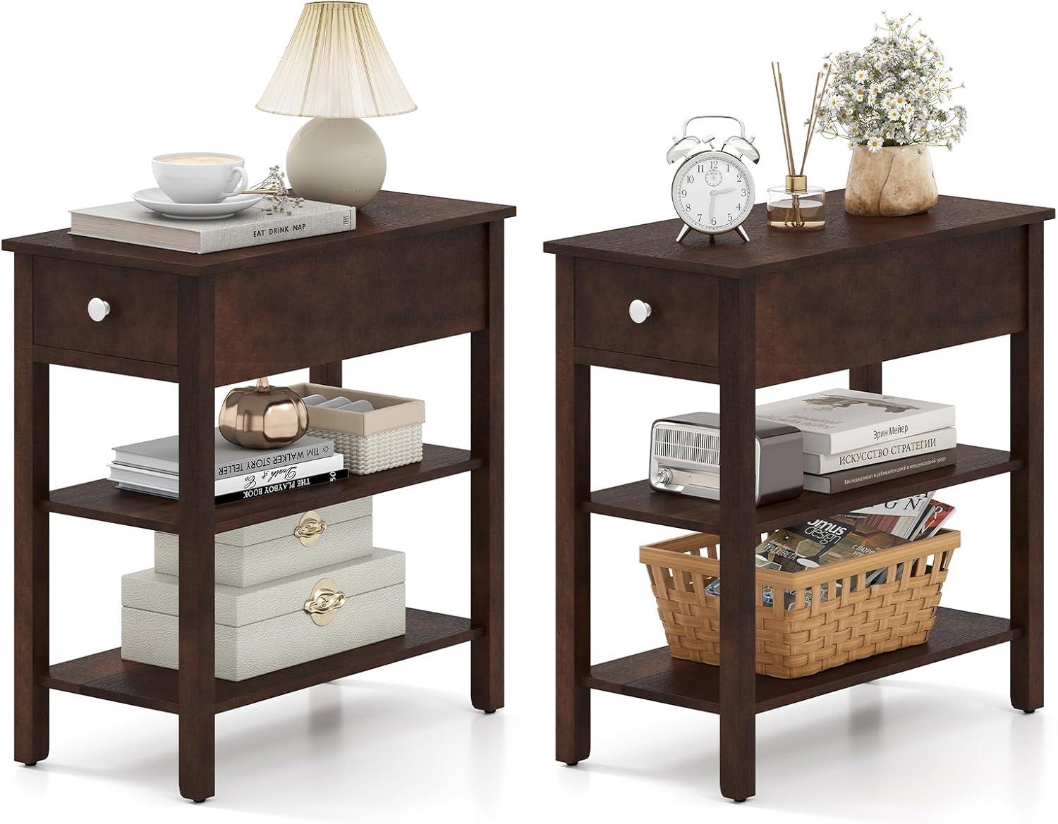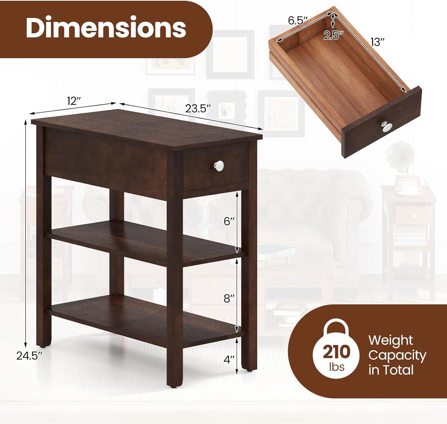Giantex Narrow End Table, Small Side Table with Drawer and Shelf, Wood Accent Sofa Table, Skinny Nightstand for Small Space Living Room Bedroom (1, Black)(Espresso)