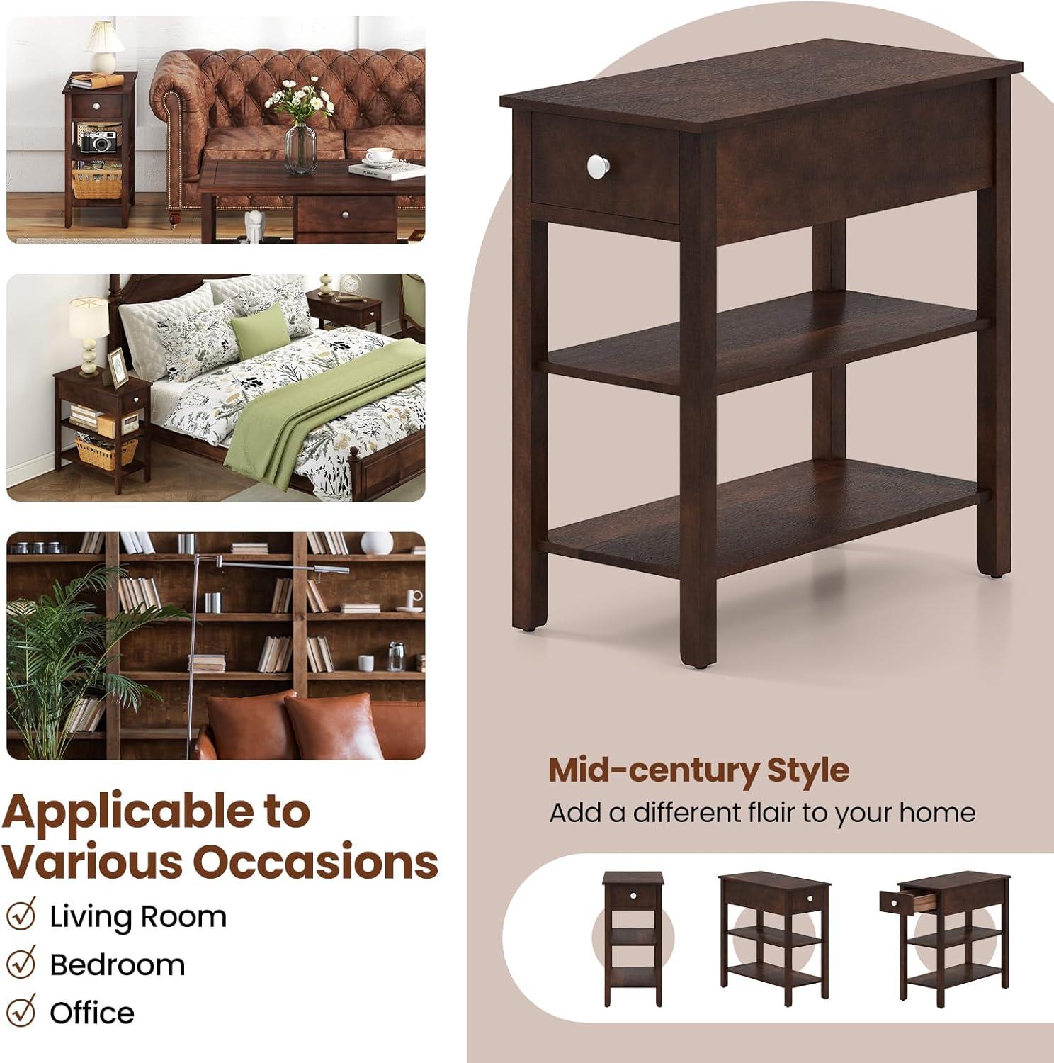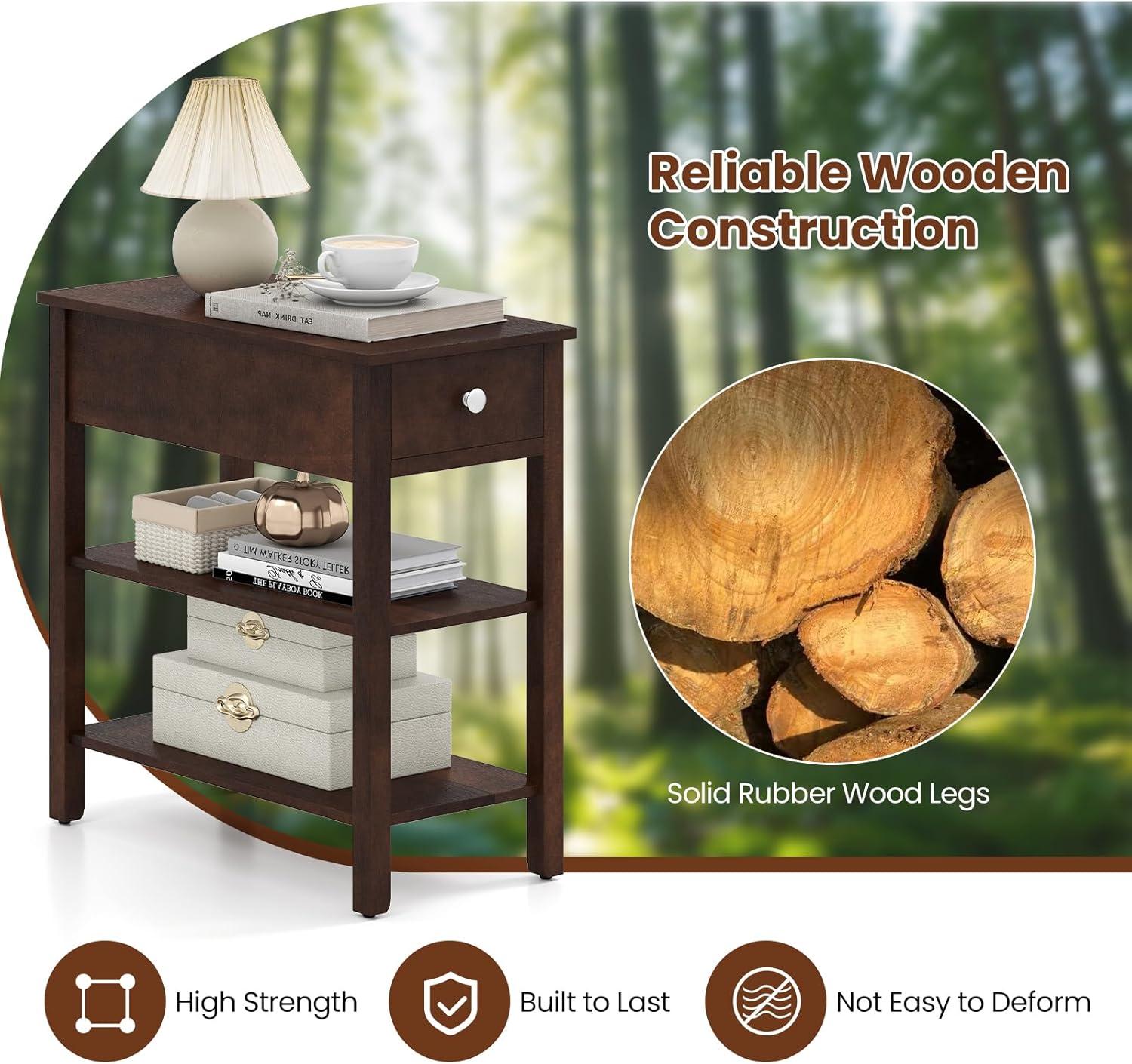 Giantex Narrow End Table, Small Side Table with Drawer and Shelf, Wood Accent Sofa Table, Skinny Nightstand for Small Space Living Room Bedroom (1, Black)(Walnut)