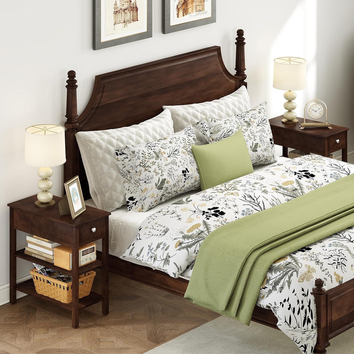 [Plenty of Storage Space for You] The special slim nightstand with 2-layer shelf with 1 drawer can adds functionality to your furniture while fully utilizing the space your living. The single drawer that gives you a storage for remote controls, keys or other small things. Plus the top of the table, there are three open spaces for coffee mugs, a picture frame and so on.