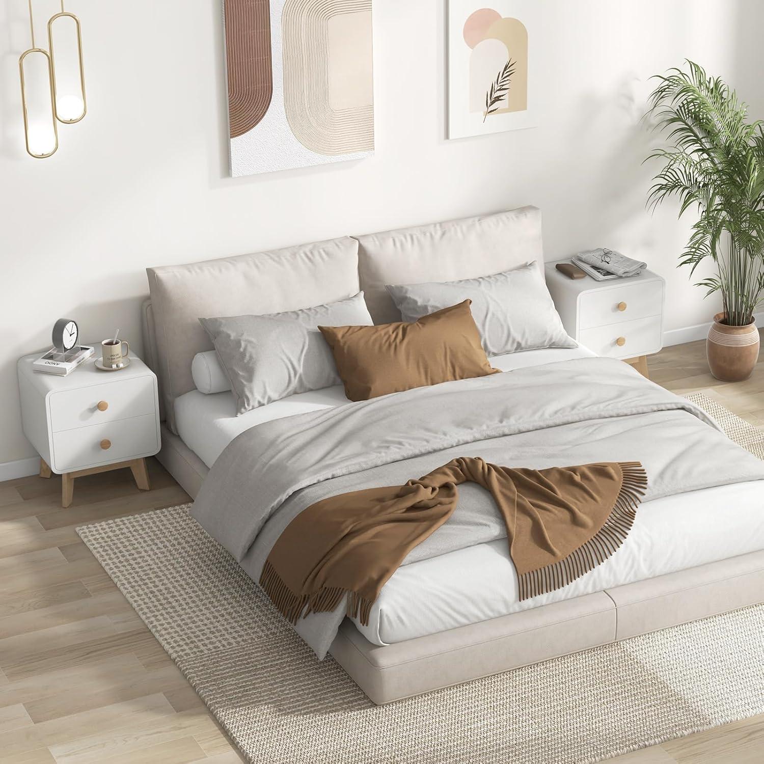 [Storage Convenience]: The nightstand features 2 drawers to provide plenty of storage for bedtime essentials. Besides, wide tabletop enlarges storage and display space, keeping your belongings organized and within reach.
