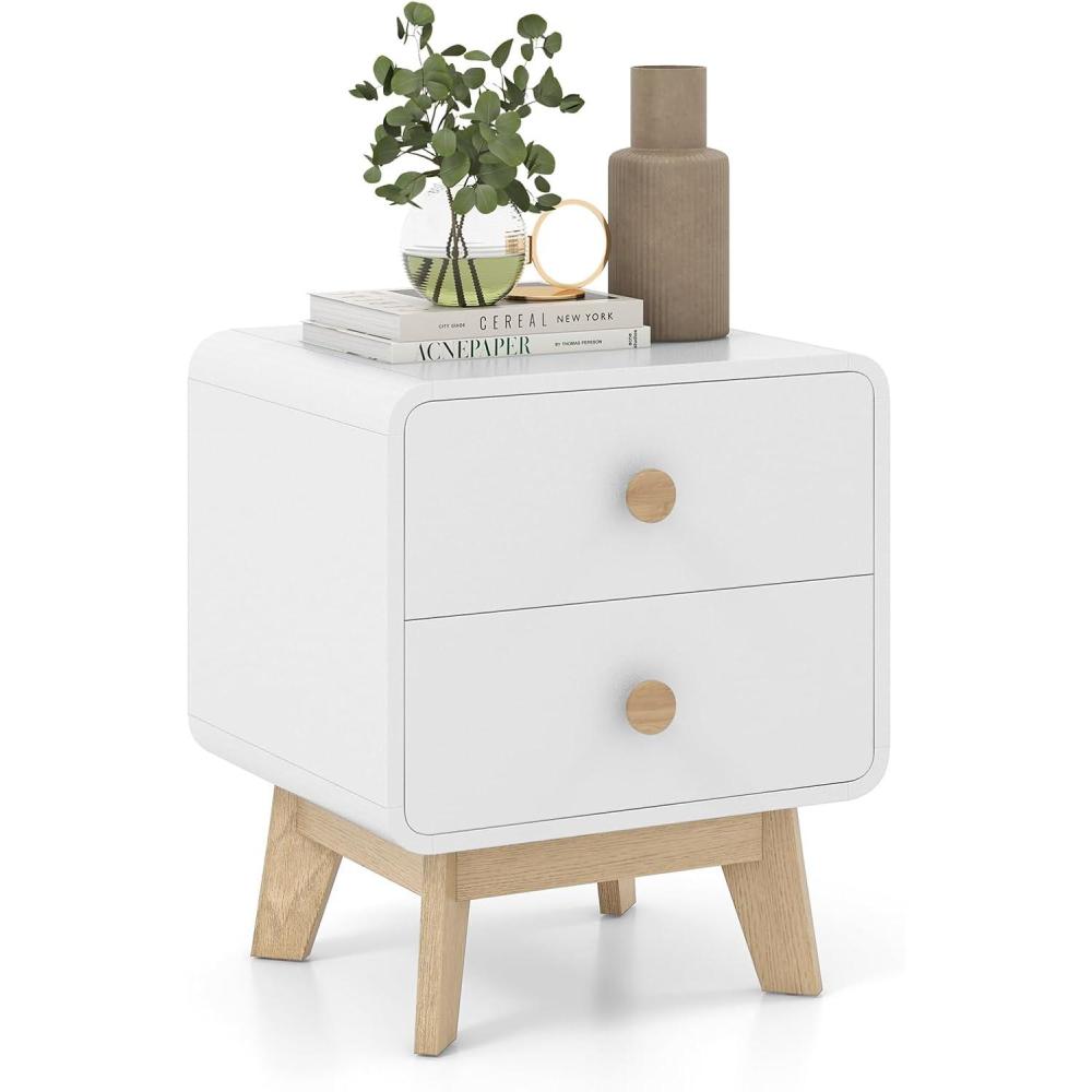 imageGiantex Night Stand with 2 Drawers Mid Century Modern Bedside Table with Cute Round Knobs Wooden Side End Table with Solid Rubber Wood Legs Small Nightstand for Kids Bedroom Dorms WhiteWhite