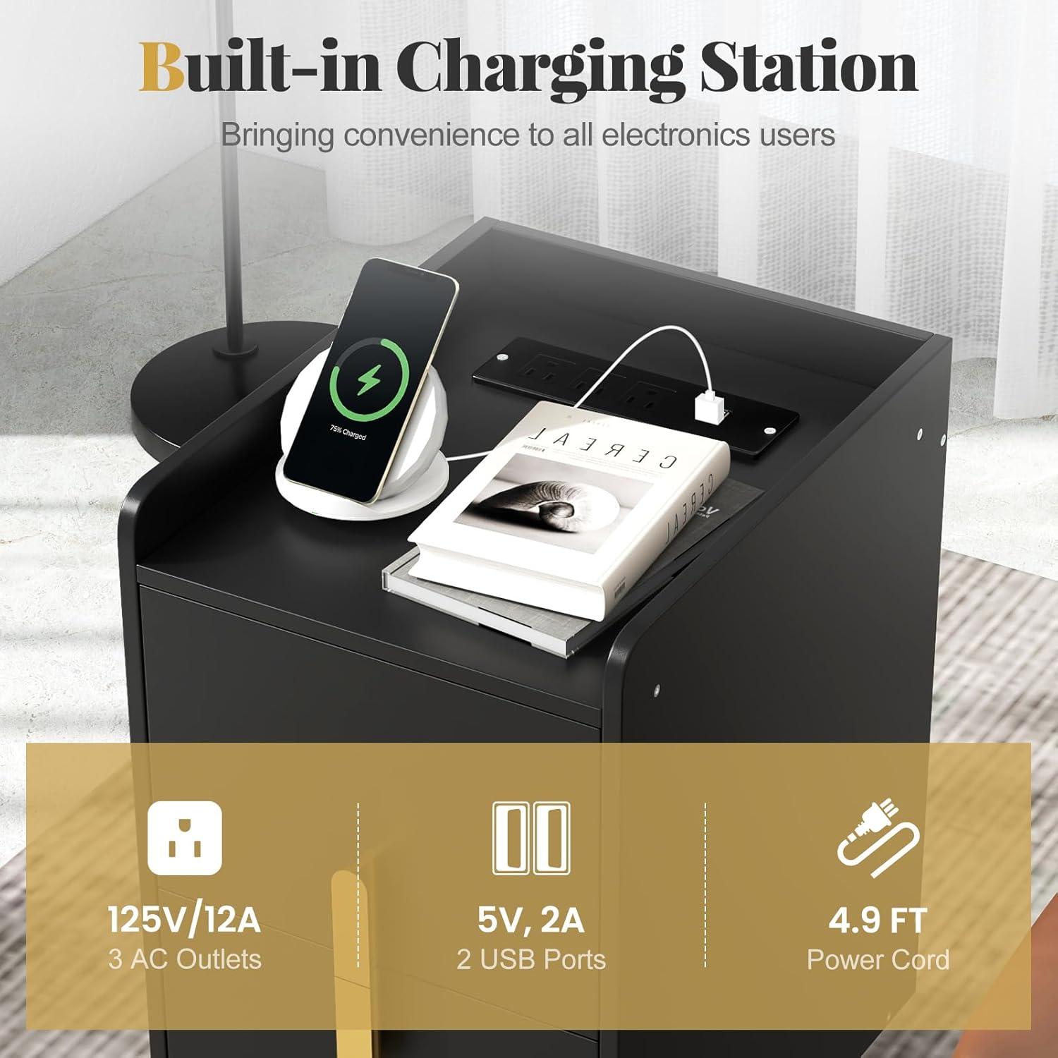 Upgrade your bedside experience with our highly convenient bedside charging station. This versatile and stylish side table combines the functionality of a charging station with the practicality of storage drawers. Charge multiple devices simultaneously with three AC outlets and two USB ports, bringing convenience to all electronics users. Extra storage space can make your room neat and clean. Crafted with quality materials and featuring stabilized metal support feet, this charging station is built to last. Its versatile design allows it to be used in any room of your house, while the quick assembly and easy maintenance make it a hassle-free addition to your home. Experience the convenience and elegance of our bedside charging station today.